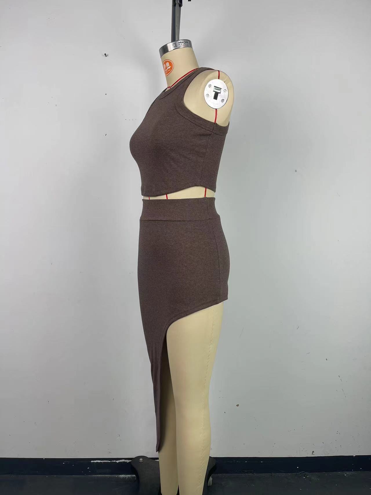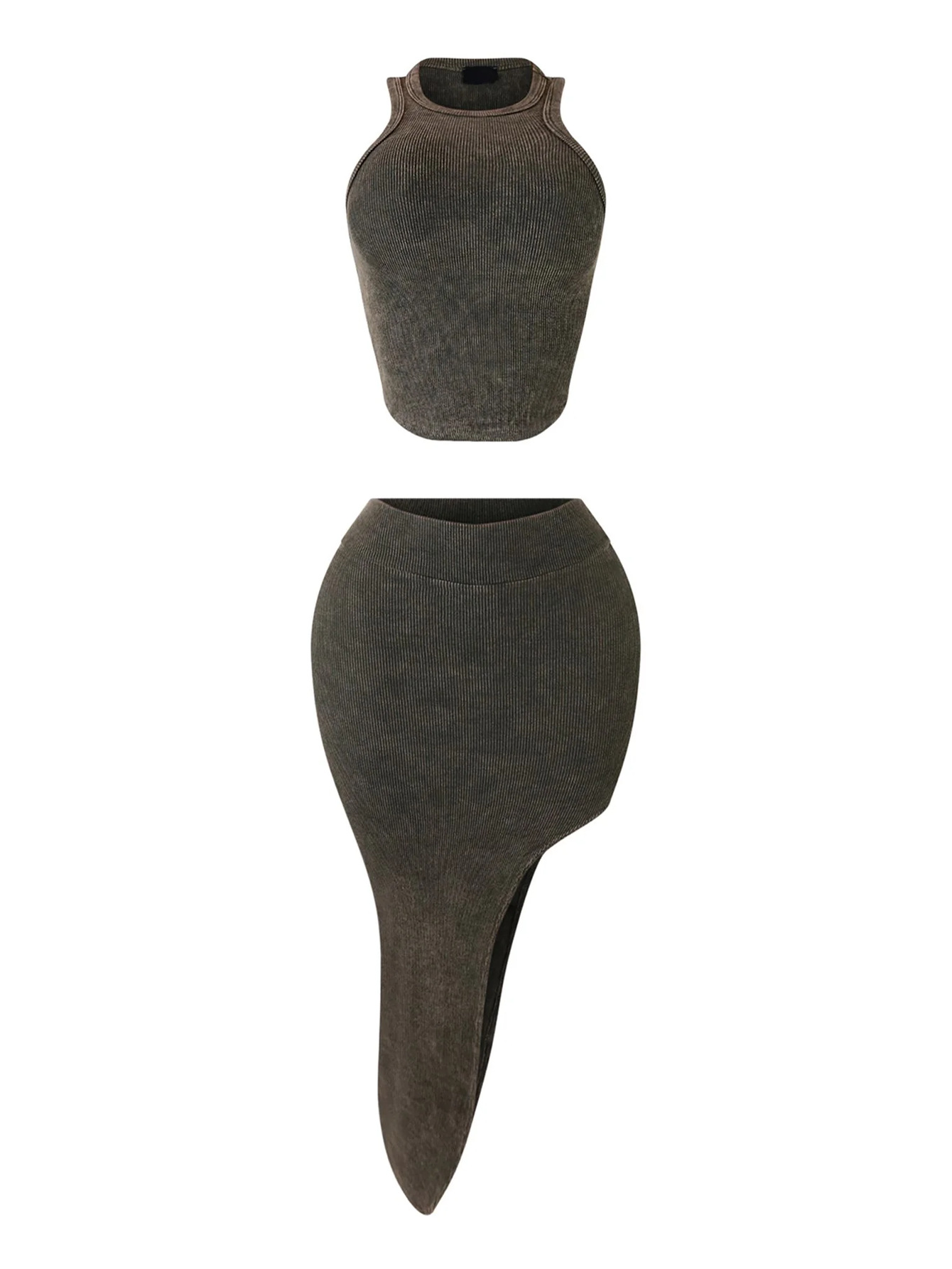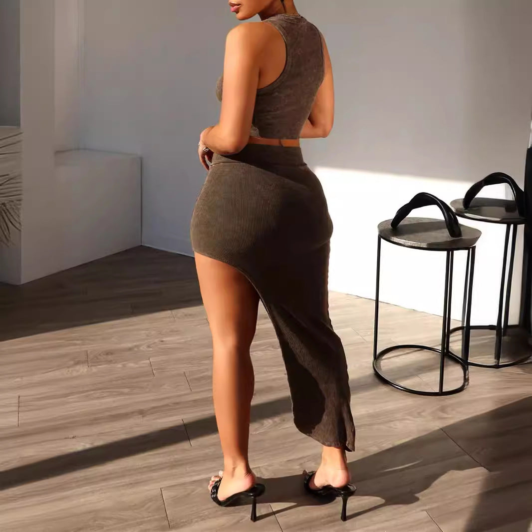 Women Clothing Summer Vest Sheath Suit Thread Fitted Irregular Asymmetric Maxi Dress Two Piece Set