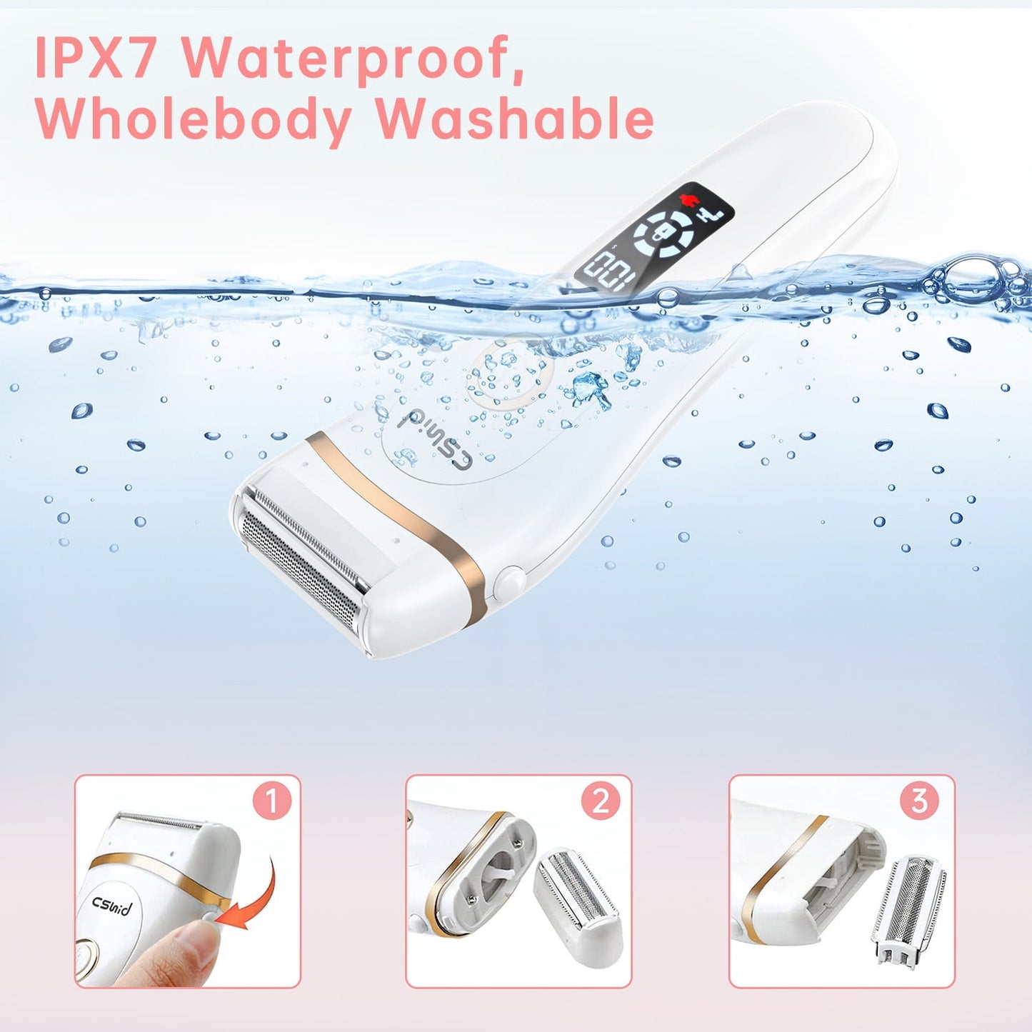 Cshidworld Women's Electric Body Shaver - Safe, Painless, Hypoallergenic, Low Noise, Rechargeable Wet & Dry, Lightweight & portable, this lady shaver will be your good partner at home or traveling! Show Up Your Smooth Skin Anytime Anywhere!3-in-1 High Speed Shaving Head