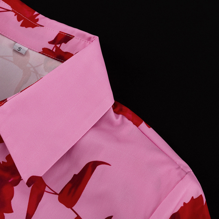 Women Graceful Fashionable Printed Collared Long Sleeve Shirt High Waist Slit Hip Skirt Set Two Piece