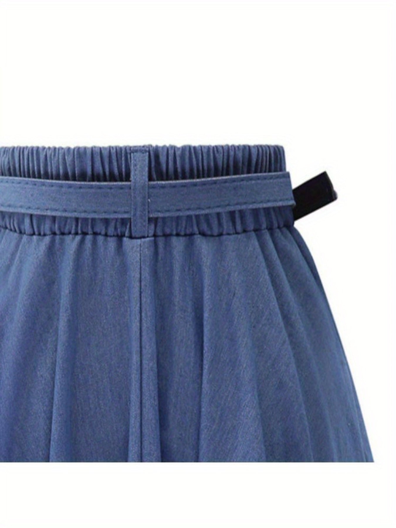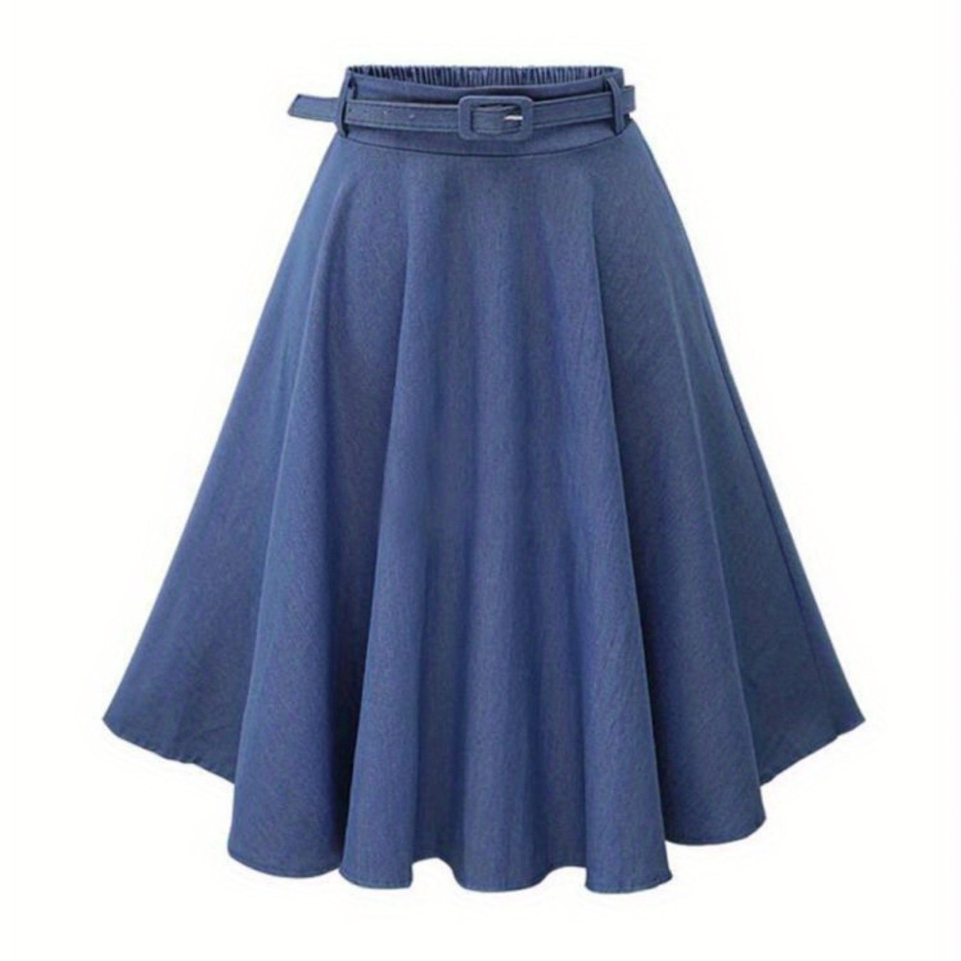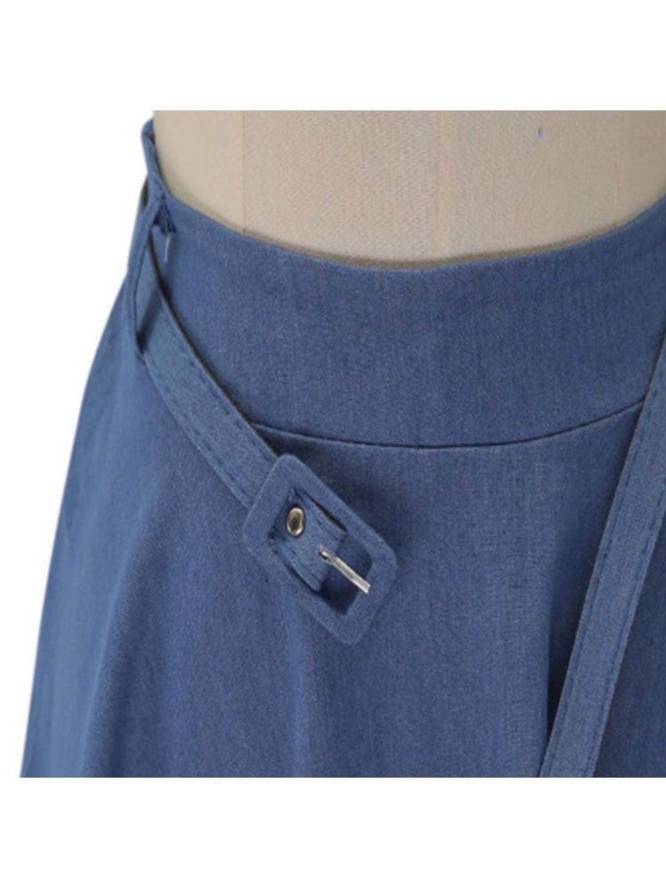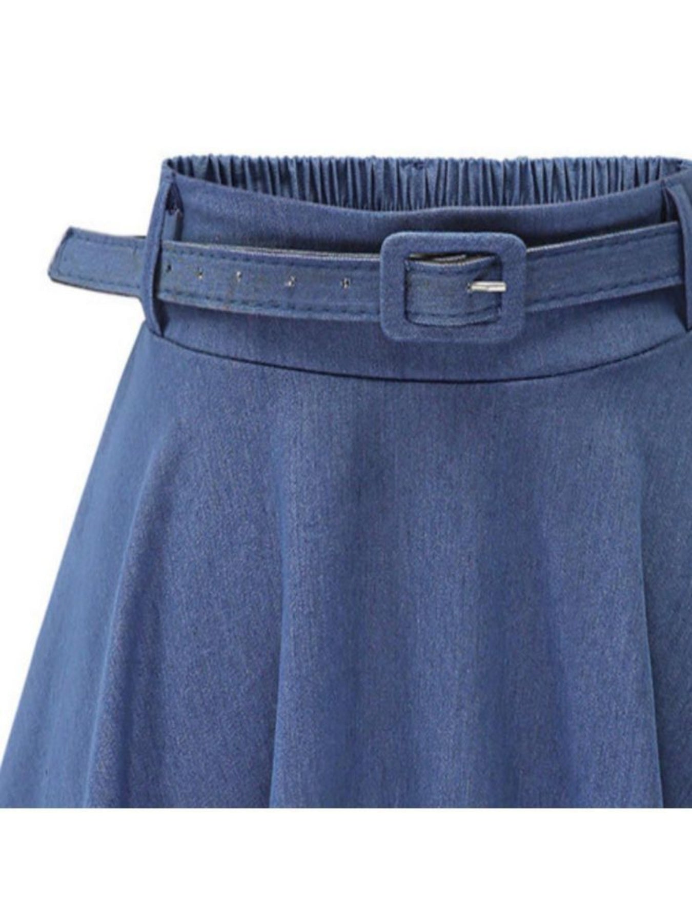 Women High Waist Long Section Denim With Belt Dress Casual Elegant Versatile Loose Half-length Cowboy Skirt