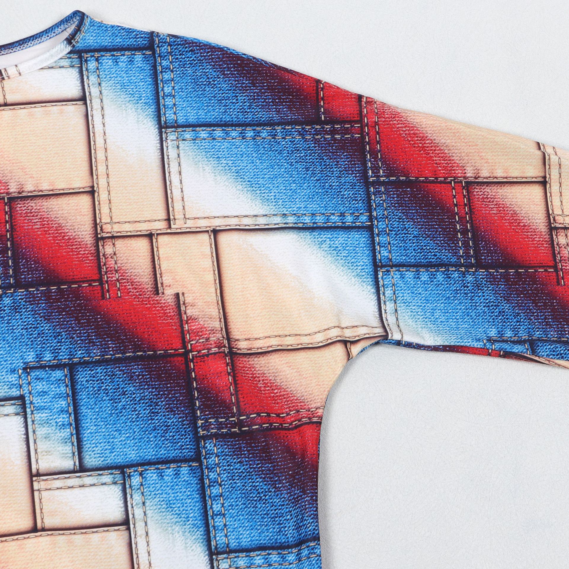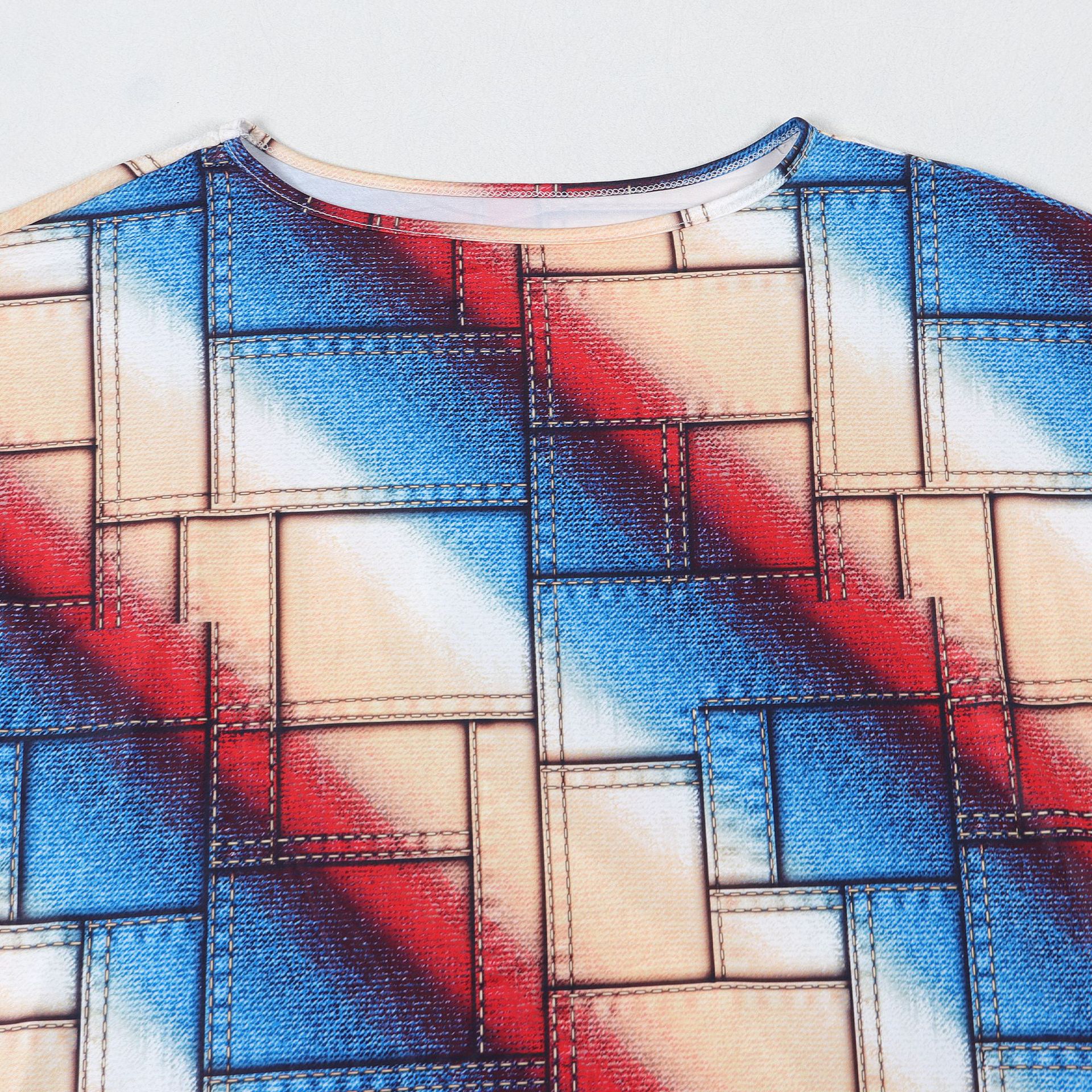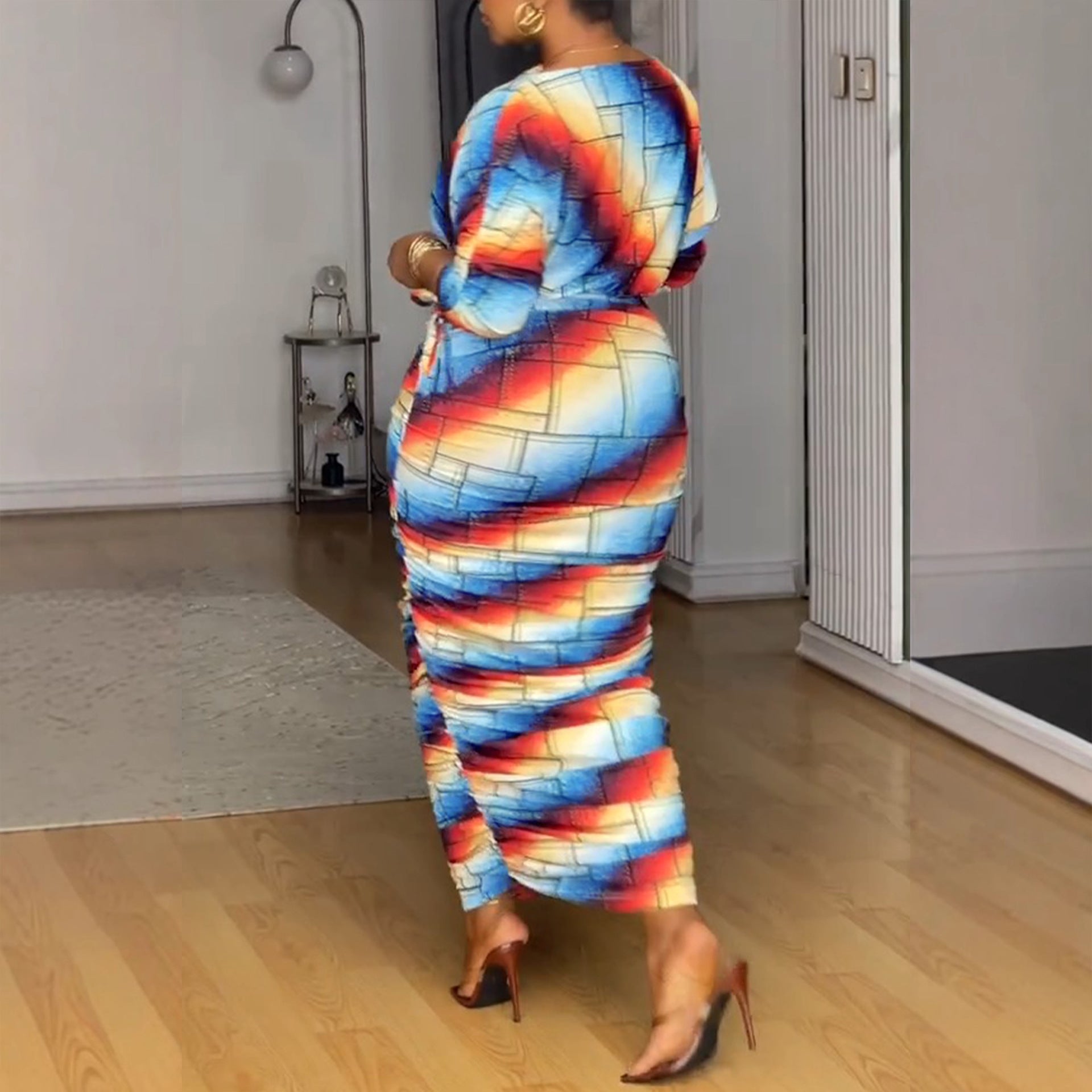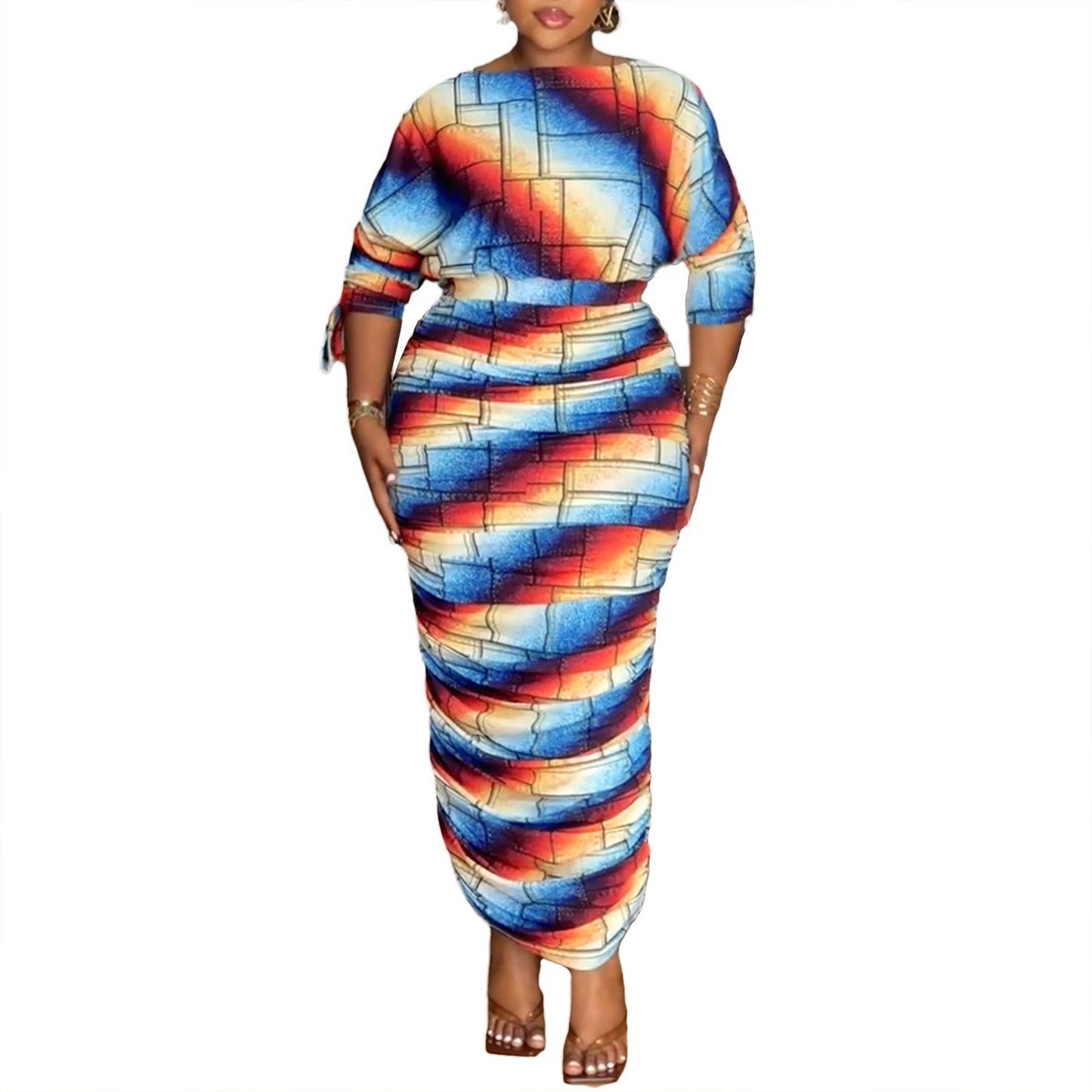 Women Printing Pleating Raglan Long Sleeves Skirt Two Piece Set