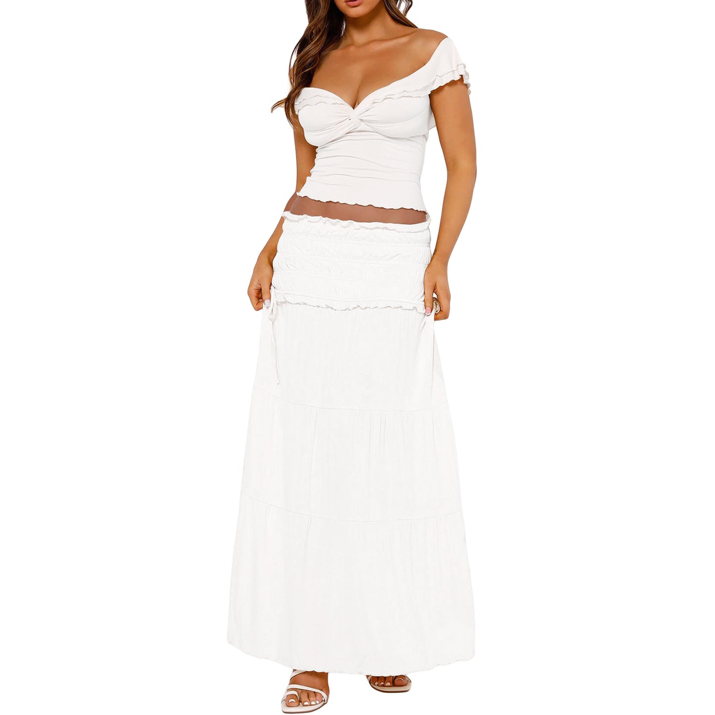 Women Sexy Elegant Skirt Maxi Dress Two Piece Set Top off Shoulder