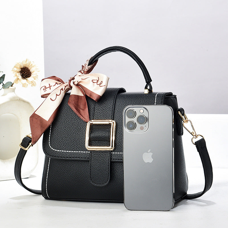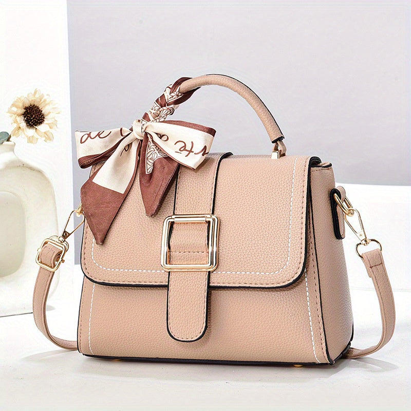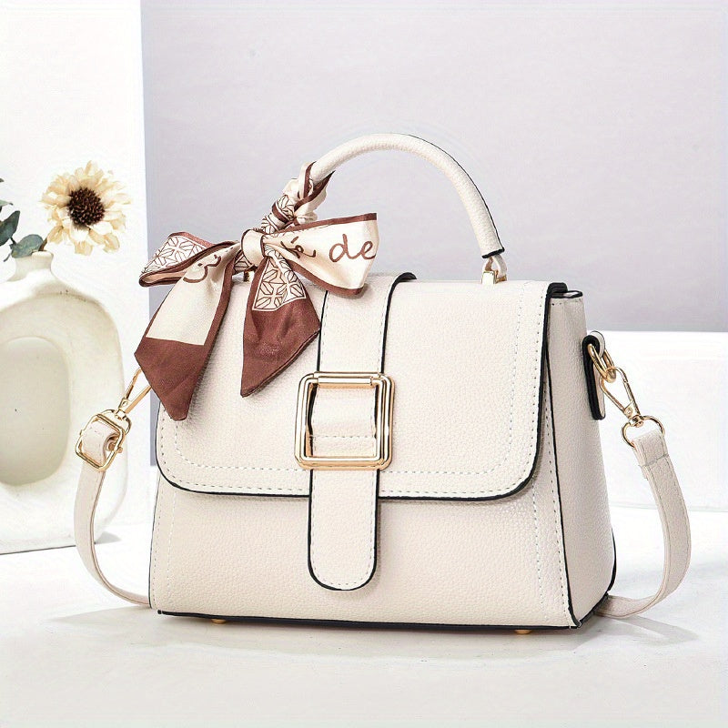 Women's 2025 Trendy Crossbody Handbag - Lightweight Compact Floral Bow & Golden-Tone Hardware, Adjustable Strap & Zipper Closure, Elegant White/Beige/Black, Versatile Everyday & Special Occasion Bag