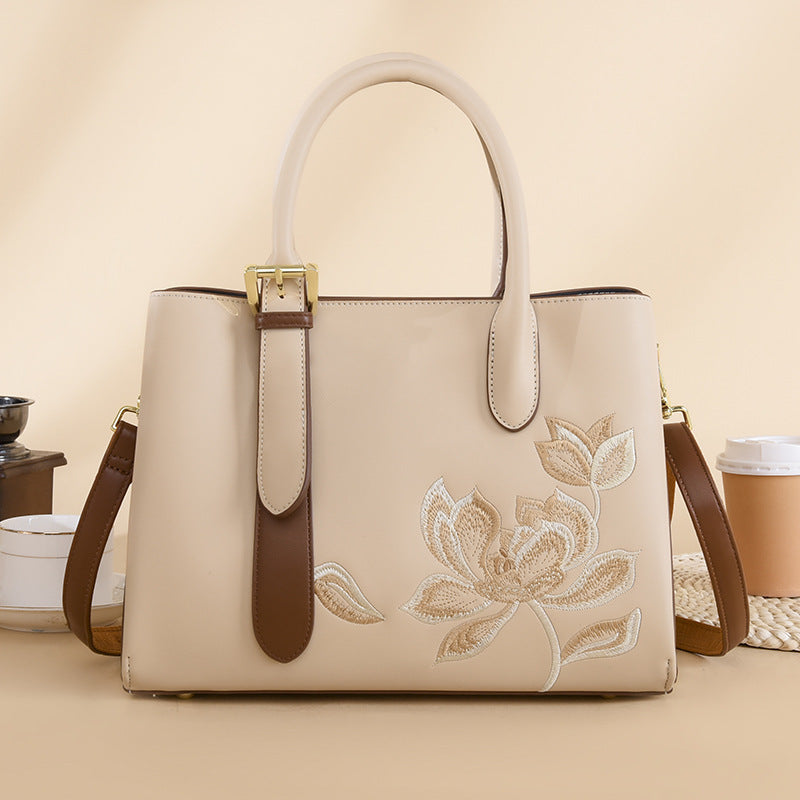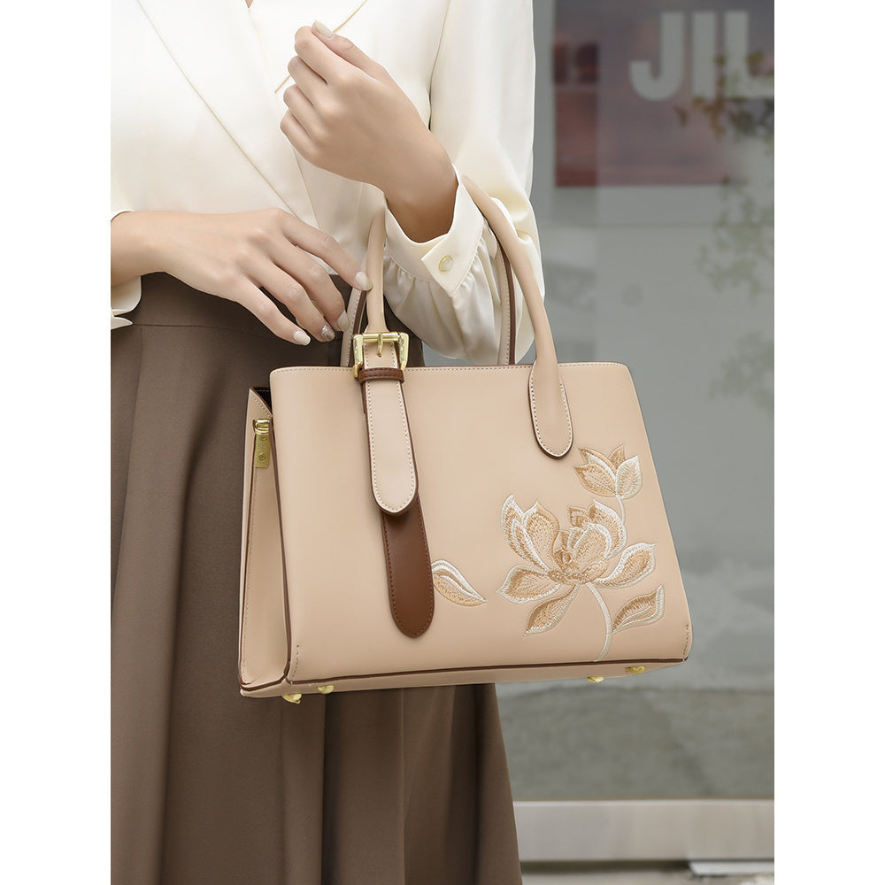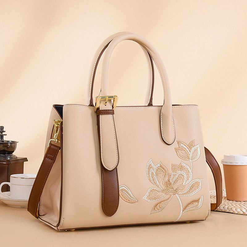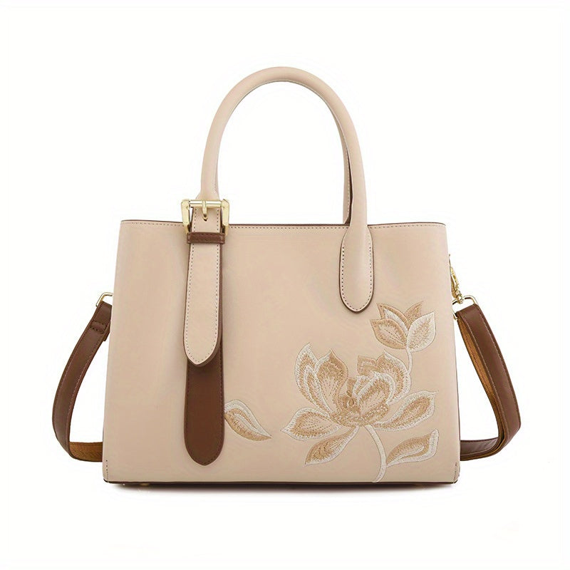 Women's Beige & Golden Luxury Handbag - Elegant Floral, Zipper Closure, Spacious Interior - Formal & Everyday Use - Guangzhou Crafted Designer Purse for Women, Travel Companion, Sophisticated Design, Refined Detailing, Fashionable Bag, Working Ladies