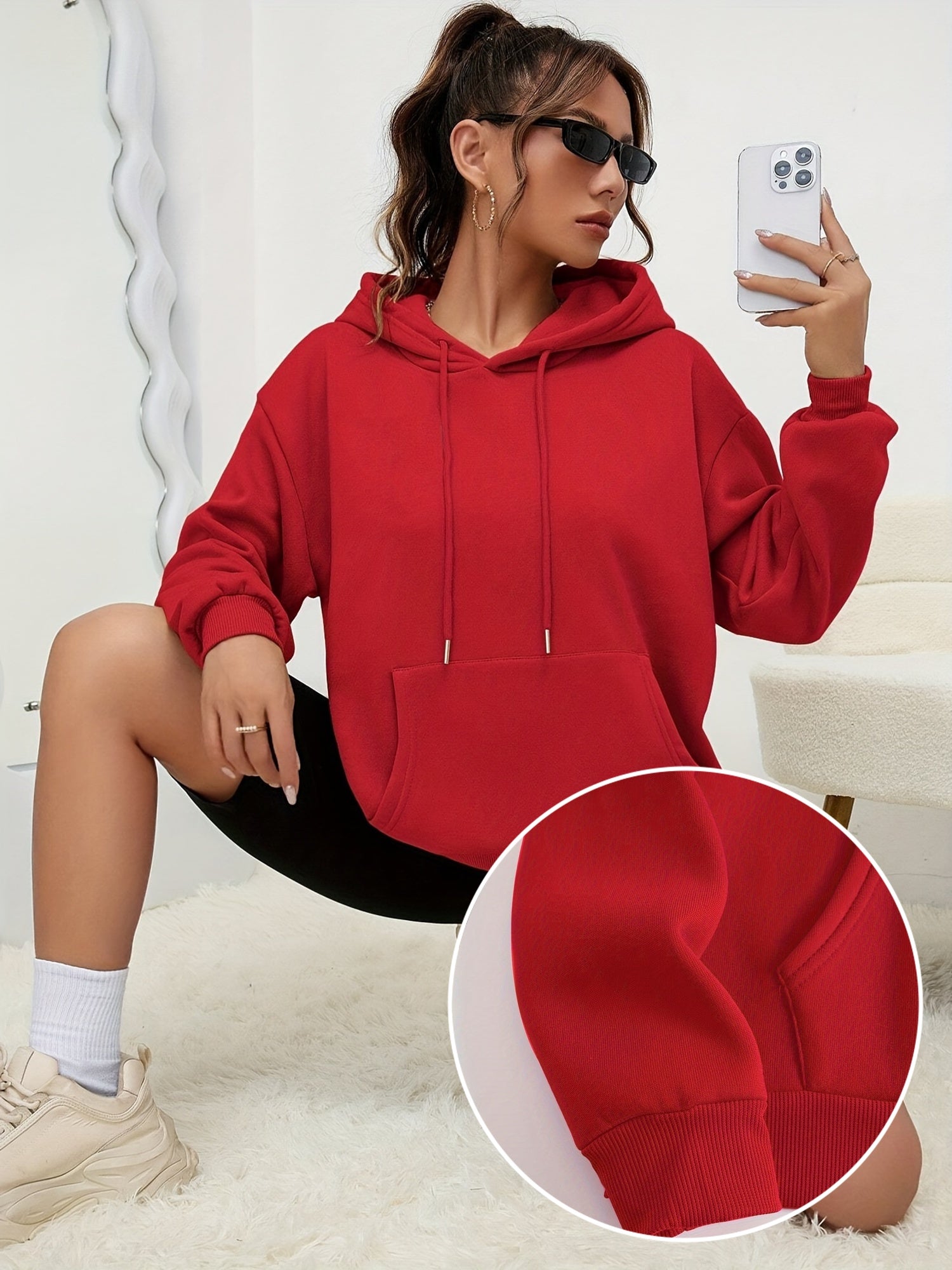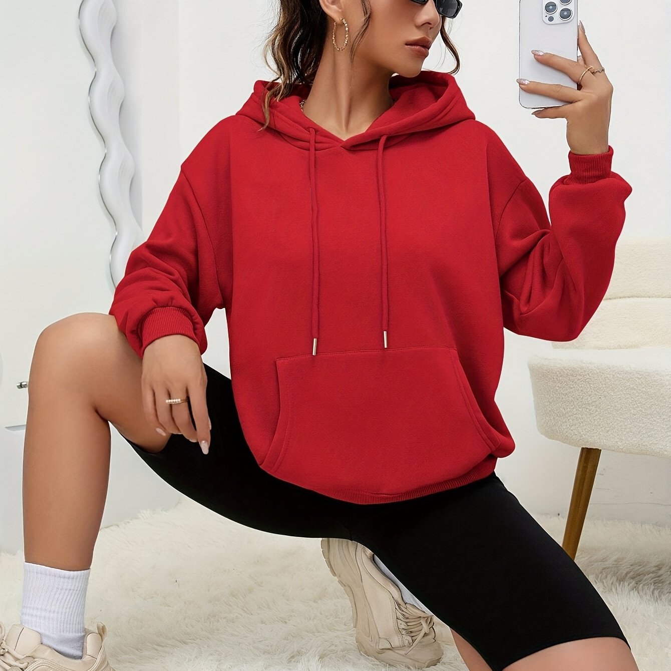 Women's Bright Red Hooded Sweatshirt with Drawstring & Pockets - Long Sleeve Casual Athletic Pullover, Polyester Knit Fabric, Comfortable and Stylish for Spring/Fall
