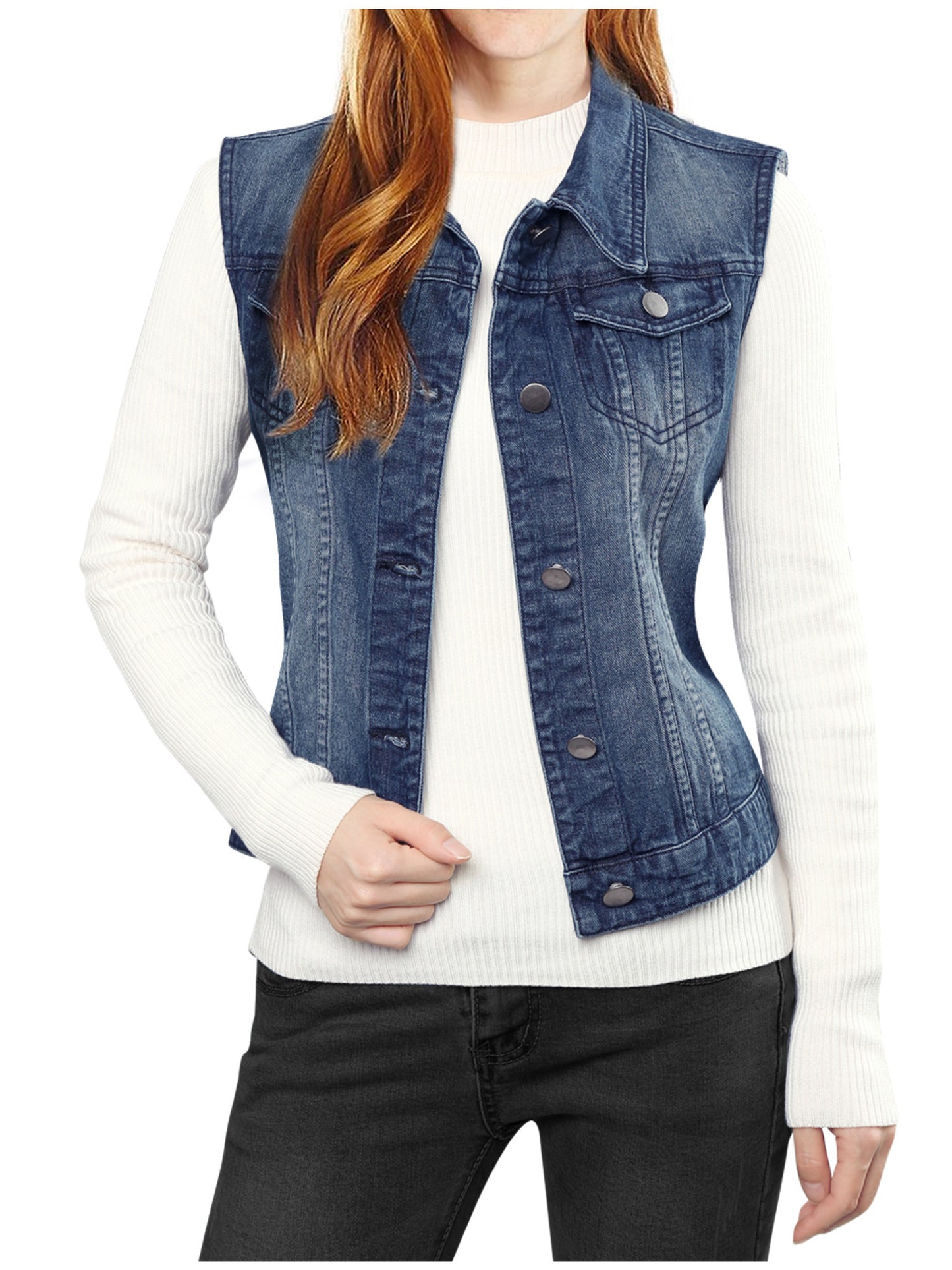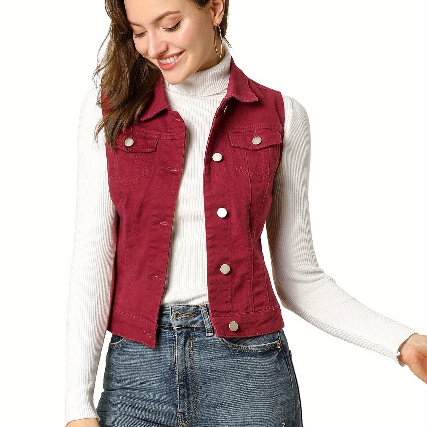 Women's Casual Buttoned Denim Vest Jacket with Chest Flap Pockets - Sleeveless Washed Blue Jean Jacket for Spring/Fall, Machine Washable, Trendy and Versatile Outerwear, Outdoor Clothing | Buttoned Vest | Durable Fabric
