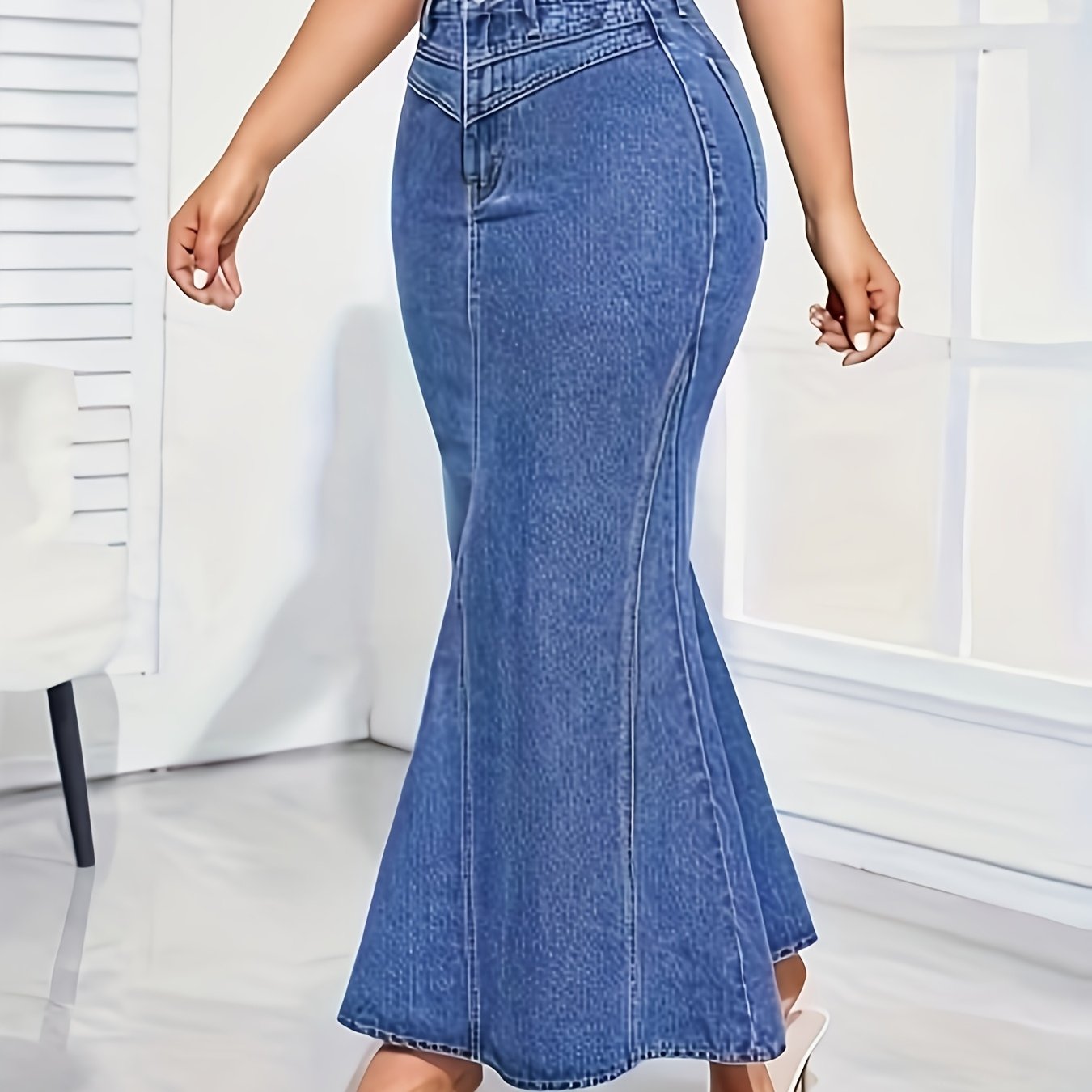 Women's Chic High-Waist Stretch Denim Mermaid Skirt - Versatile & Fashionable, Fishtail Design with Pockets, Machine Washable, Perfect for Spring/Summer/Fall