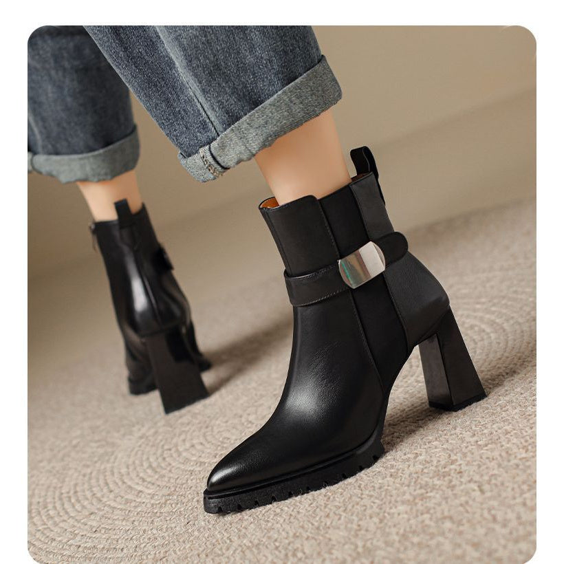 Women's Chunky Block Heel Ankle Boots - Pointed Toe with Side Zipper Closure, All-Season Synthetic Cover-like boots, Cushioned Insole & Non-Slip PU Outsole for Everyday & Formal Events - Women's Fashion Footwear, Versatile Shoes, Sleek Design, Quality Fin