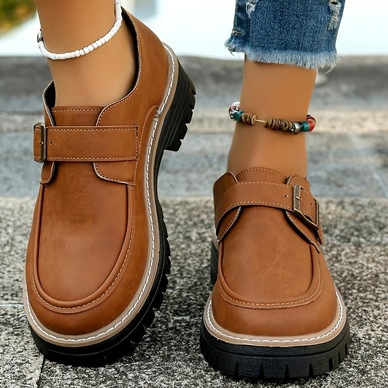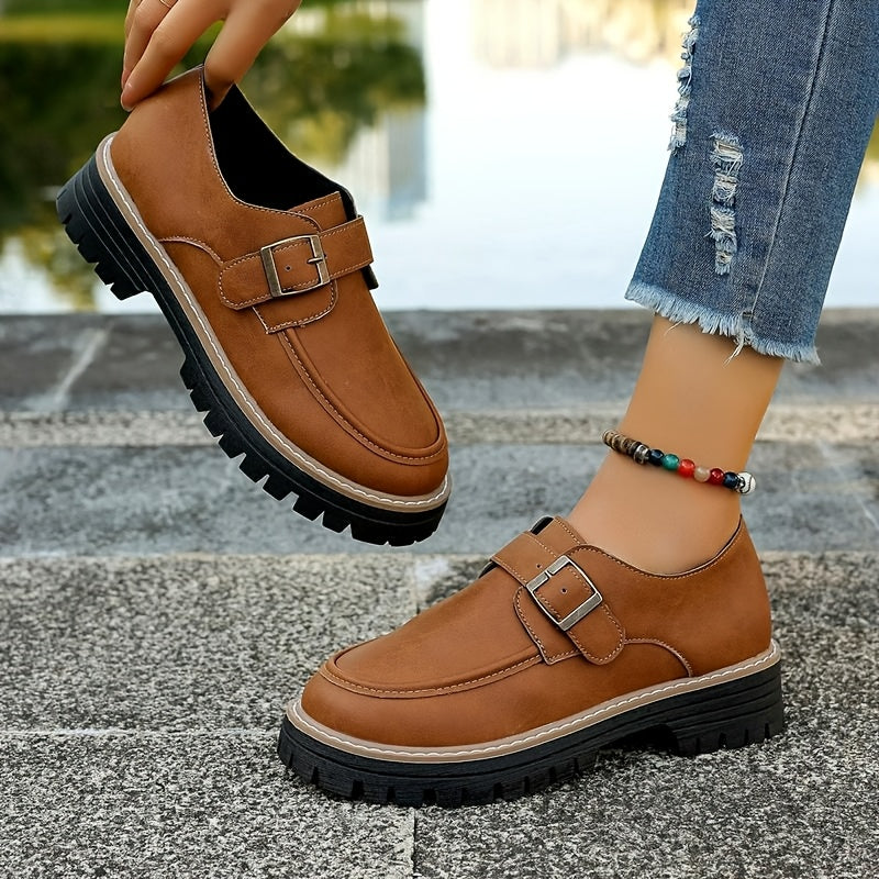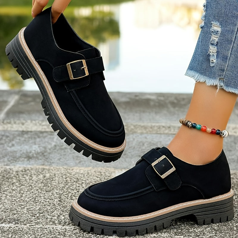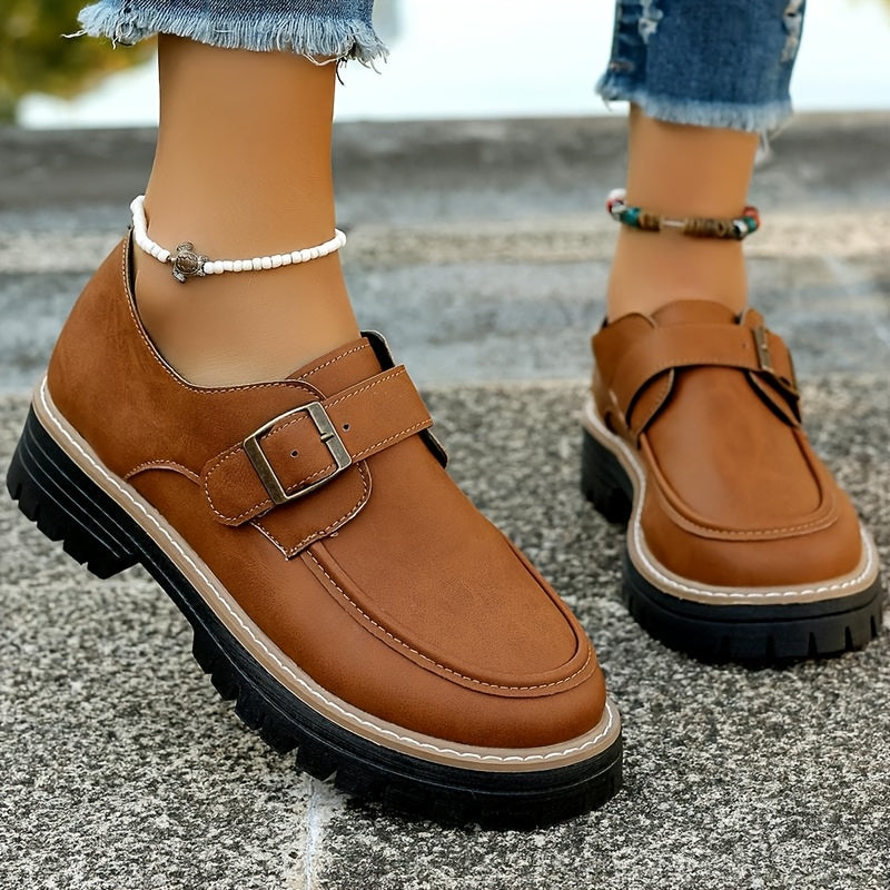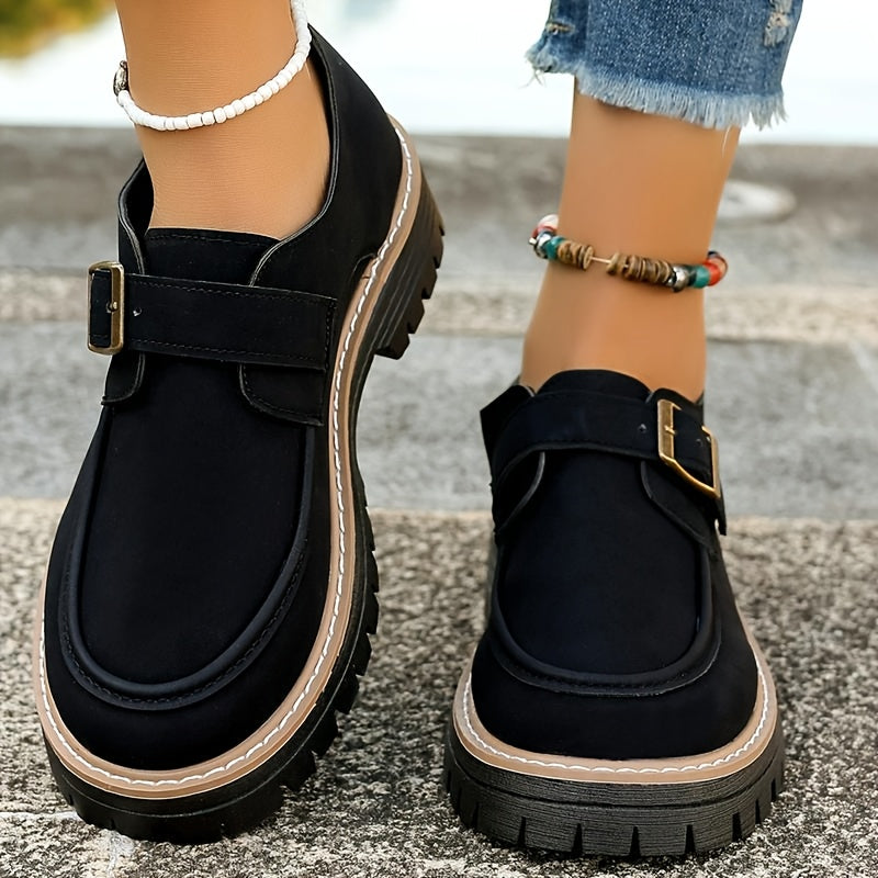 Women's Comfortable Casual Shoes - Low-Top Synthetic Cover with Adjustable Metallic Buckle Straps, Cushioned Insole & Non-Slip Rubber Sole for All-Season Casual Attire