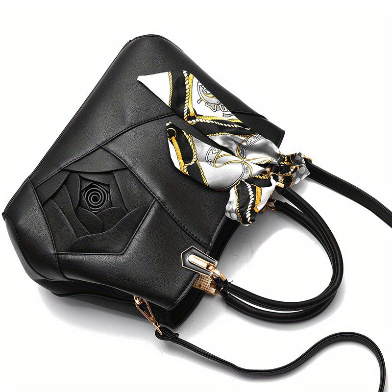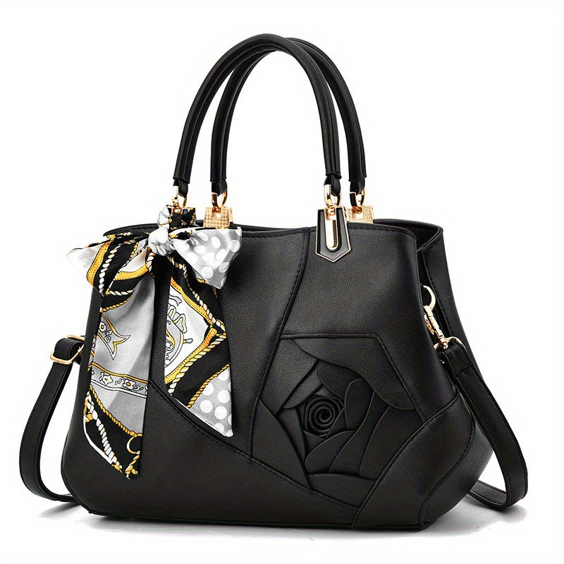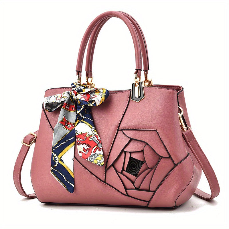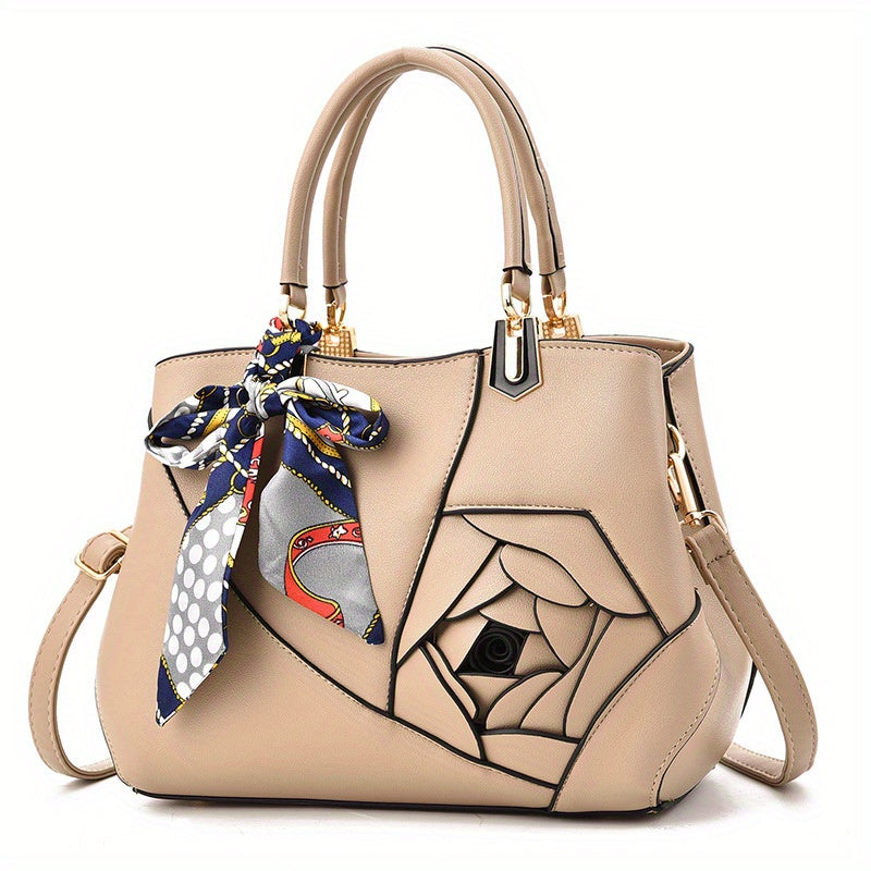 Women's Crossbody Bag with Floral design - Convertible Shoulder Purse, Zipper Closure, Golden-Tone Hardware - Everyday & Formal Handbag in Black, Beige, Pink, Blue, Burgundy - Easy-to-Clean Women's Purse, Crossbody Purse, Elegant Accessory