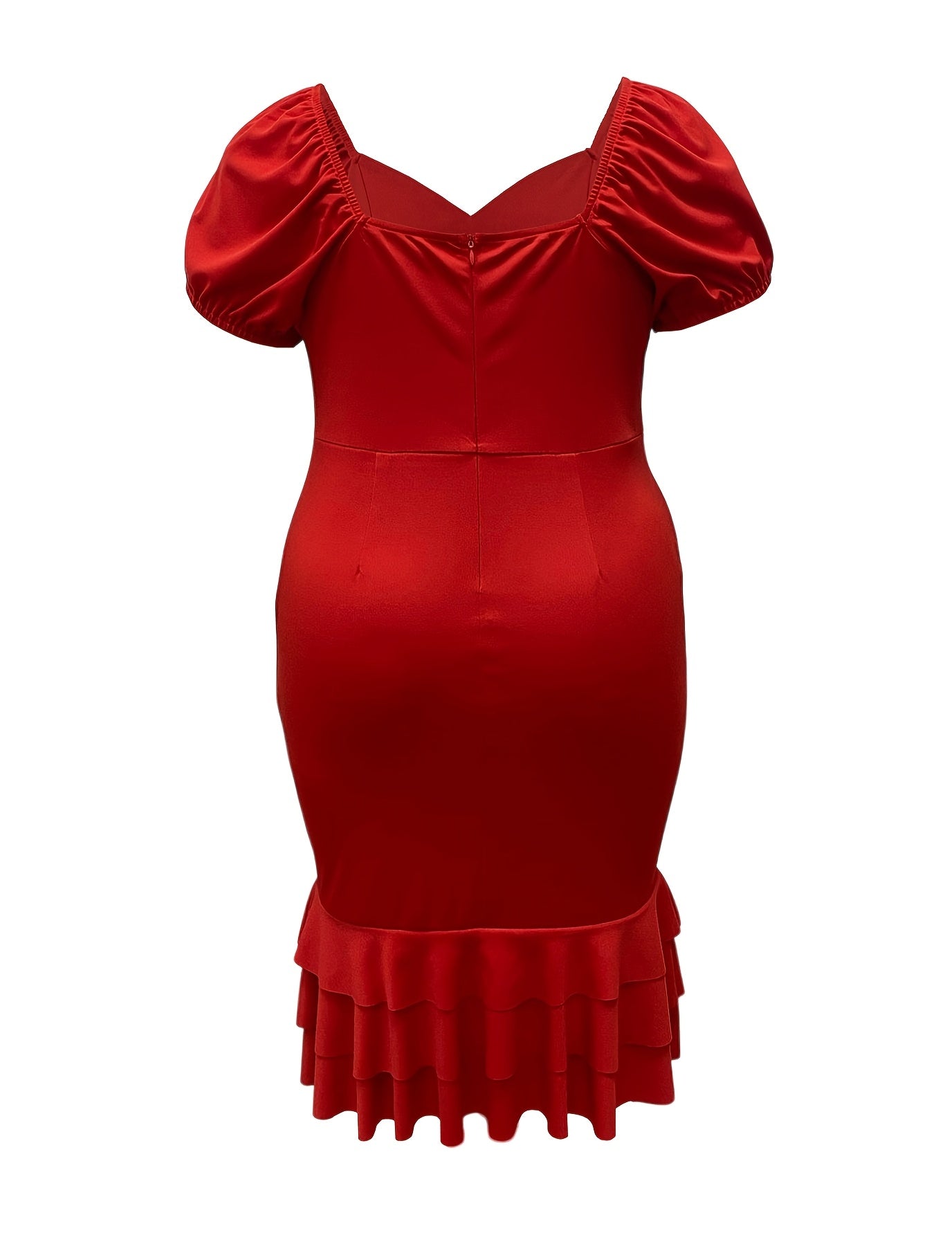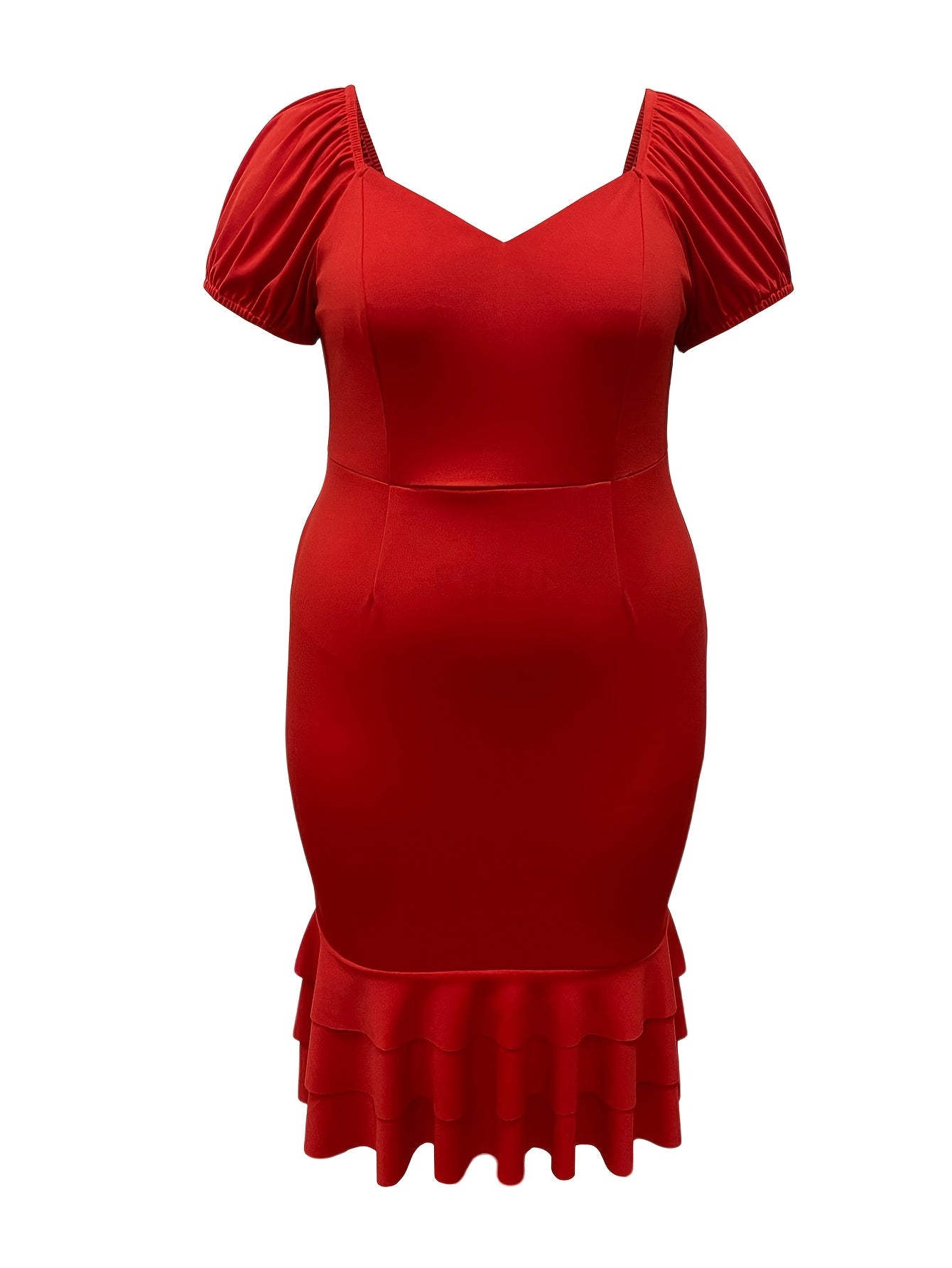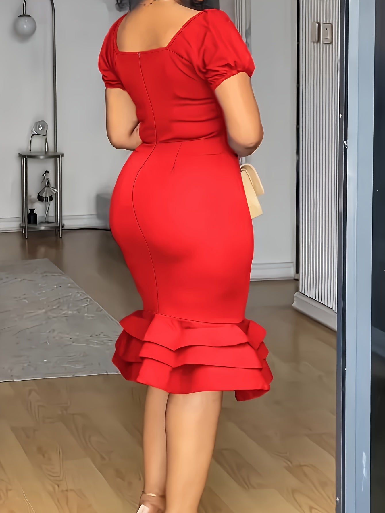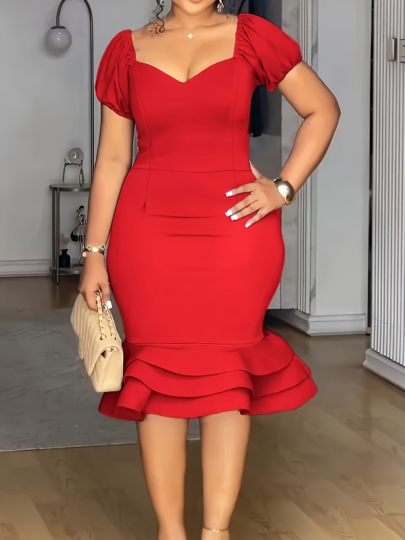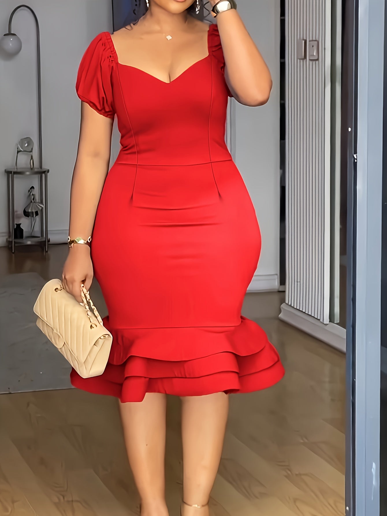 Women'S Elegant V-Neck Ruffle Hem Bodycon Dress, 100% Polyester Knit Fabric, Slight Stretch, All-Season Office Formal Wrap Dress