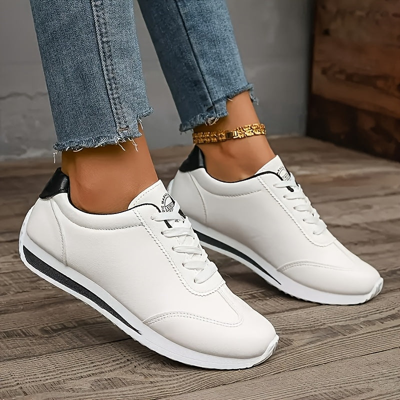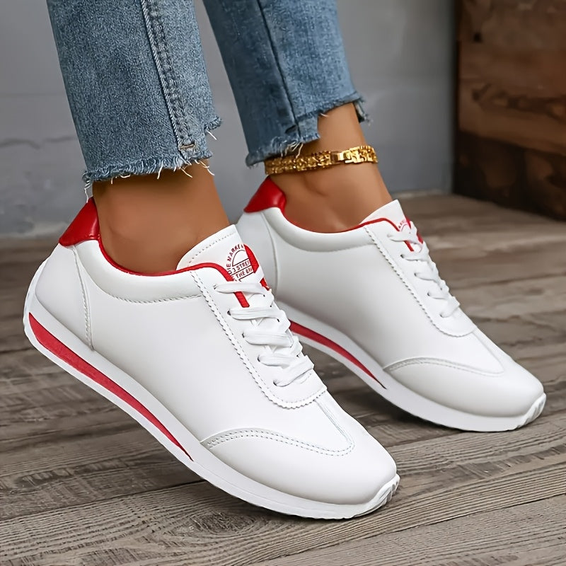 Women'S Low-Top Athletic Sneakers - Lightweight & Breathable Synthetic Fabric with Red Accents, Rubber Sole, Lace-Up Closure, All-Season Casual Walking Shoes for a Comfortable Fit, Everyday Sneakers | Stylish Walking Shoes | Lightweight Construction
