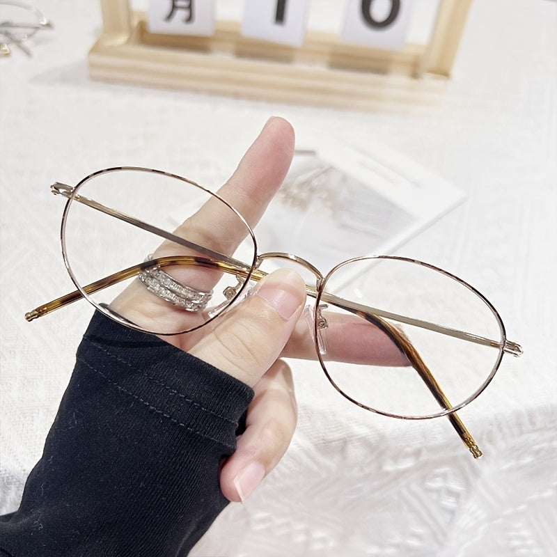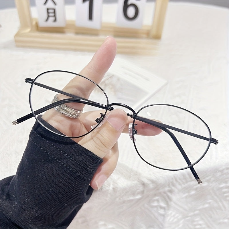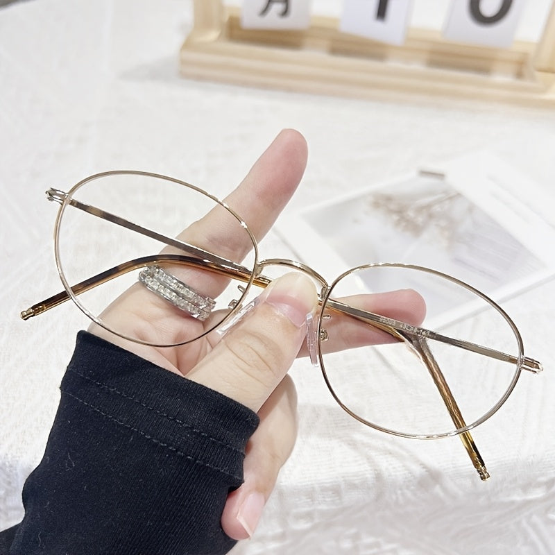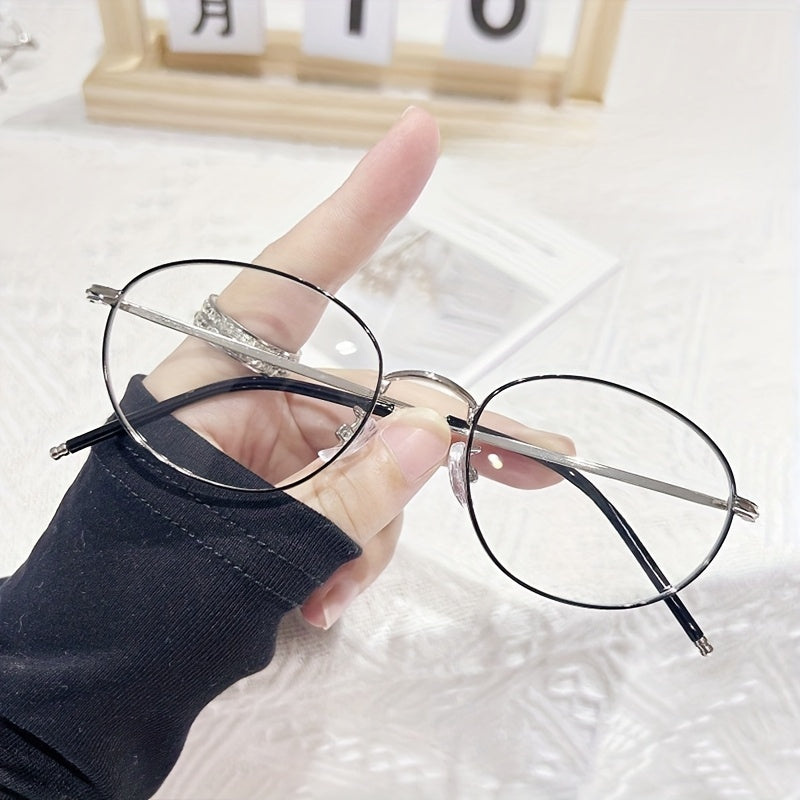 Women's Minimalist Oval Full-Rim Blue Light Blocking Glasses - Non-Prescription Fashion Eyewear with Metallic Accents, Lightweight Durable Frame for Digital Screens & Daily Use, Screen Time Protection, Elegant Design, Highquality Lenses, Decorative Frames