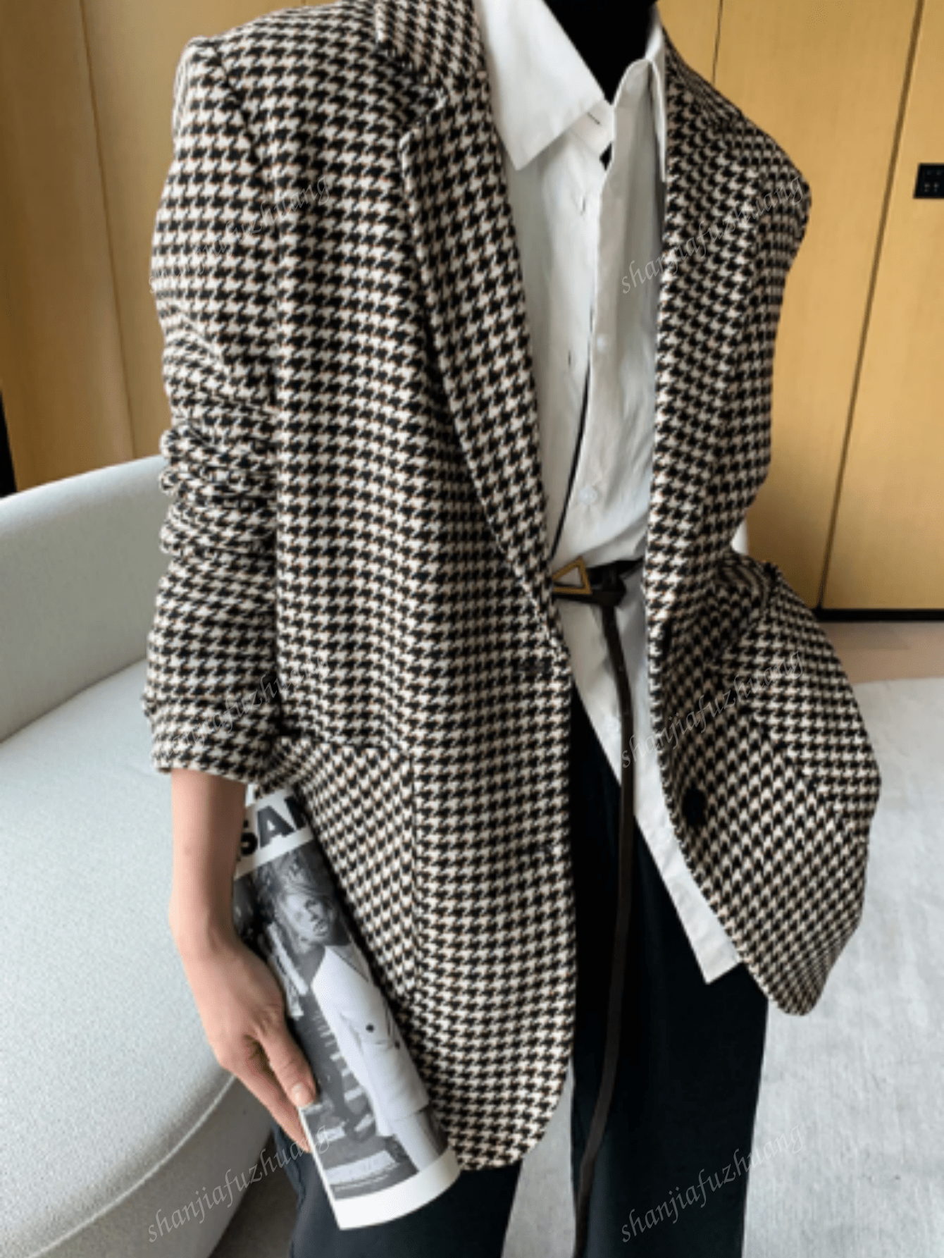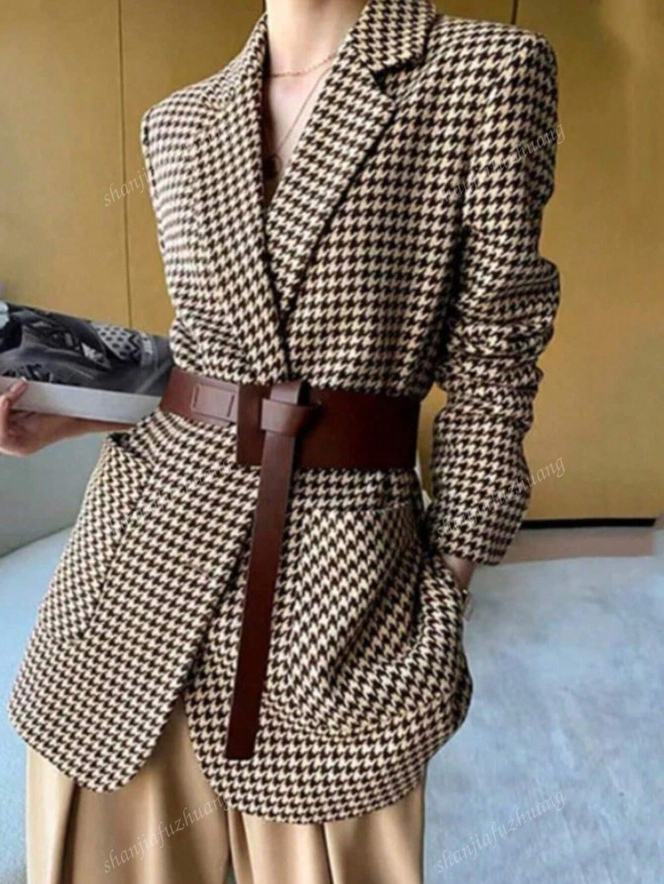 Women's Notched Collar Long Sleeve Casual Blazer Jacket