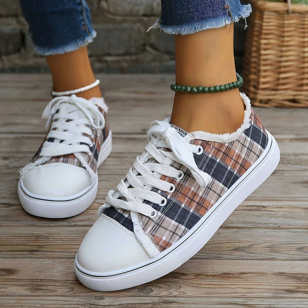 Women's Plaid Pattern Sneakers, Lace Up Lightweight Flat Soft Sole Walking Skate Shoes, Low-top Comfort Canvas Shoes