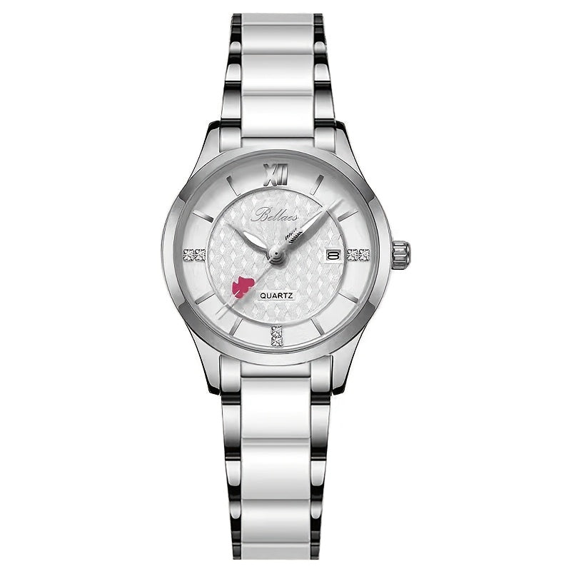 Women's Rose Golden-Tone Watch with Ceramic Strap - Elegant Quartz Movement wristwatch, Date Display & Heart Accents - Valentine's Day, Anniversary, Birthday Gift for Her - Everyday & Formal Jewelry-Worthy Accessory