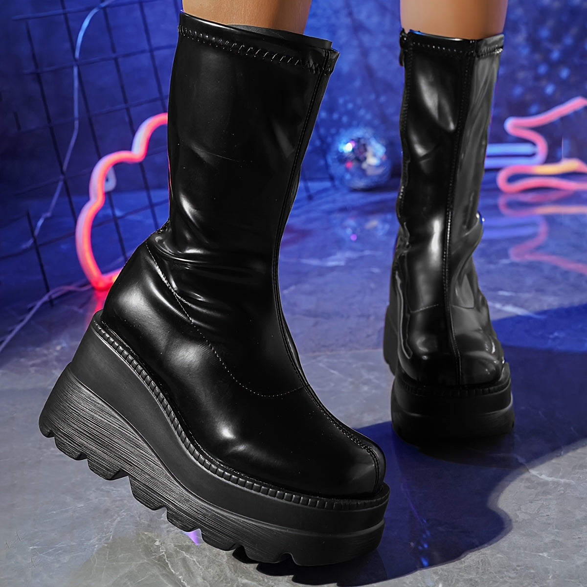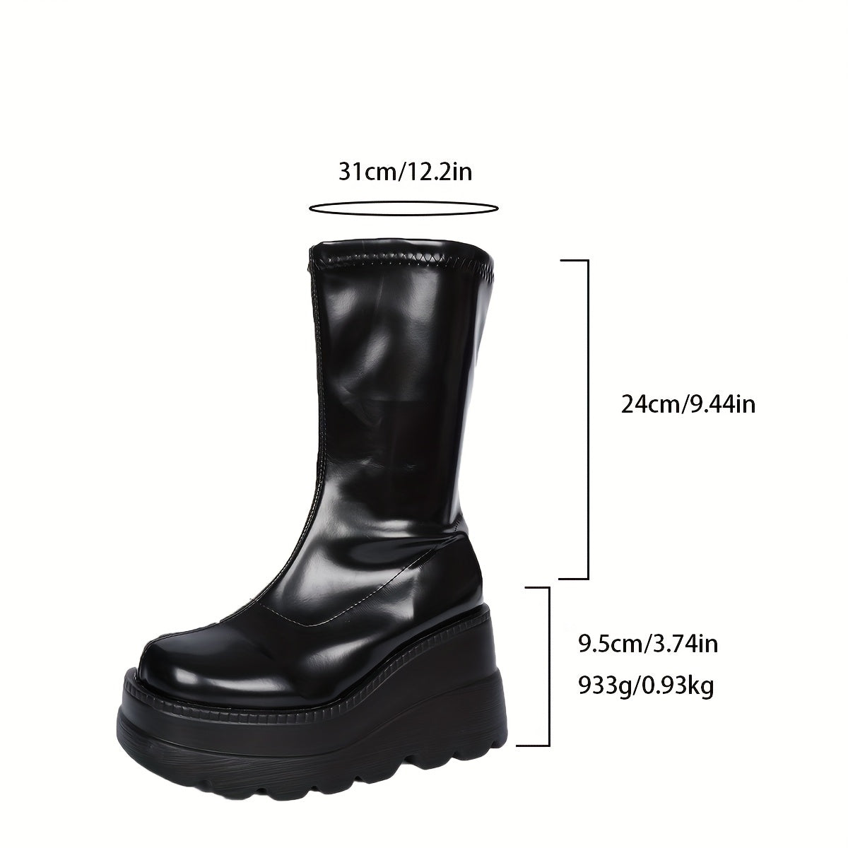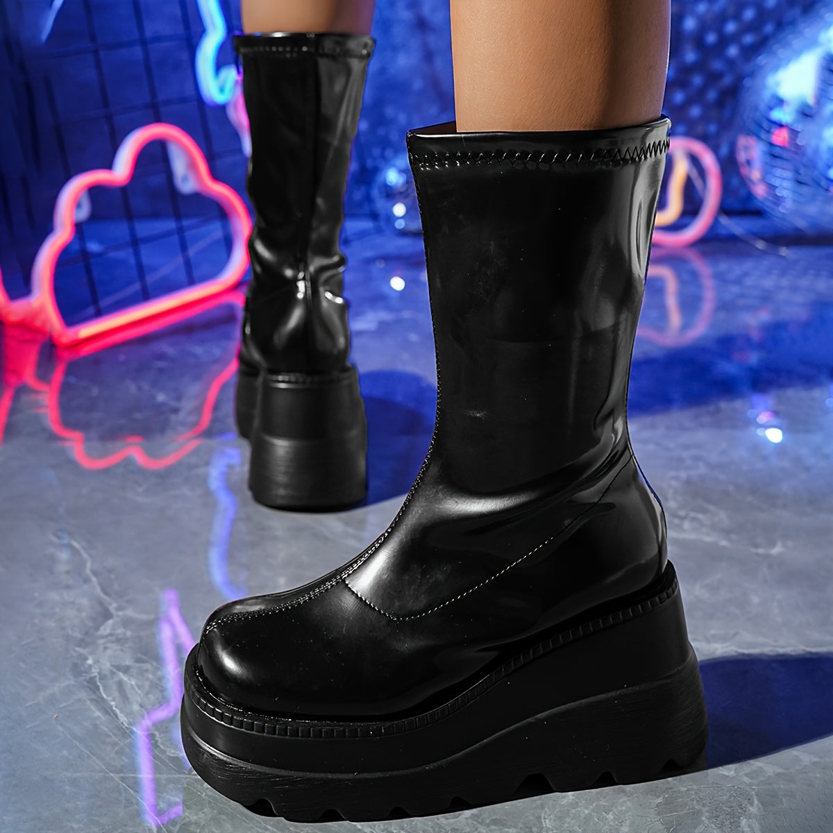 Women's Slip-On Chunky platform boots - Slip-On Closure, Cushioned Insole & Non-Slip Rubber Sole - Formal & Casual Shoes for Parties, Everyday, Office - Black Booties, Versatile Footwear, Modern Fashion, Quality Finish, Fashion Lovers