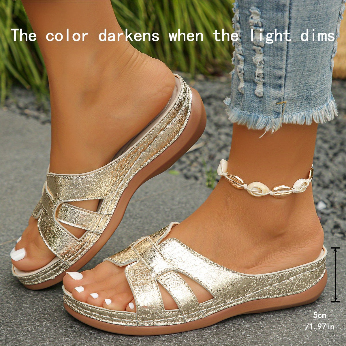 Women'S Slip-On Platform Sandals - High Quality, Lightweight Summer Shoes with Thick Platform Sole, Open-Toe Mid-Heel sandals for Beach, Office, Parties - Easy-Clean Synthetic Synthetic & Rubber Outsoles - Elegant Everyday & Formal Footwear, Beach Footwea