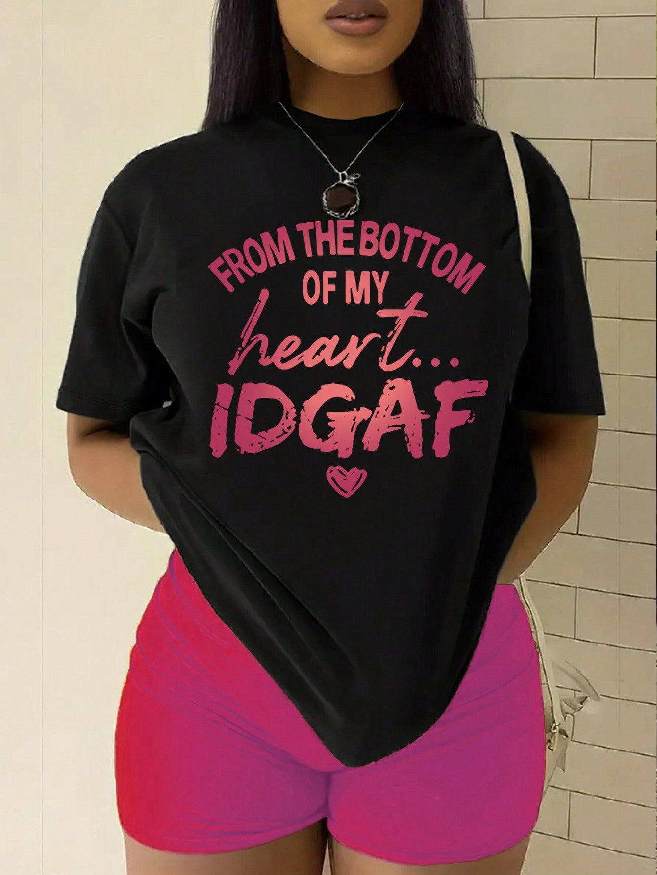 Women's Slogan Printed Round Neck Short Sleeve T-Shirt FROM THE BOTTOM OF MY Heart Graphic Tees Women Tops