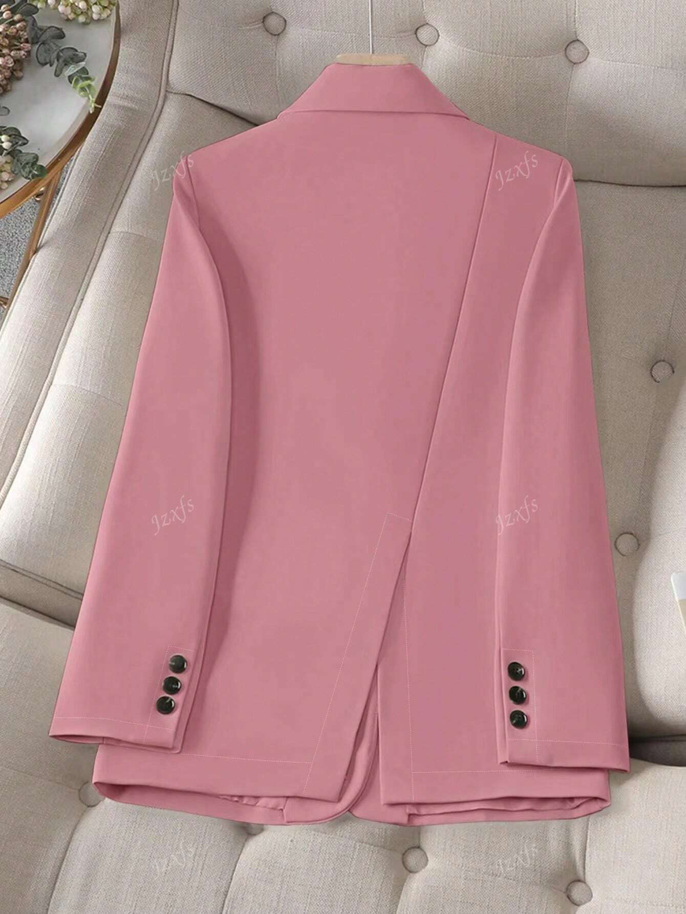 Women's Solid Color Band Collar Long Sleeve Single Button Casual Office Blazer Jacket, Autumn
