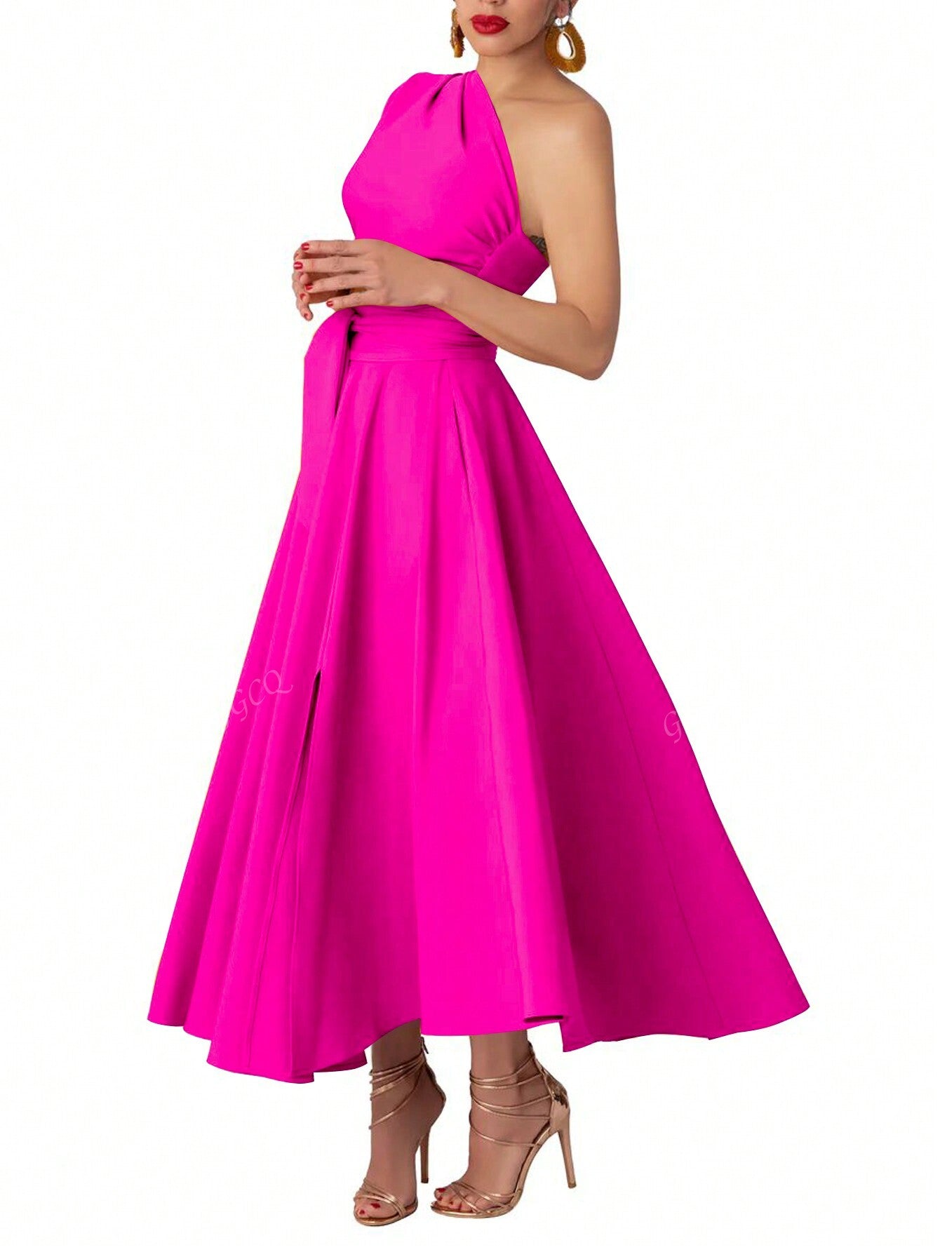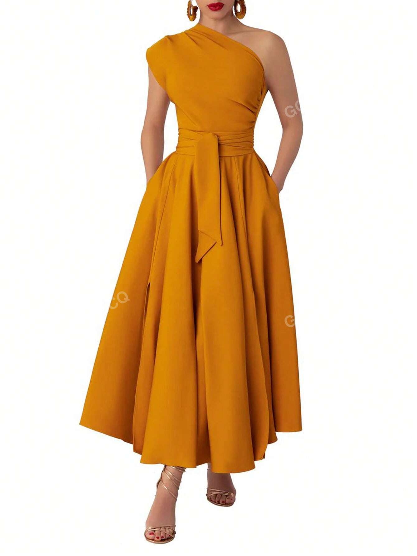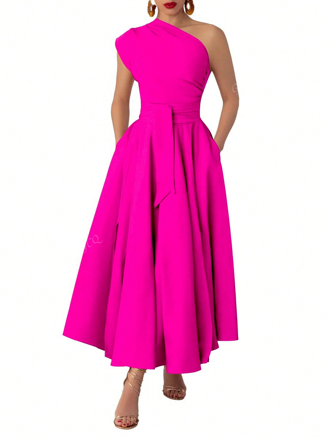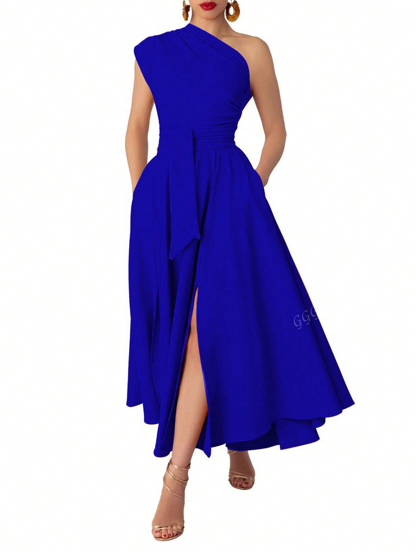 Women's Solid Color Sleeveless Pocket Open Slit Hem Dress, Elegant Summer
