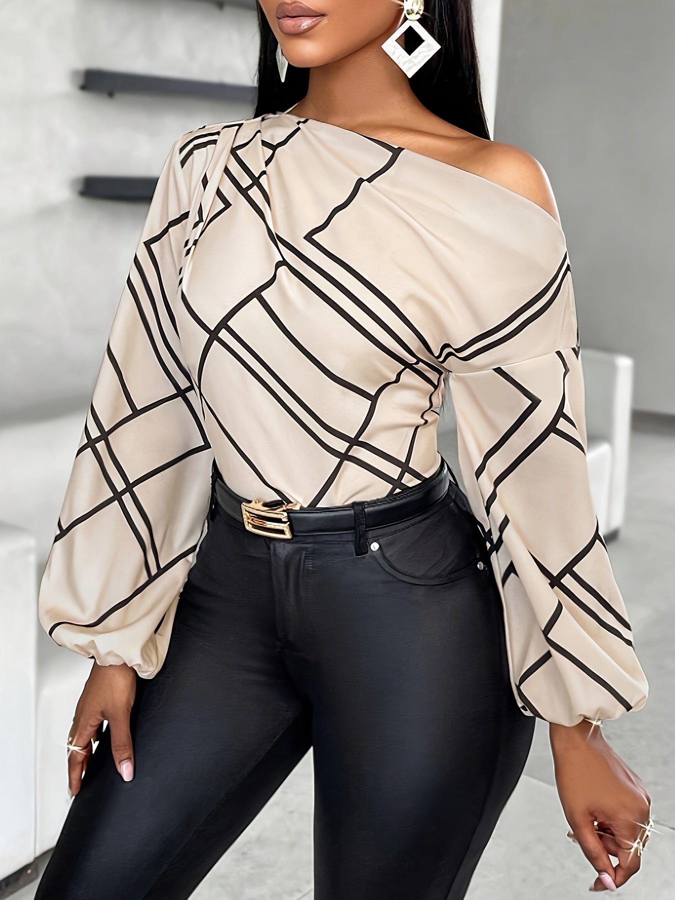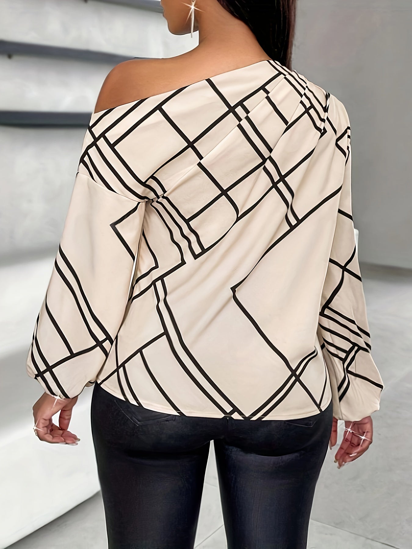 Women'S Striped Printed Irregular Ruffled Shoulder Top