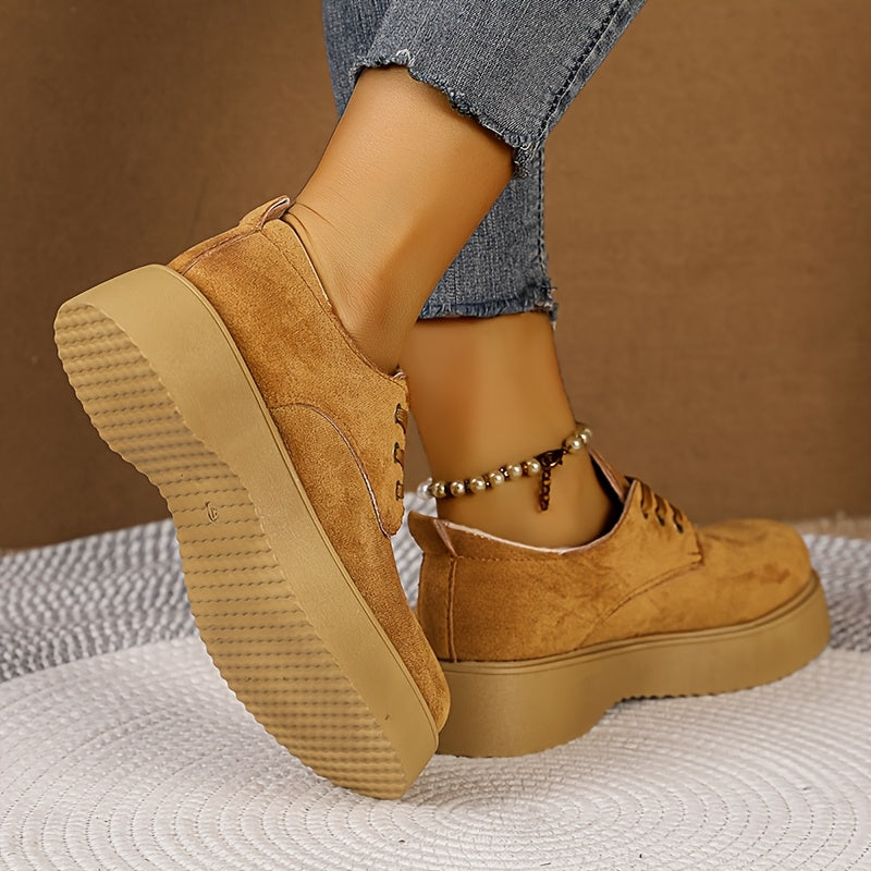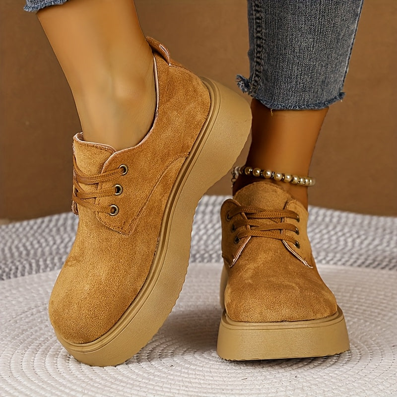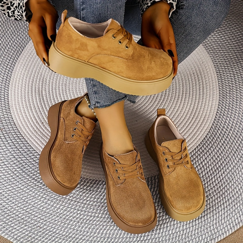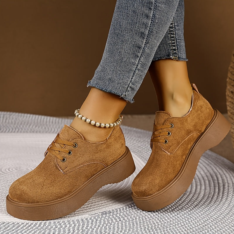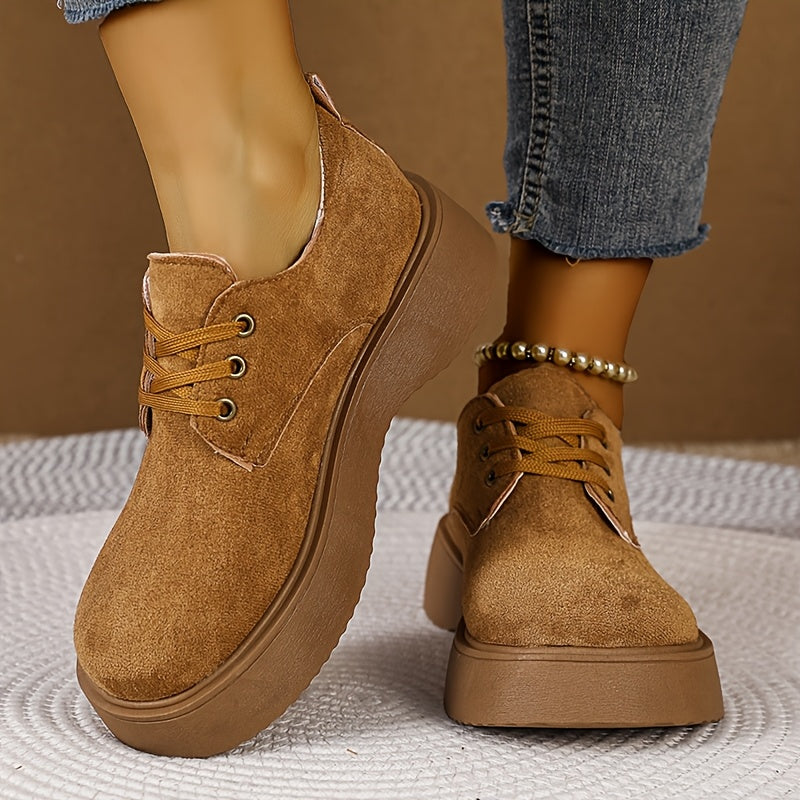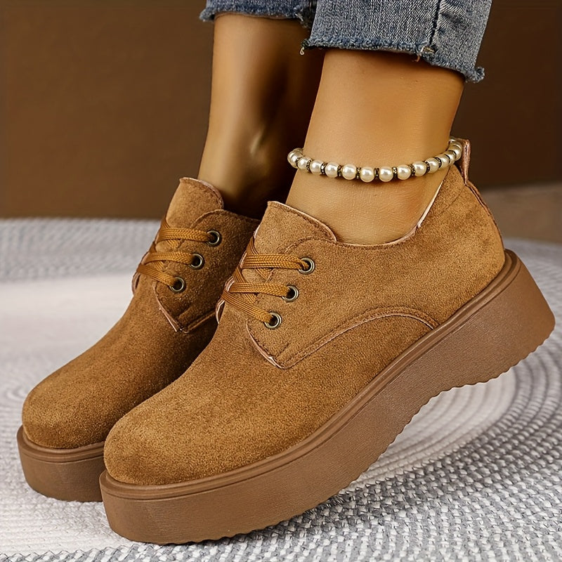 Women's Stylish Brown Platform Sneakers - Casual Lace-Up Low Tops with Round Toe, Comfortable Rubber Sole, and Faux Cover Upper for Casual Attire, Versatile Platform Shoes | Round Toe Sneakers | Durable Rubber Sole, Ladies Sneakers