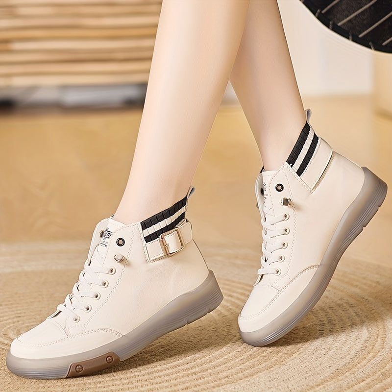 Women's Trendy Flat Sneakers, Casual Lace Up Outdoor Shoes, Comfortable Buckle Strap Detailed Shoes