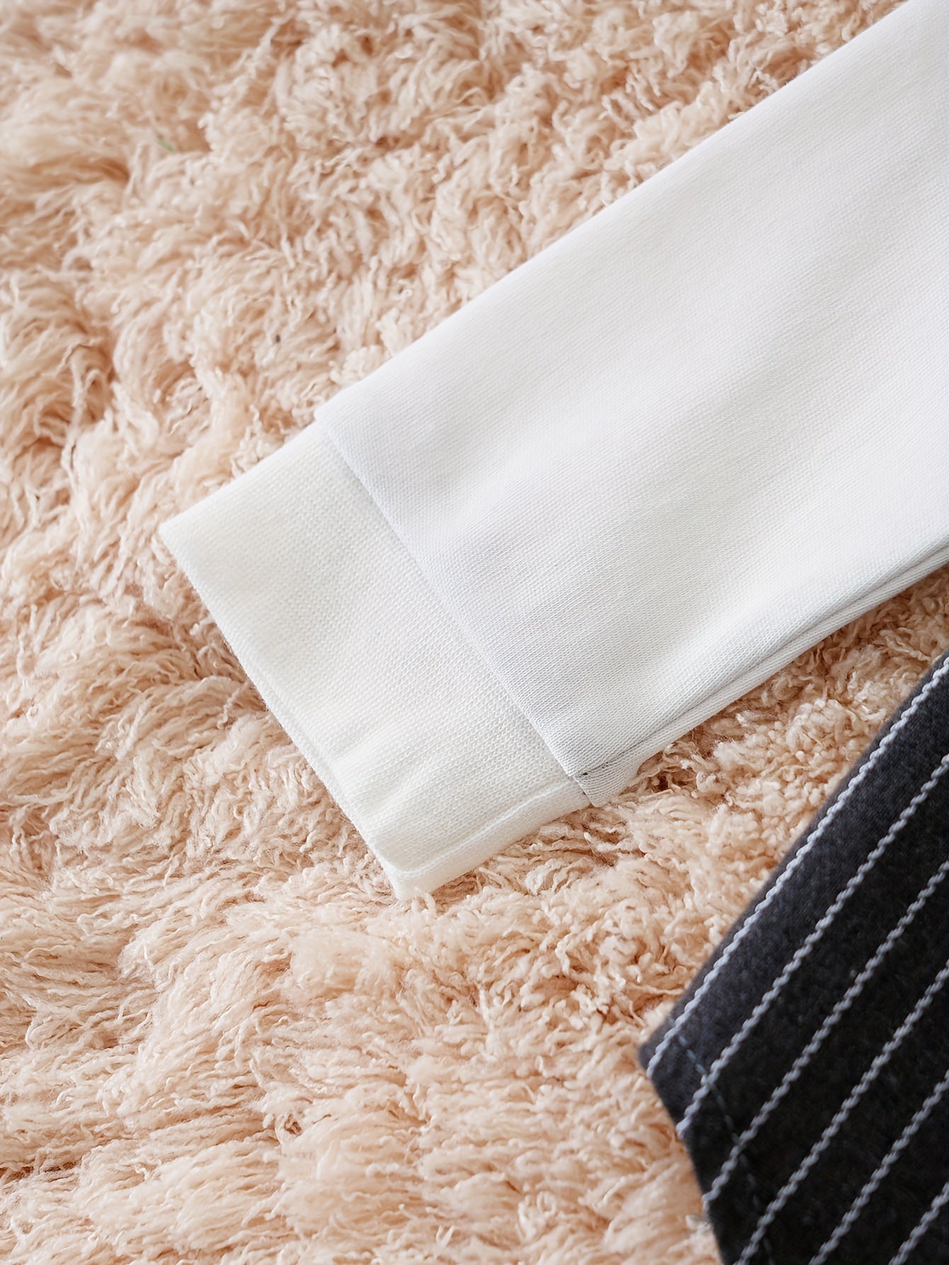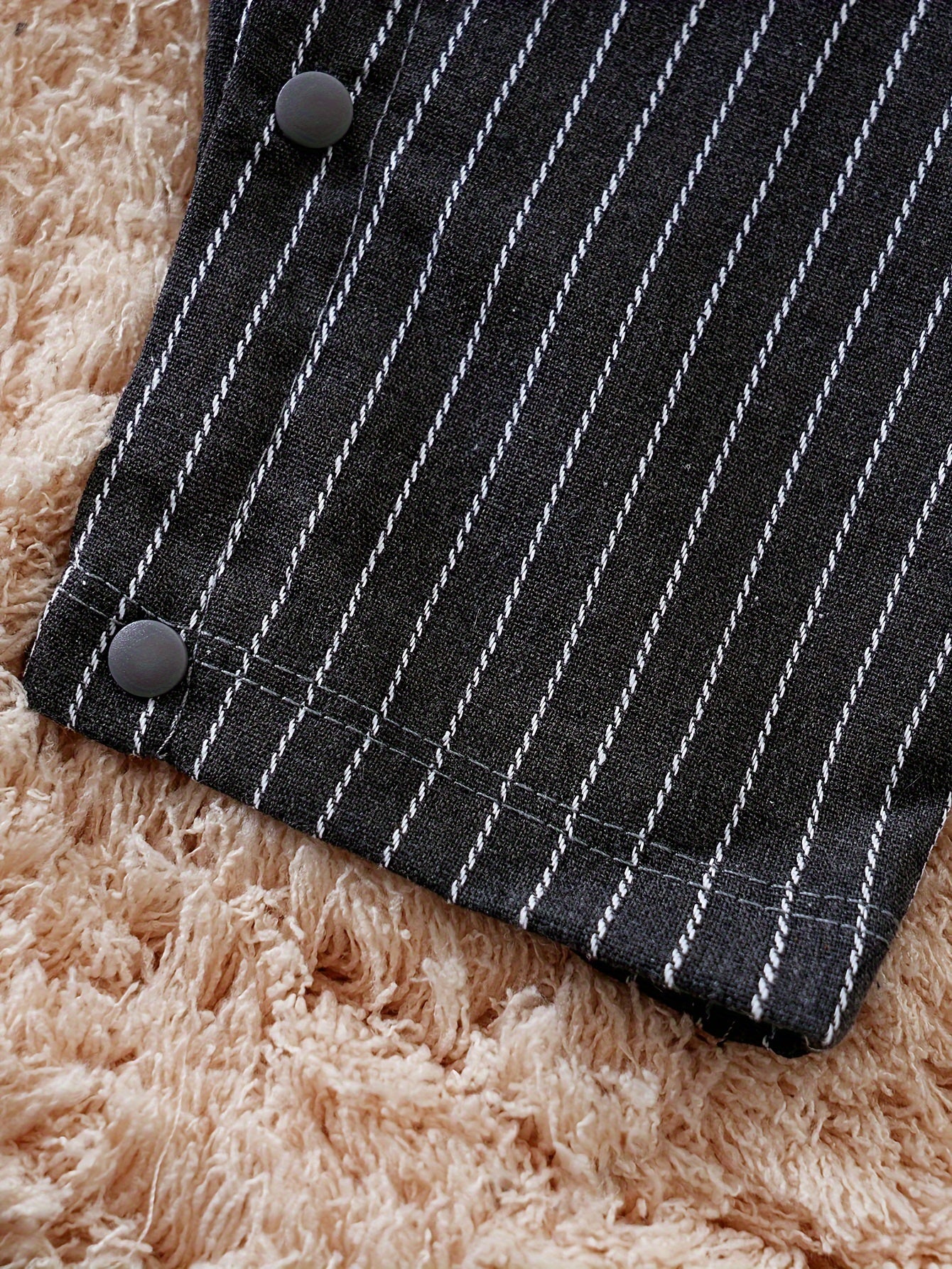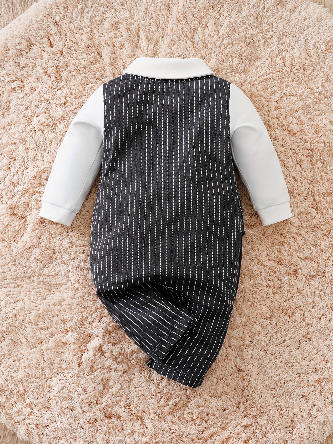 YIERYING Baby Boy Striped Gentleman Jumpsuit - Long Sleeve, Polyester Blend, Perfect for Spring/Fall, Includes Matching Bow Tie and Shoes