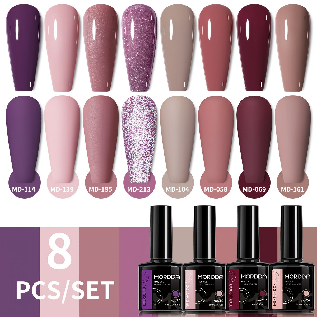 0.2oz 8 Colors New Popular Alcohol Free Nail Gel, Semi Permanent, UV LED, Glitter Gel, Sequins Gel, Color Gel, for Nail Art, DIY, Nail Salon