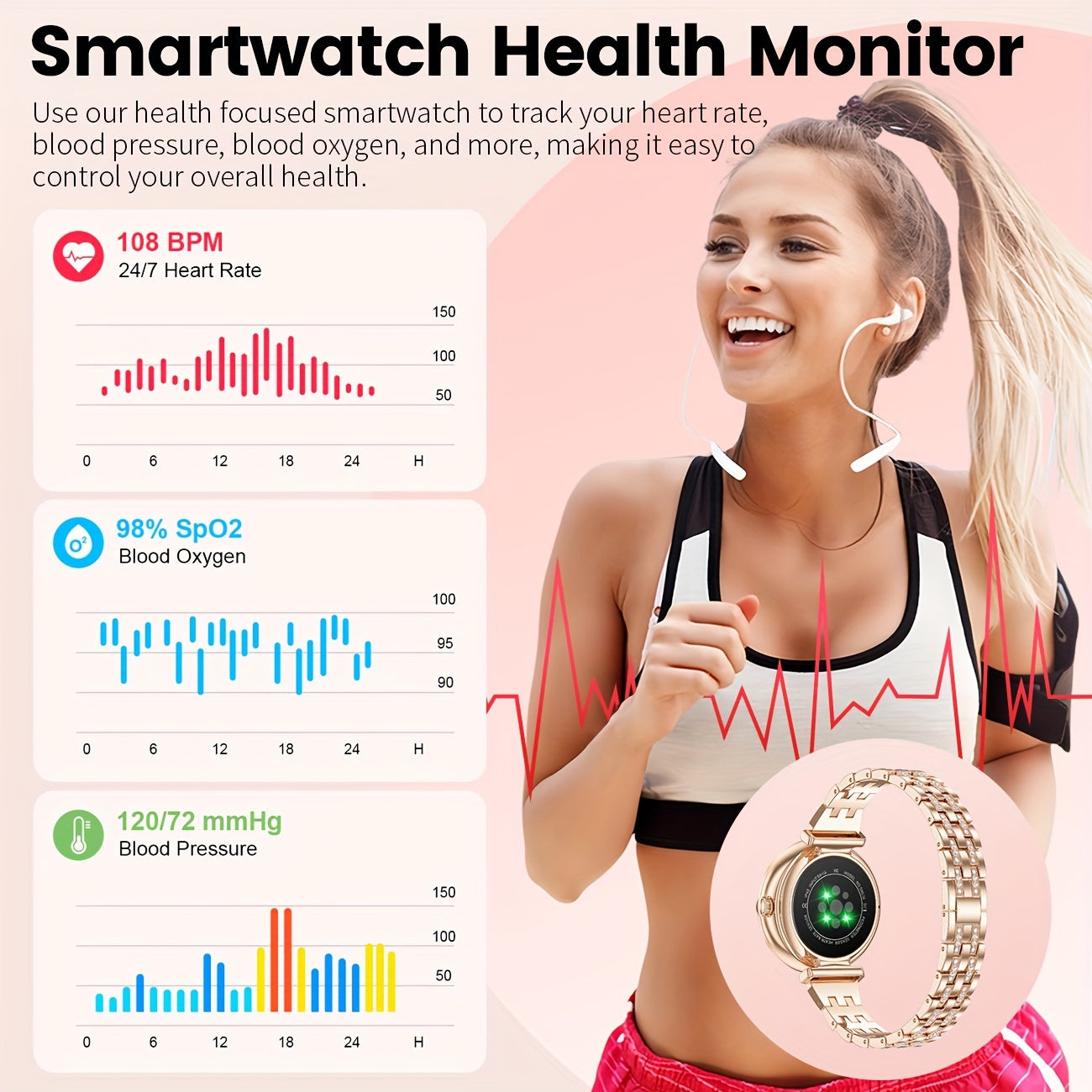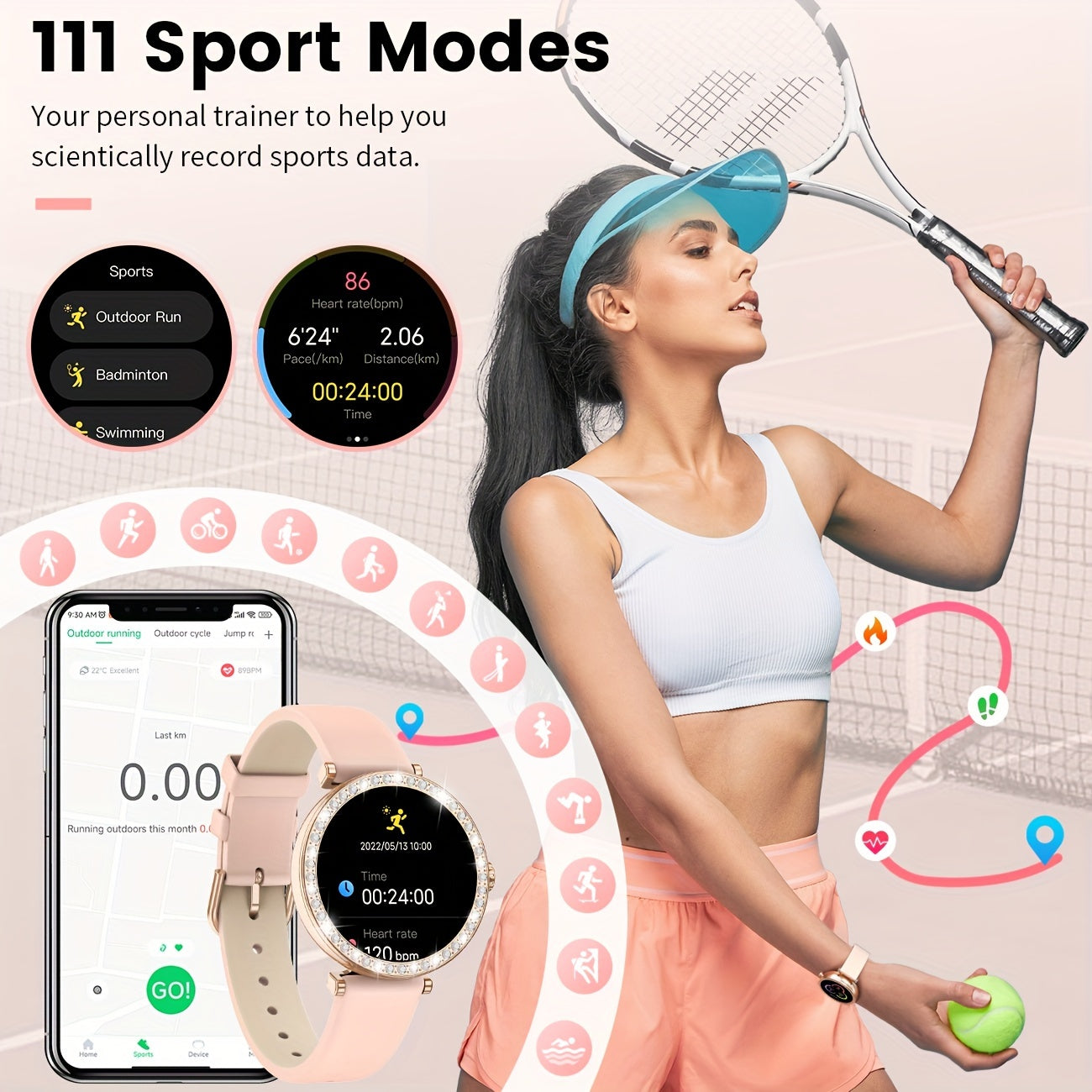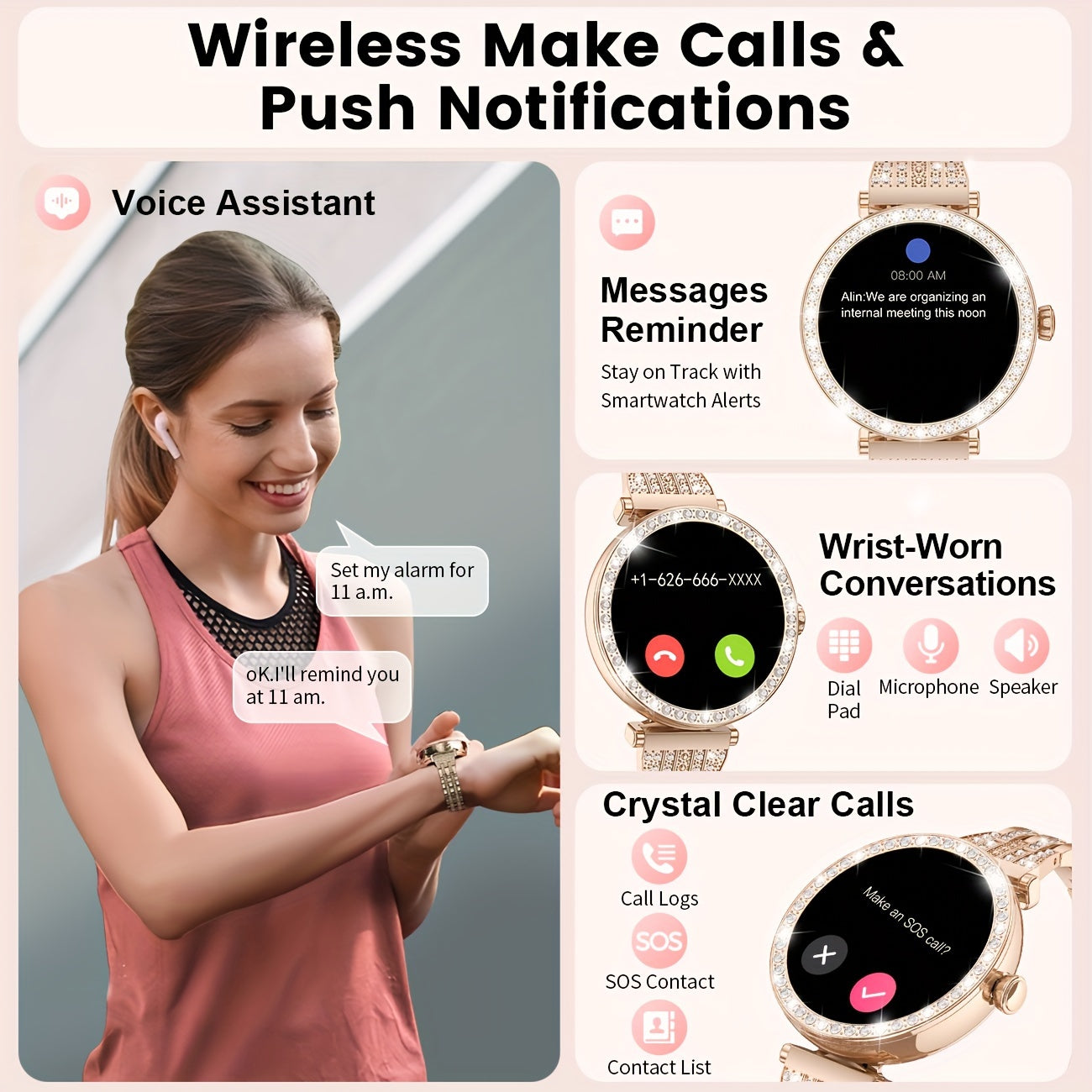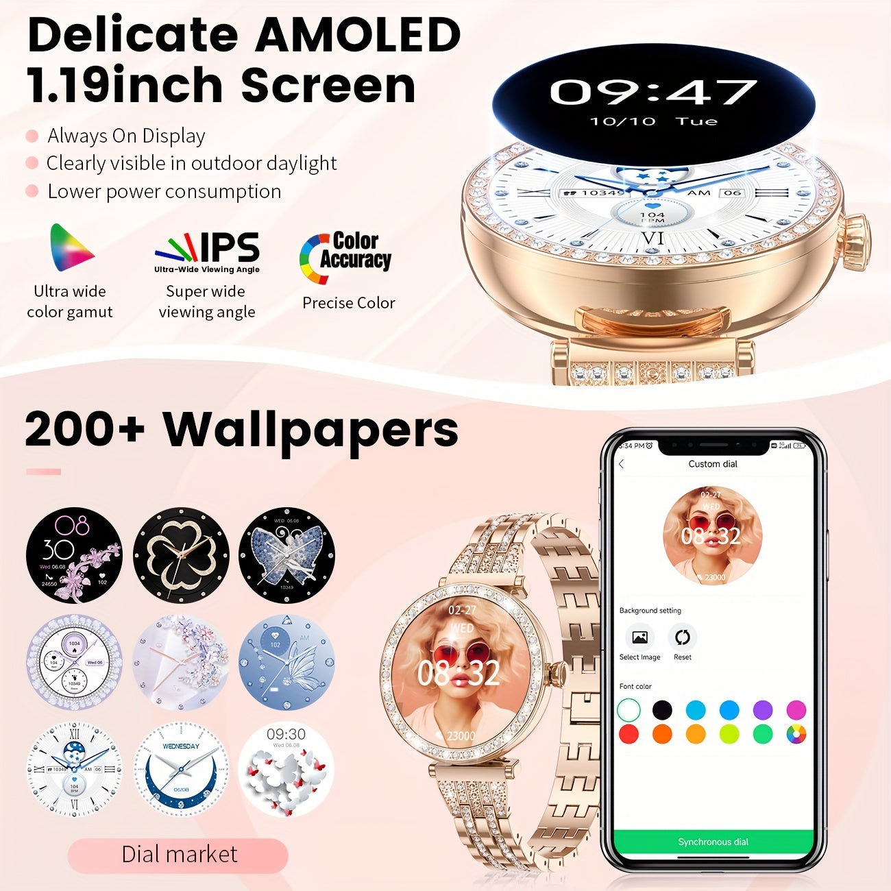 1.19'' HD AMOLED Screen Smartwatches for Women with Wireless Calling, Fitness Watch with 100+ Sports for iPhone for Android, Calorie Tracker Notifications, Rose Golden Silvery