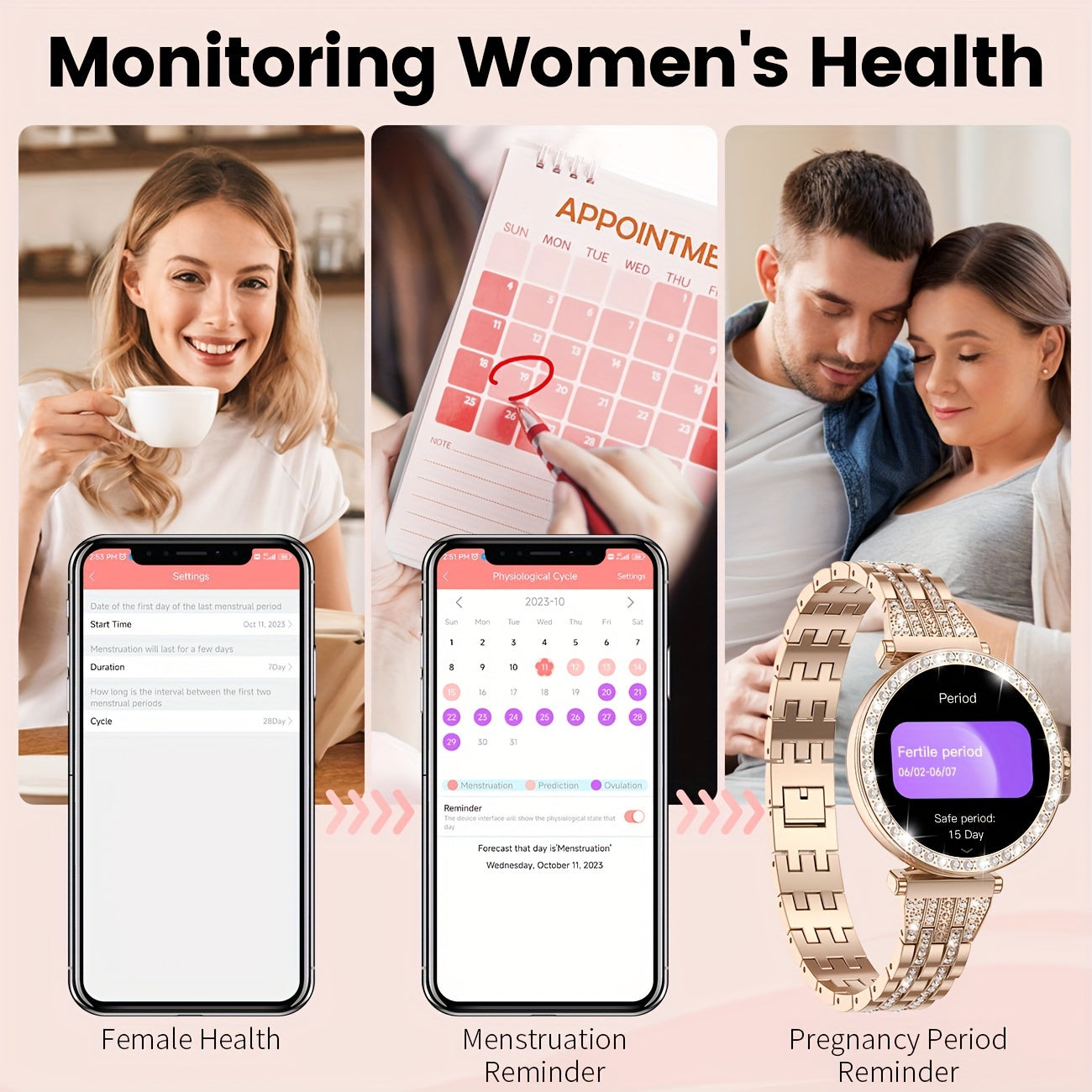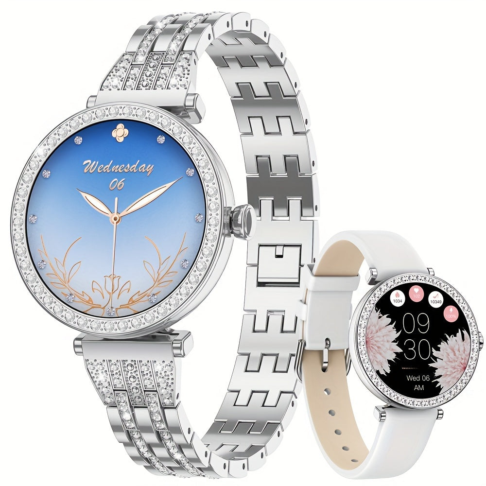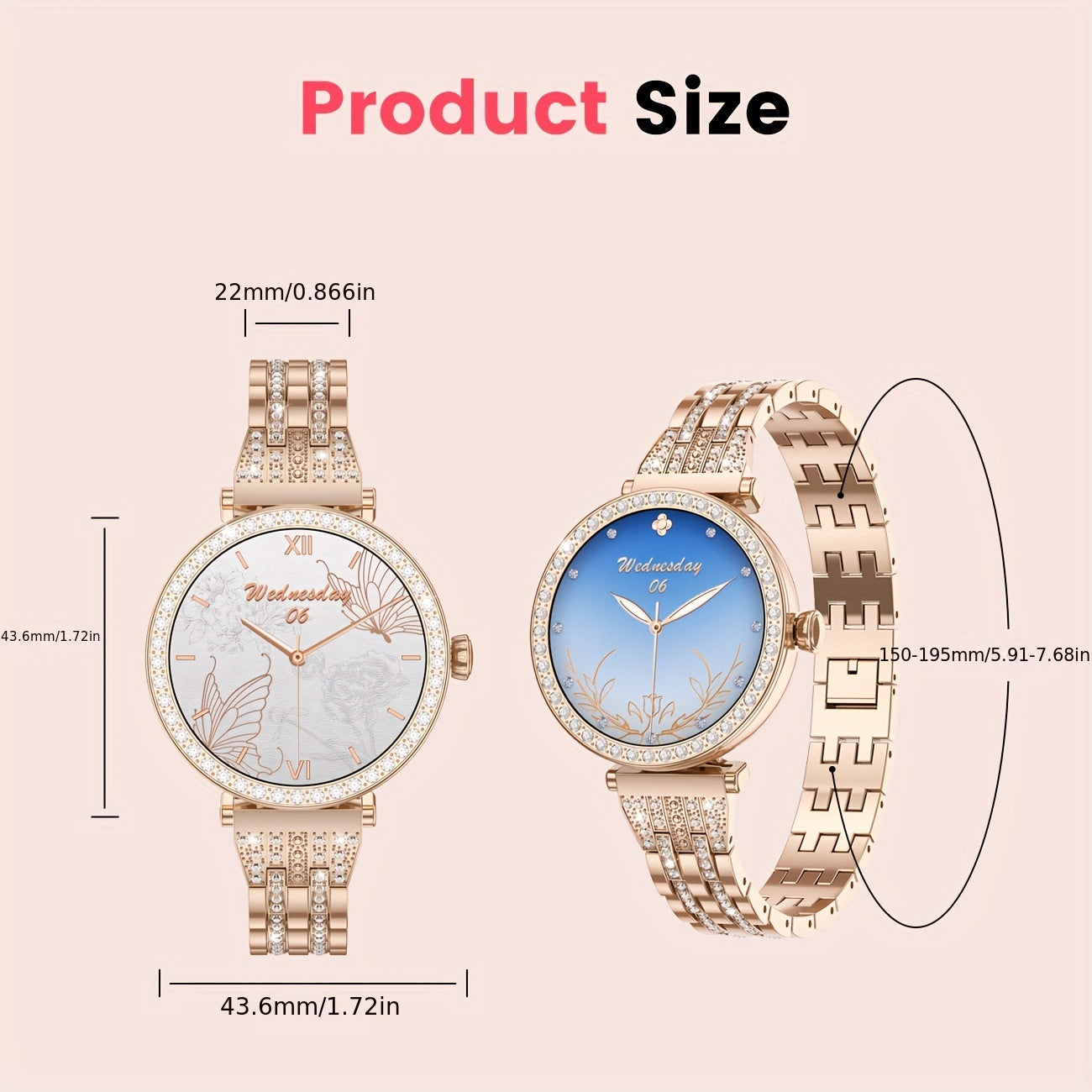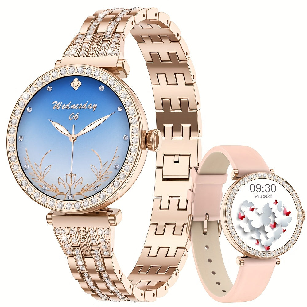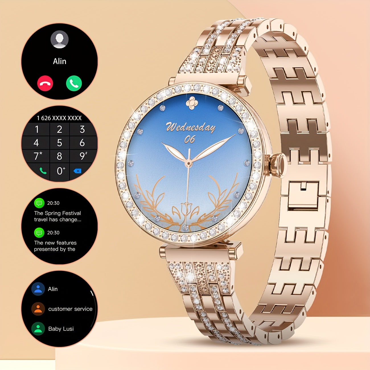 1.19'' HD AMOLED Screen Smartwatches for Women with Wireless Calling, Fitness Watch with 100+ Sports for iPhone for Android, Calorie Tracker Notifications, Rose Golden Silvery