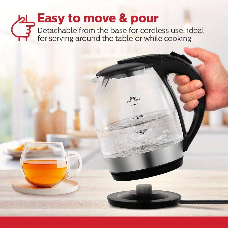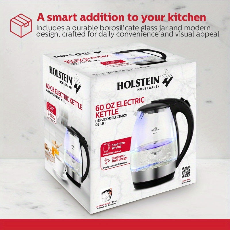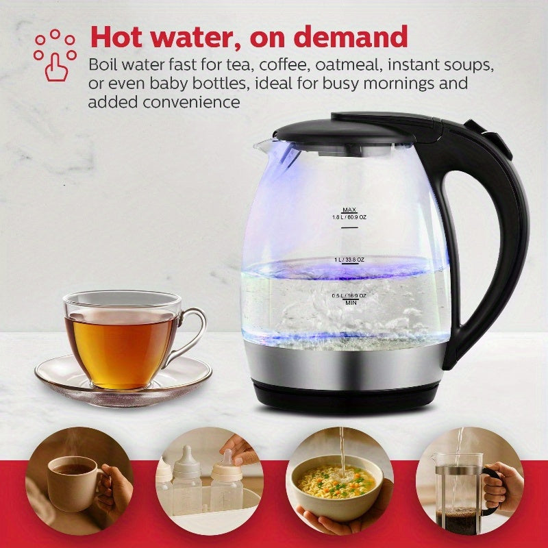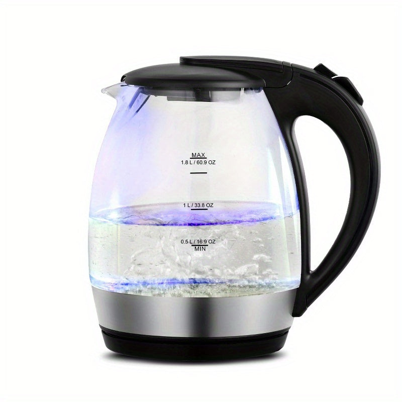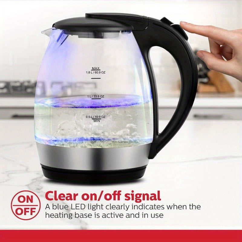 1.9qt Glass Water Tea Kettle with LED Indicator & 1850W Fast Boiling - Borosilicate Glass, BPA-Free, Auto Shut-Off, Keep Warm Function, Boil-Dry Protection, Stovetop Compatible for Gas/Electric Stoves, Modern Kitchen Appliance with Ergonomic Handle & Spil