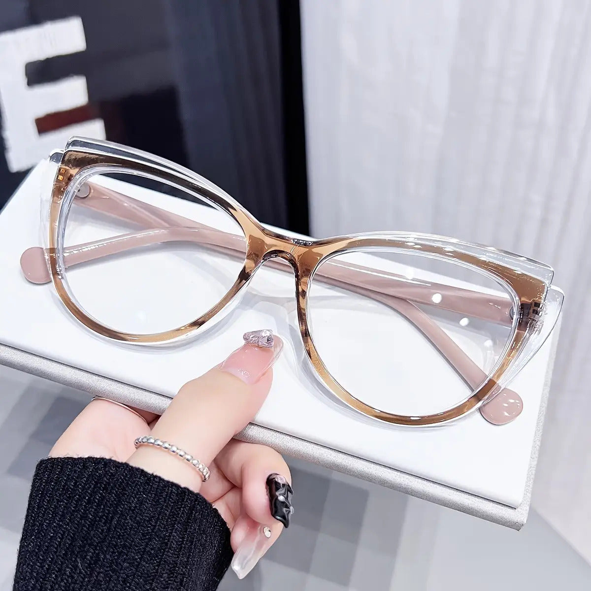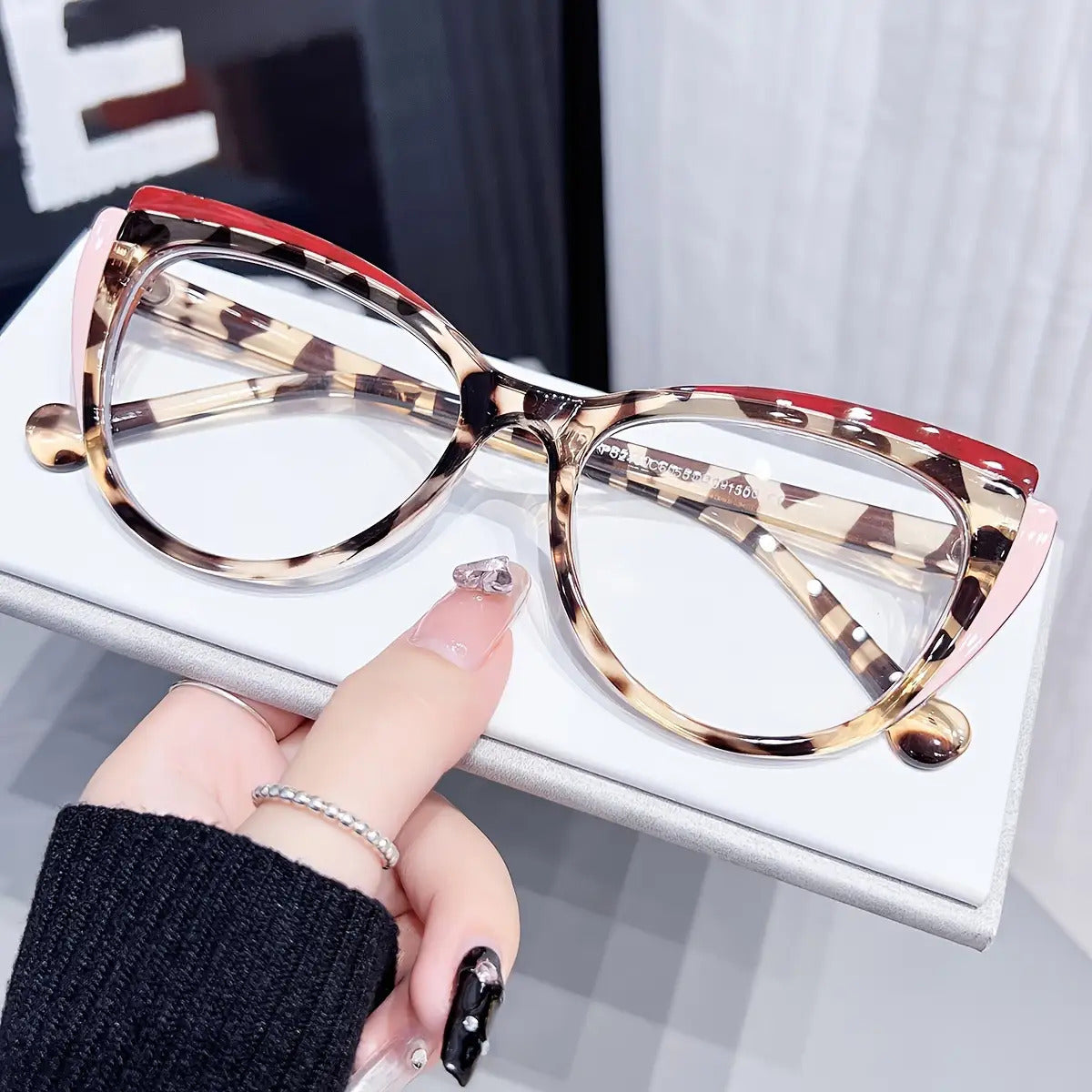 1 Pair Anti-Bluelight Computer Glasses - Y2K Cat Eye Frames with Pink & Turquoise Color Block, Anti-Fog Cloth - Non-Prescription Glasses for Women & Men, Office, Gaming, Parties - Lightweight Durable Eyewear, Party Essentials, Trendy Frames, Highquality L