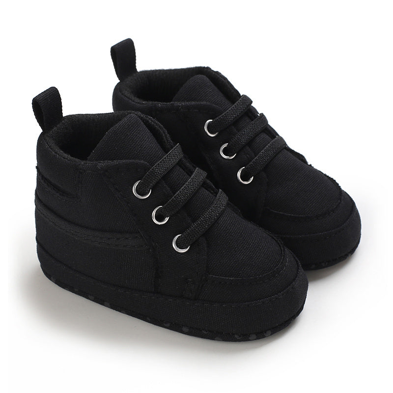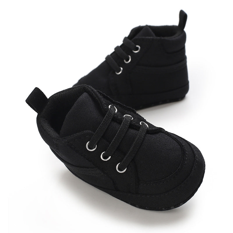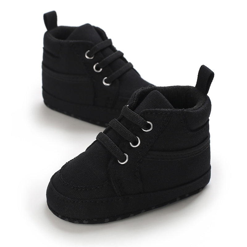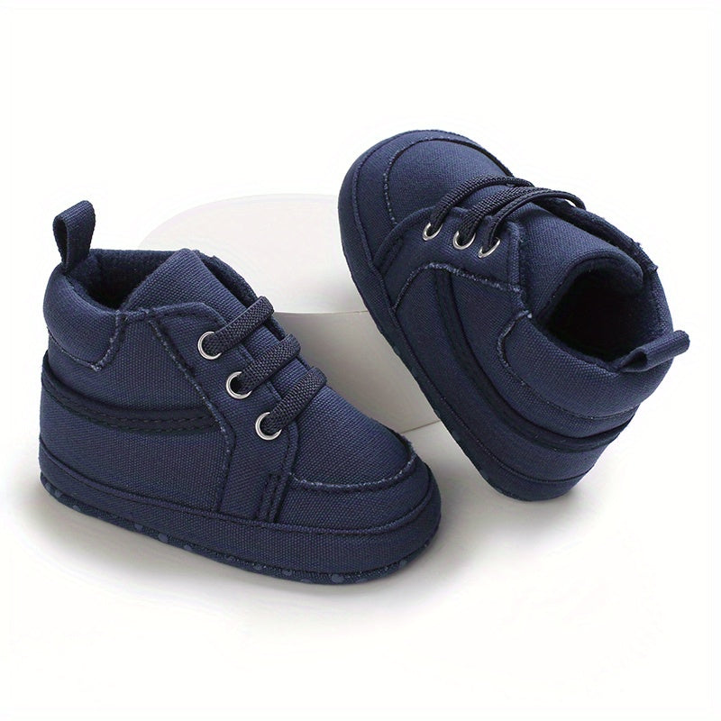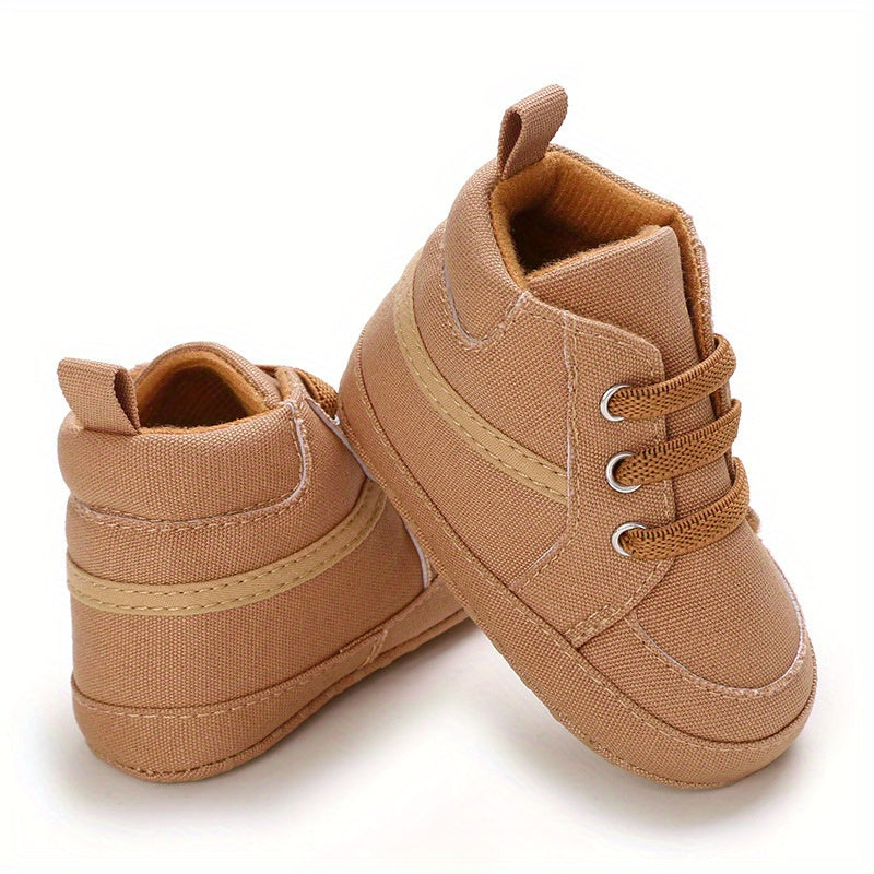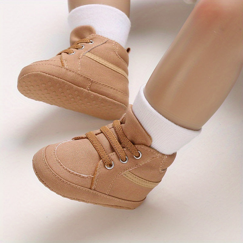 1 Pair High-Top Infant Sneakers - Solid Color Sports Style with Lace-Up Closure, Non-Slip Fabric Sole, Casual Walking Shoes for Baby Boys and Girls