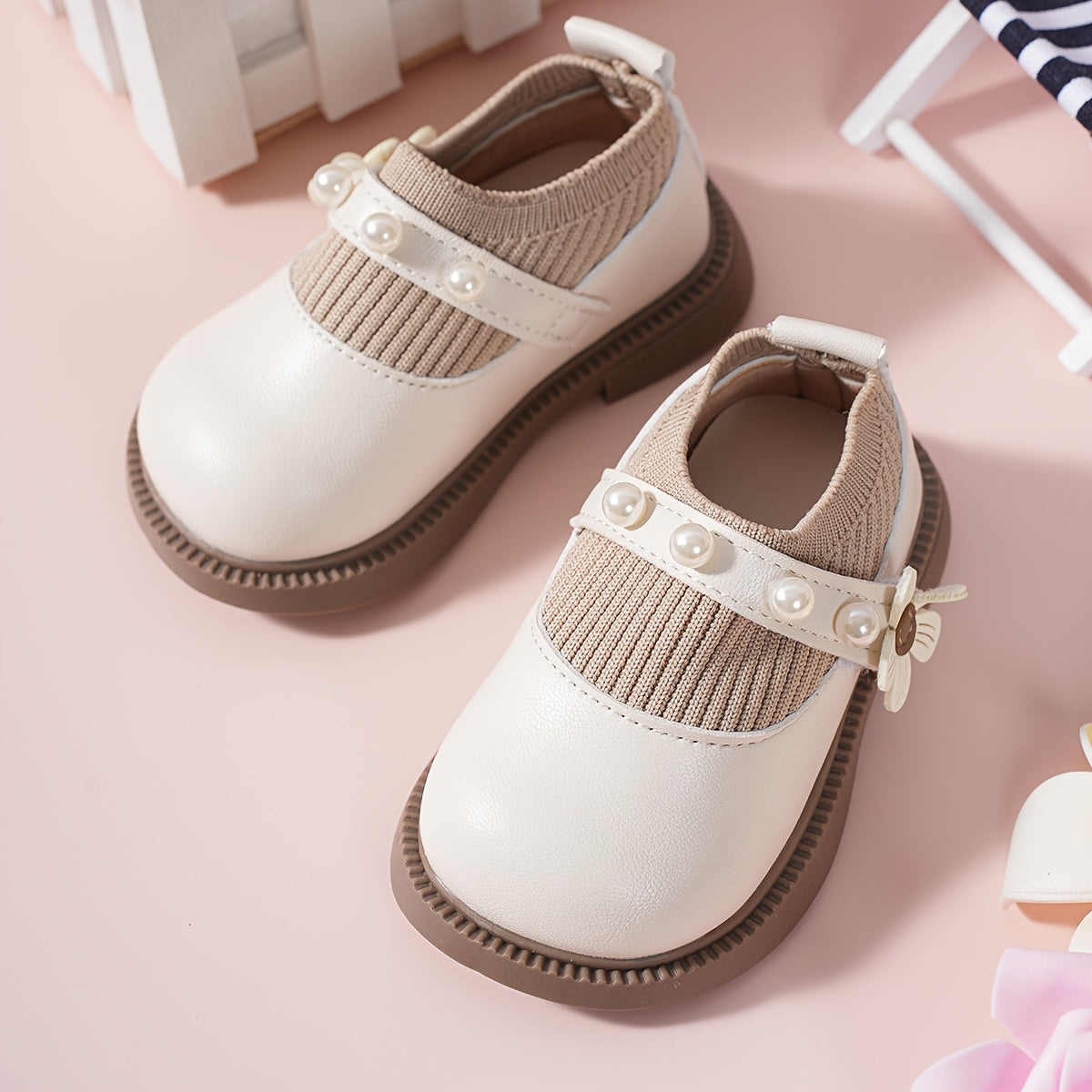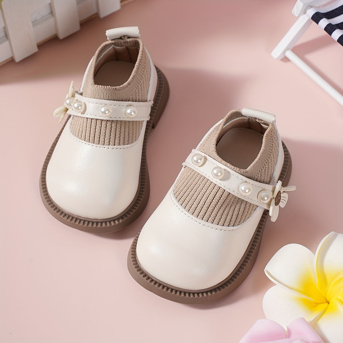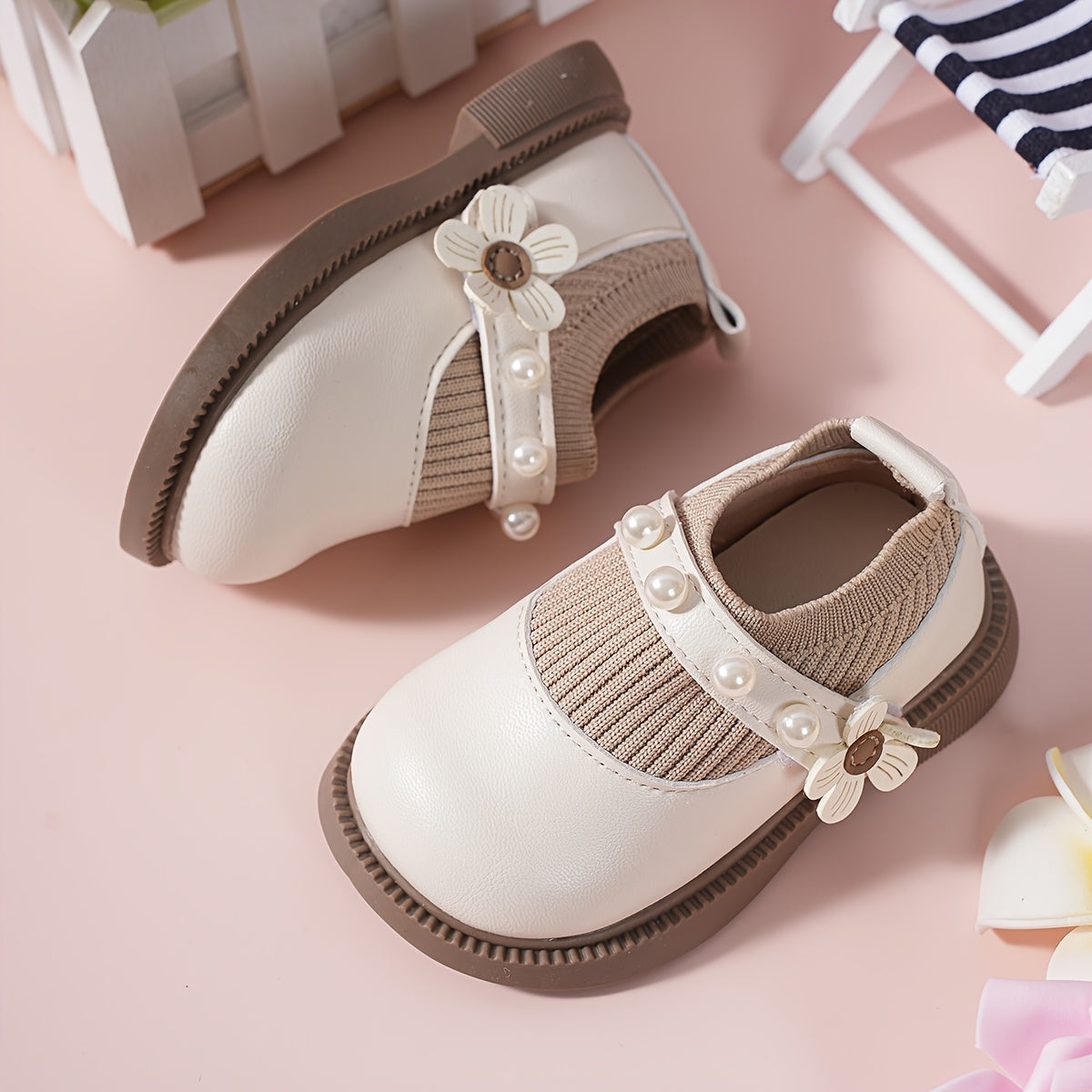 1 Pair of Beautiful, Fashionable, Four Seasons Baby Shoes with Flower Beads, with, One-Step Princess Flat Shoes