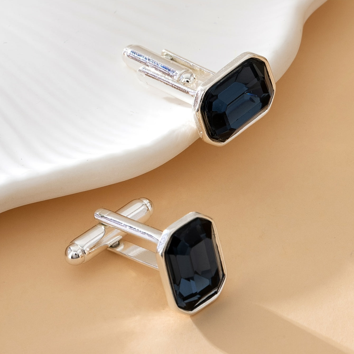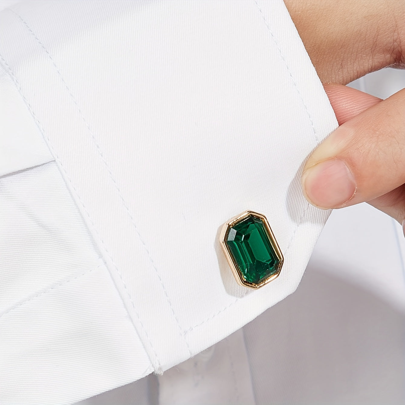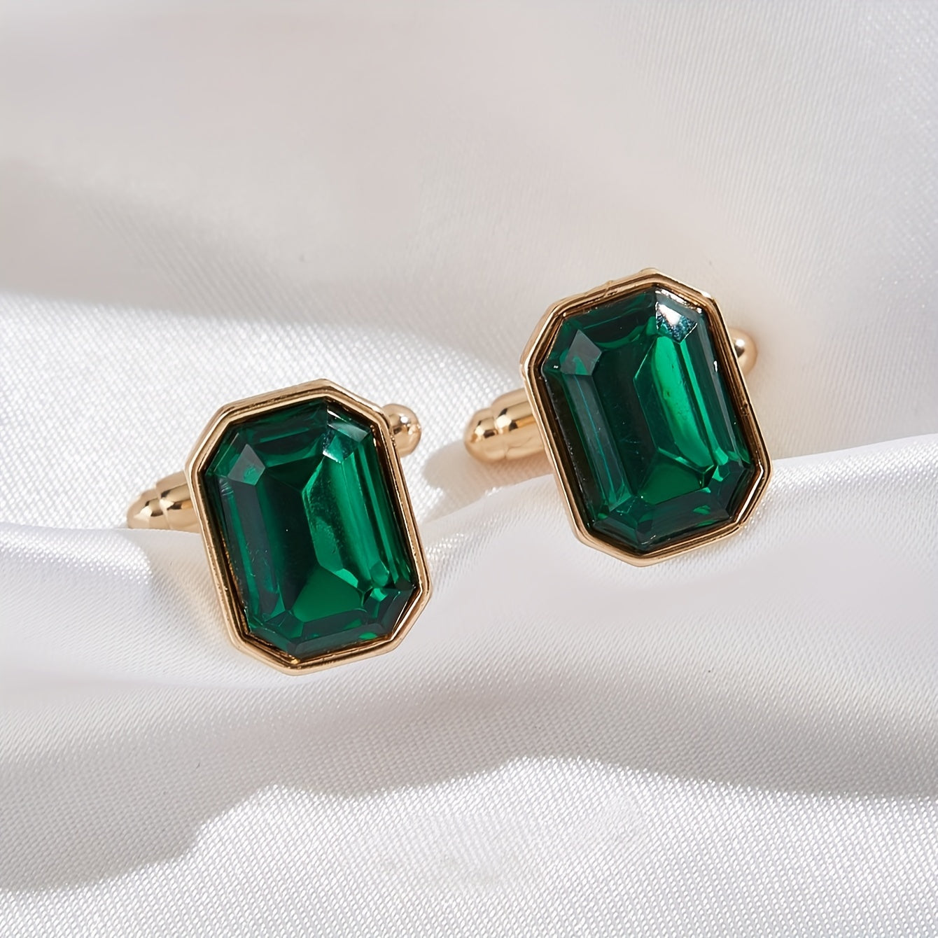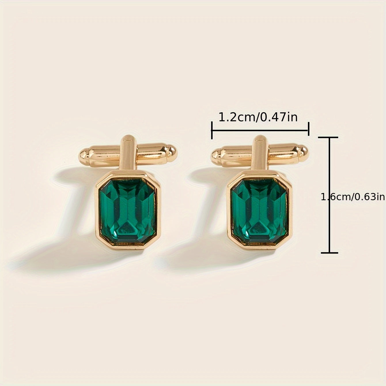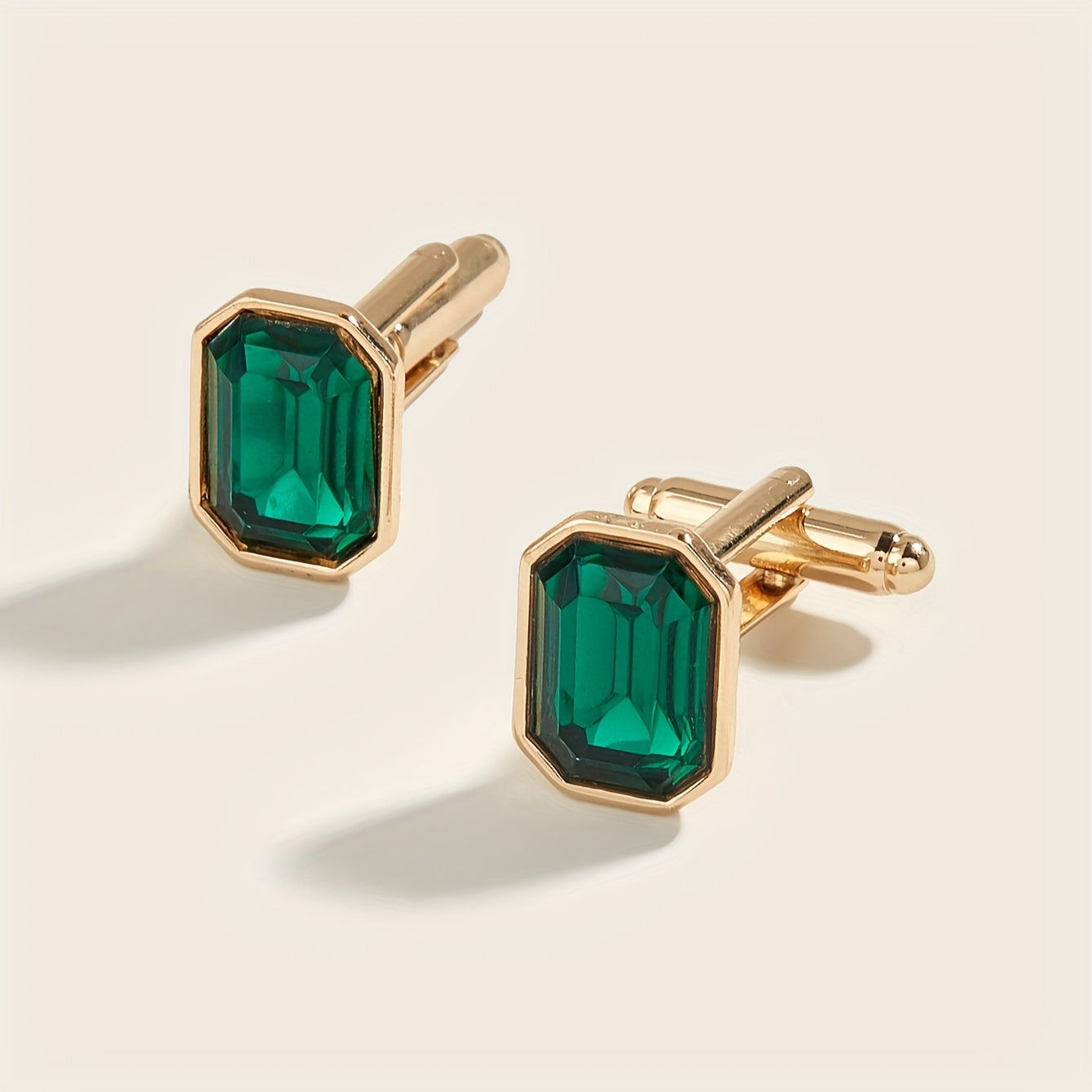 1 Pair of Elegant Men's Cufflinks with Emerald Green Gemstone Inlay - Golden-Tone Zinc Alloy, Ideal for Business & Daily Wear
