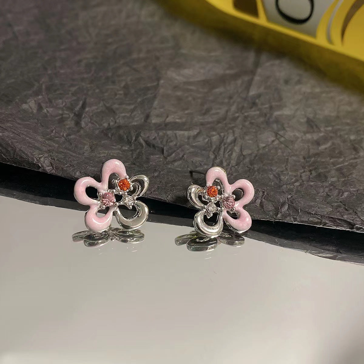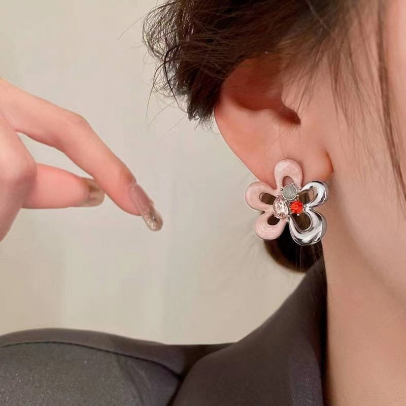 1 pair of fashionable temperament new style Silvery needle inlaid with dripping oil hollow flower earrings niche fashion earrings for women fresh and sweet earrings party banquet festival versatile earrings, Fancy Earrings for Women, Simple Elegant Minima
