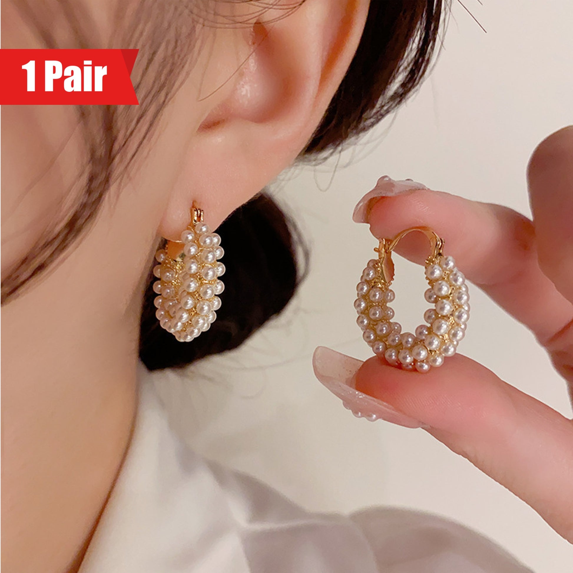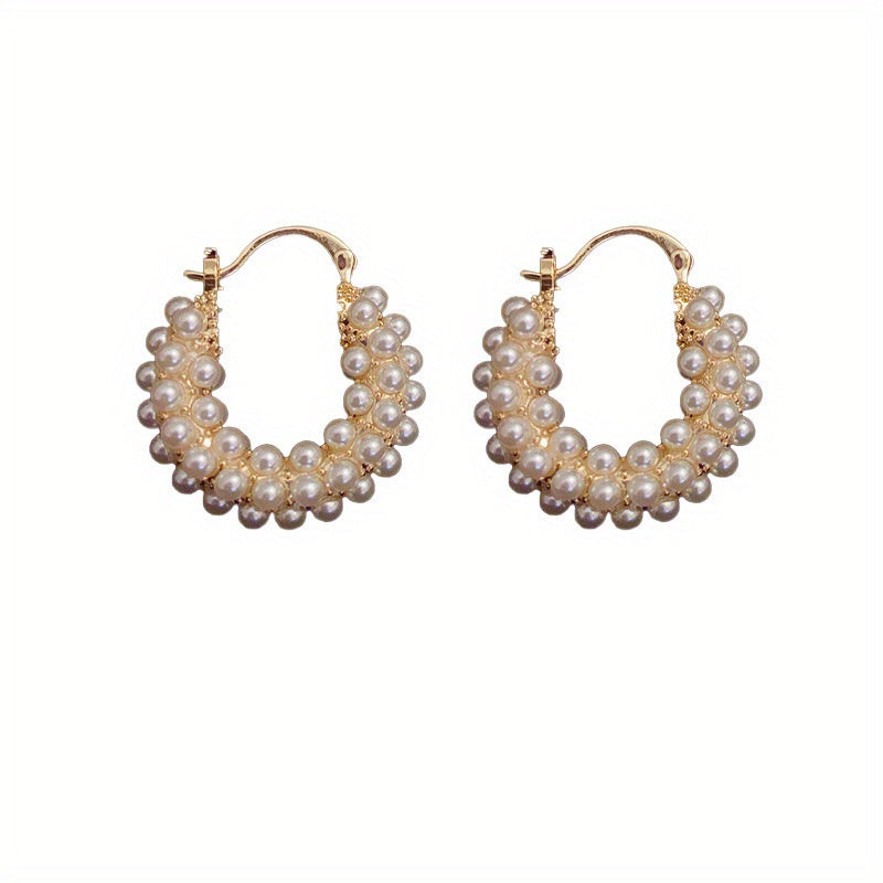 1 Pair of French Elegant Luxury Style Inlaid with Imitation Pearl Earrings, French Retro Rings, Earrings, Hooked Earrings, Jewelry Gifts, Banquets, Weddings