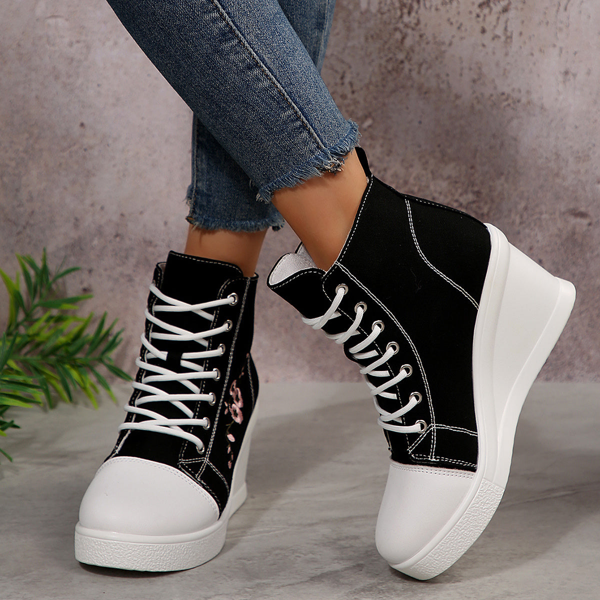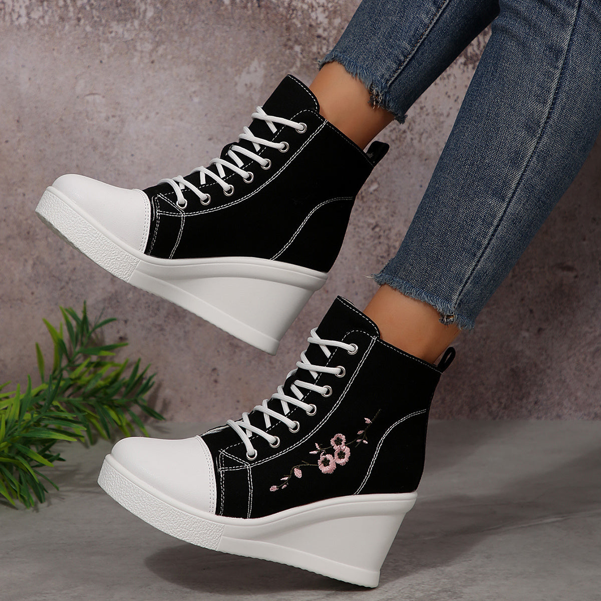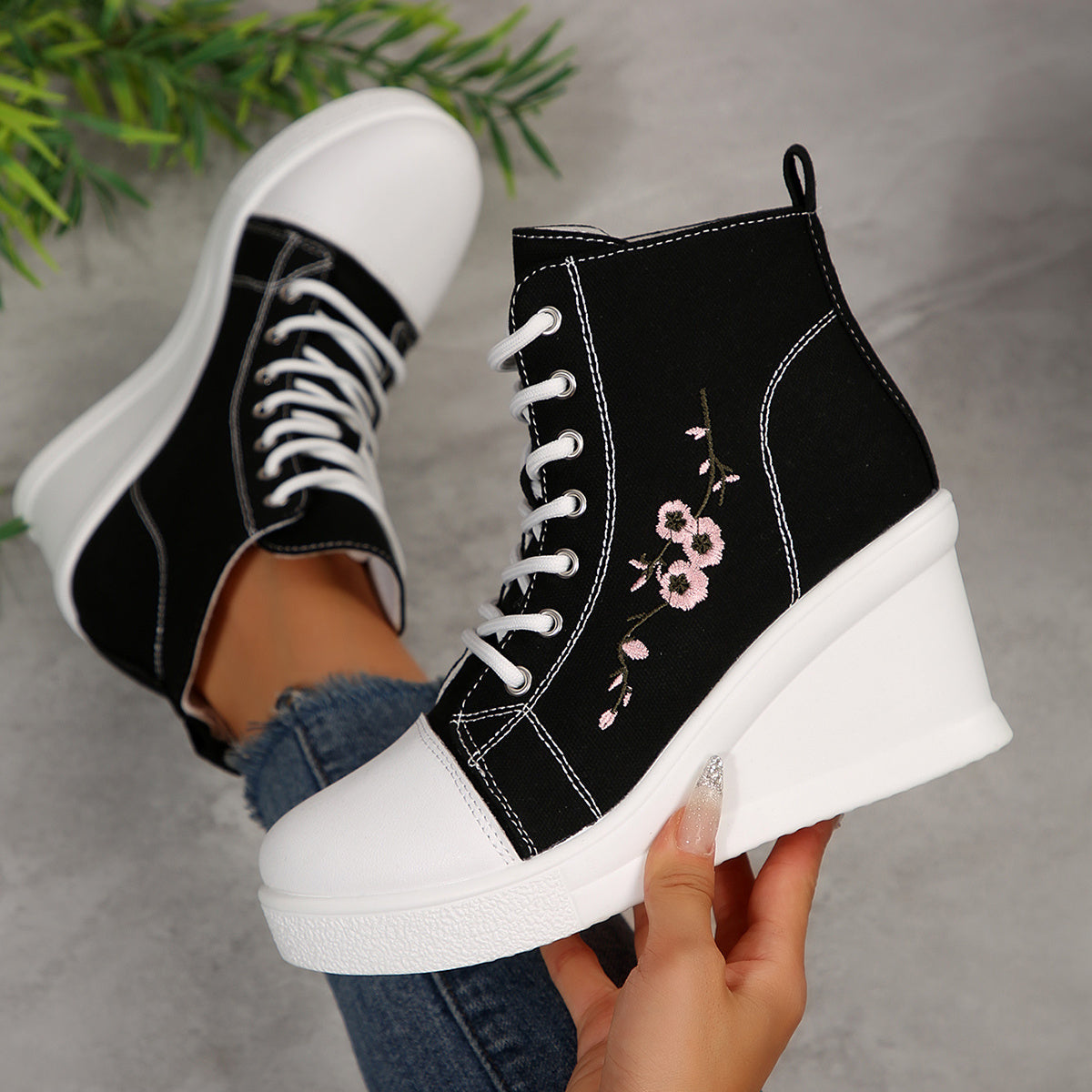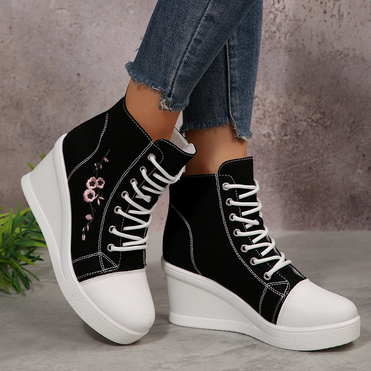 1 Pair of New Stylish and Elegant Thick-Soled Lace-Up Floral Embroidered Casual Sports Shoes with Anti-Slip Design for All Seasons, Suitable for Women