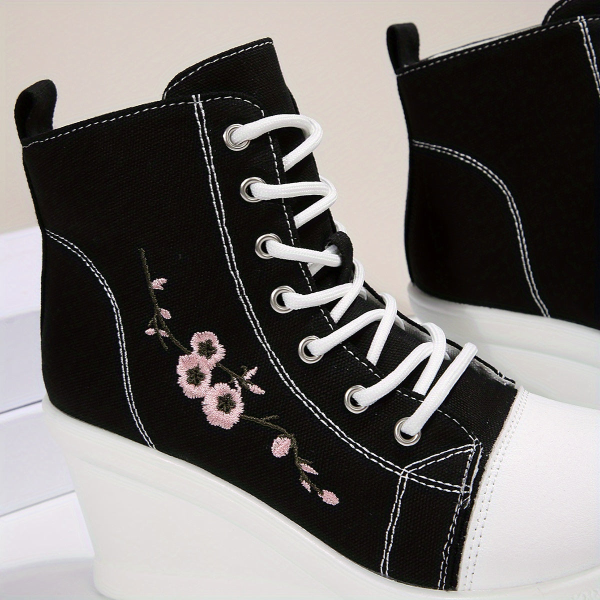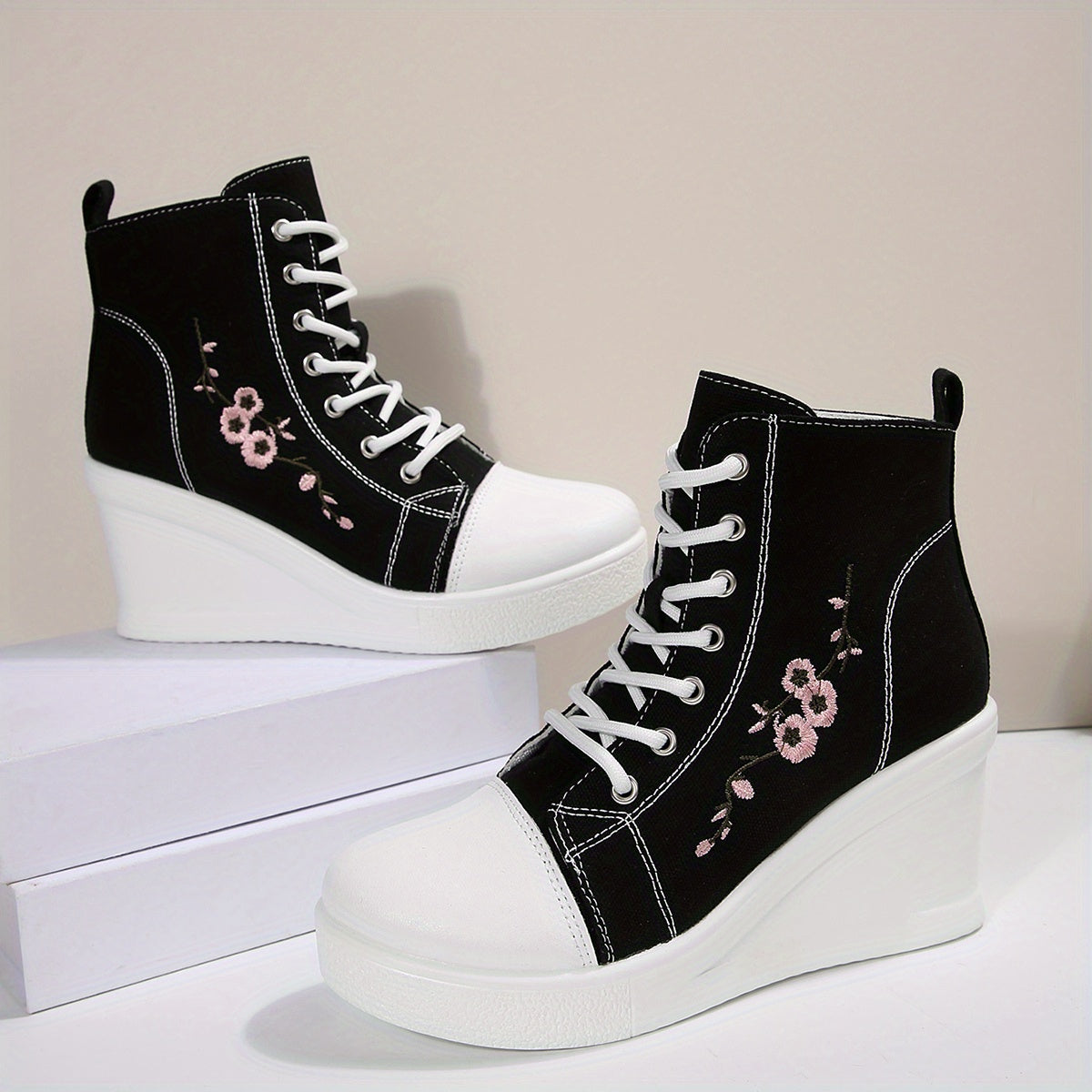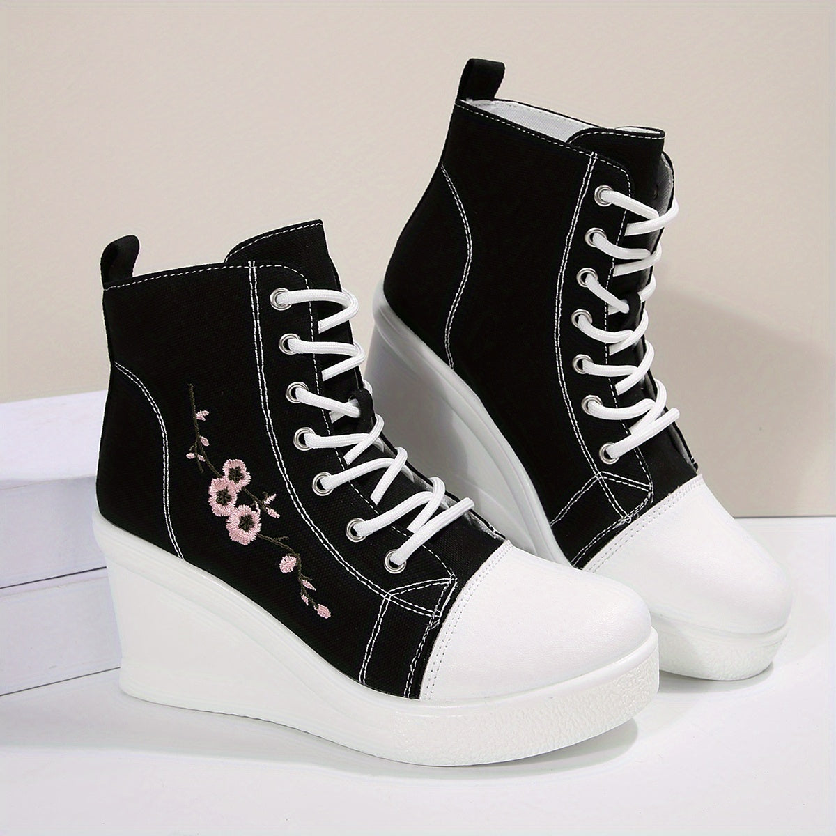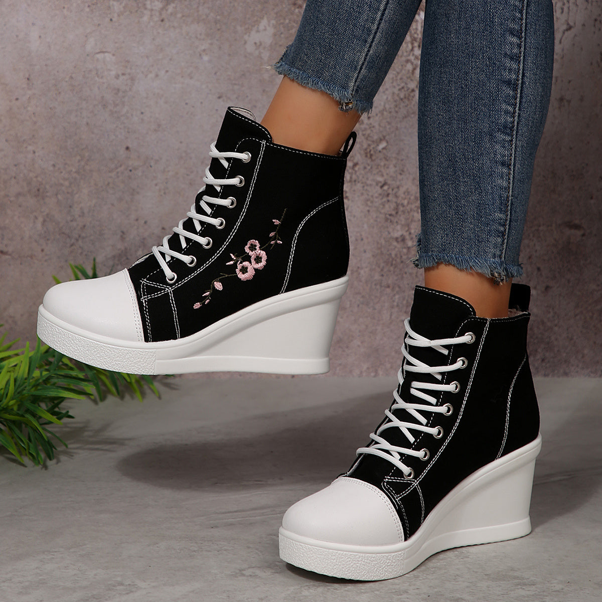 1 Pair of New Stylish and Elegant Thick-Soled Lace-Up Floral Embroidered Casual Sports Shoes with Anti-Slip Design for All Seasons, Suitable for Women
