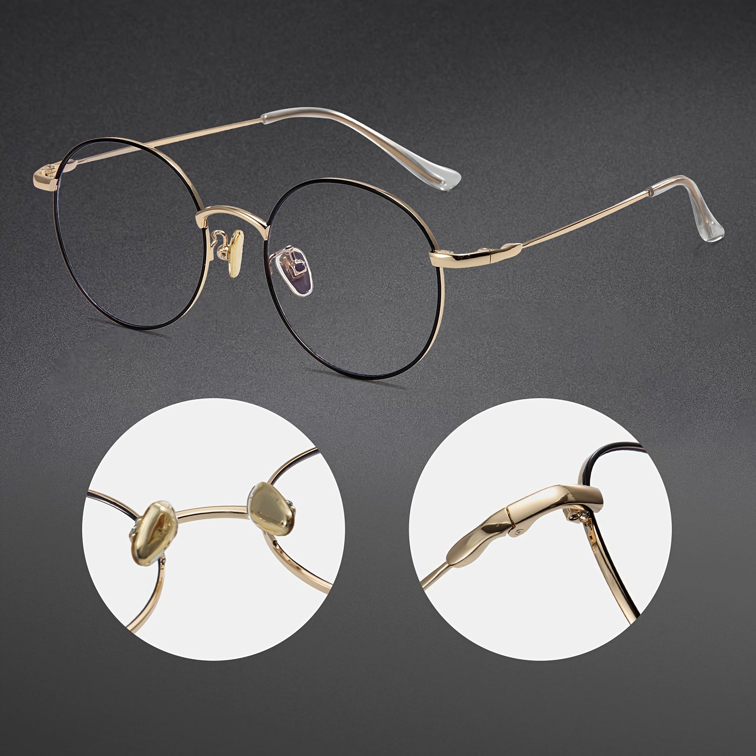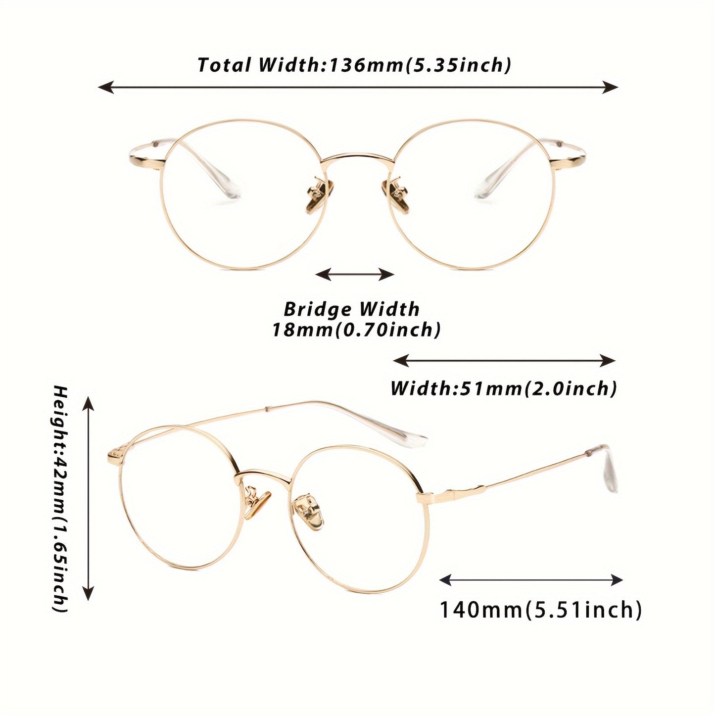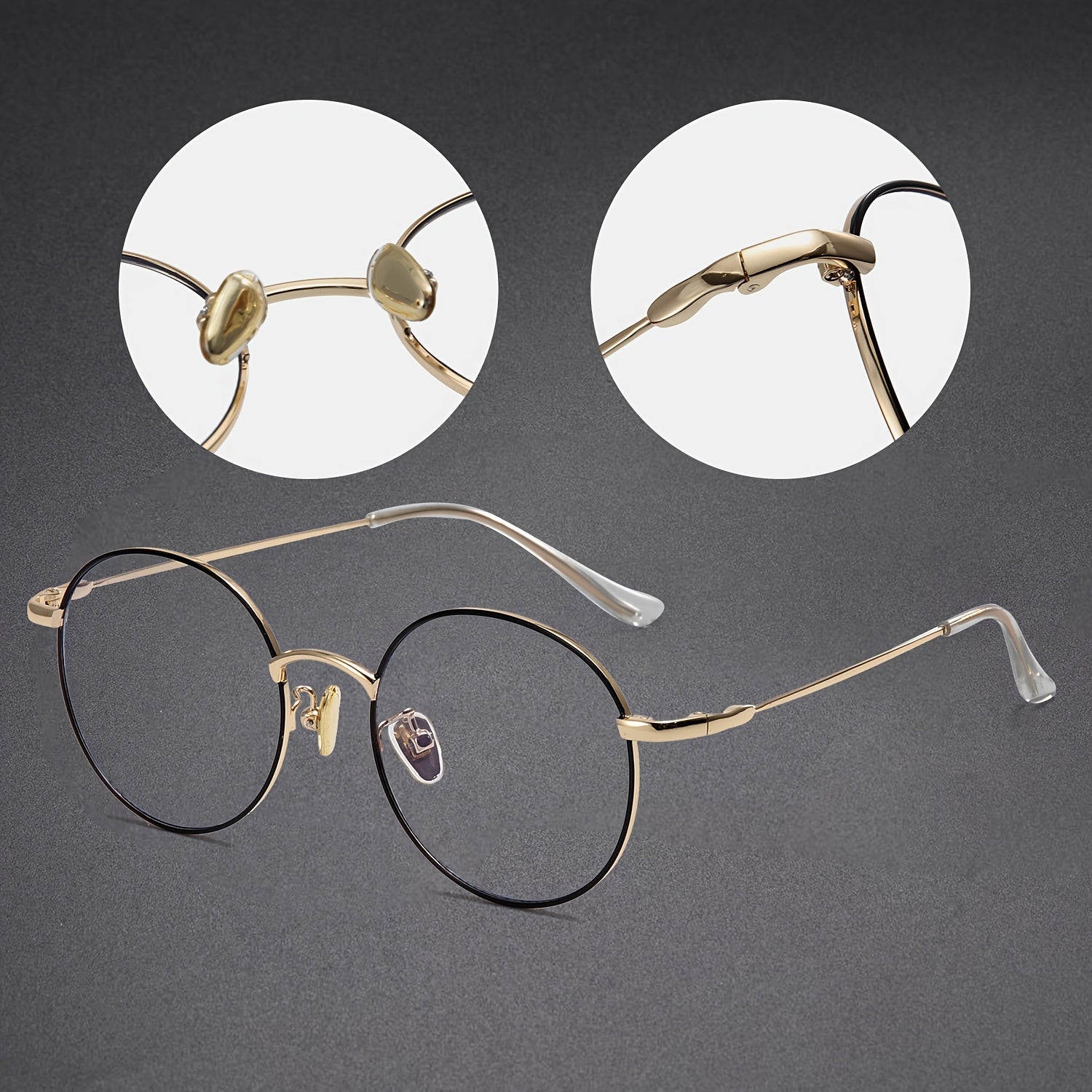 1 Pair Round Metal Eyeglass Frames - Minimalist Chic Full-Rim Round Glasses, Lightweight Metal Frame with Non-Prescription Lenses, Everyday & Formal Eyewear for Women/Men, Office, Streetwear, Photoshoots - Includes Cleaning Cloth - Japanese/Korean Inspire