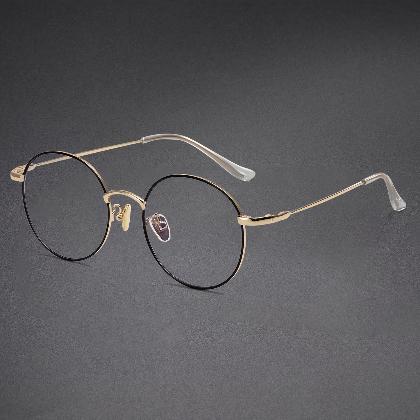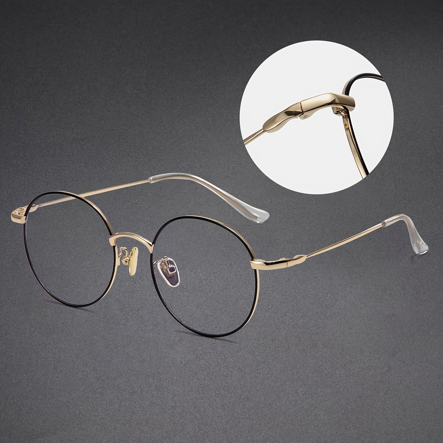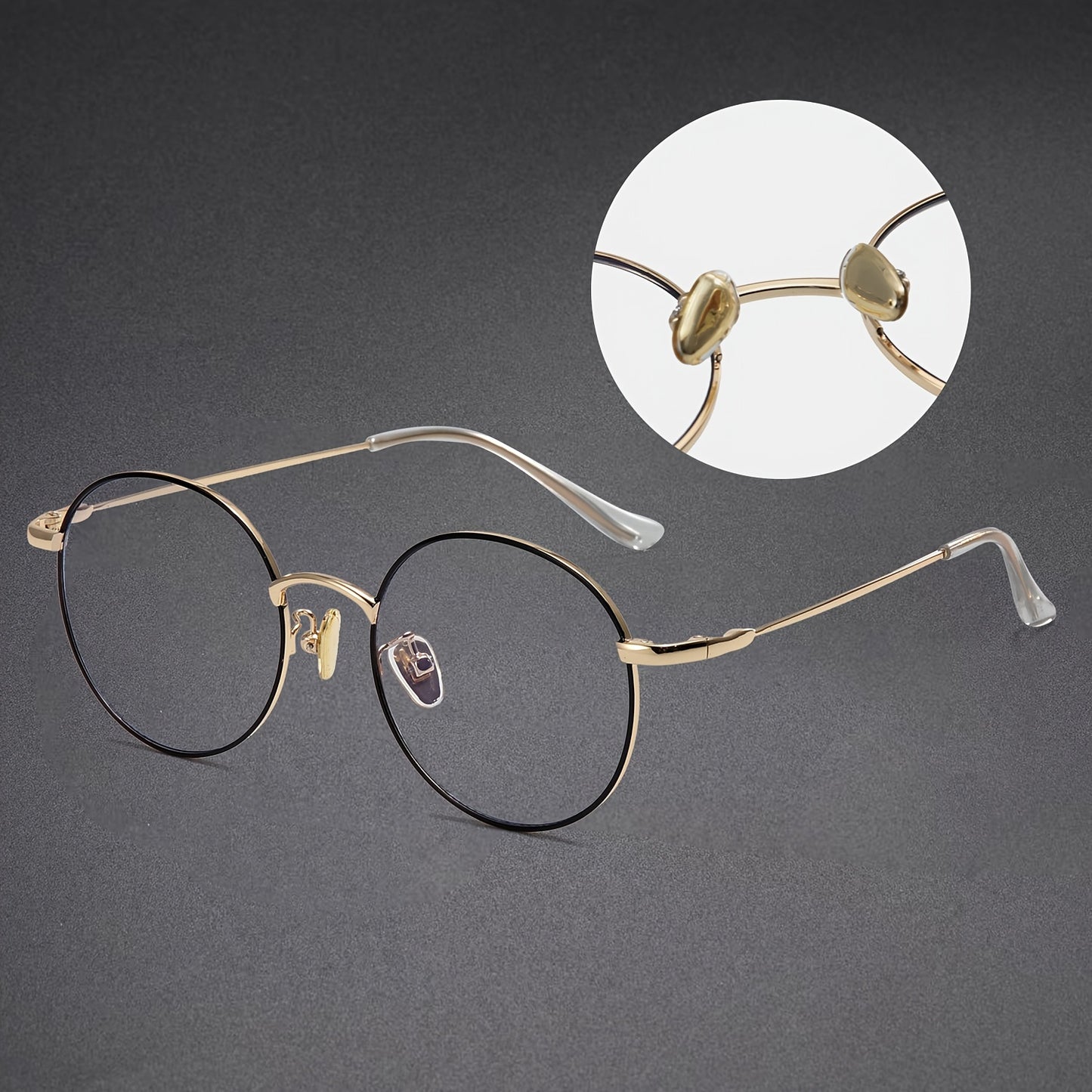 1 Pair Round Metal Eyeglass Frames - Minimalist Chic Full-Rim Round Glasses, Lightweight Metal Frame with Non-Prescription Lenses, Everyday & Formal Eyewear for Women/Men, Office, Streetwear, Photoshoots - Includes Cleaning Cloth - Japanese/Korean Inspire