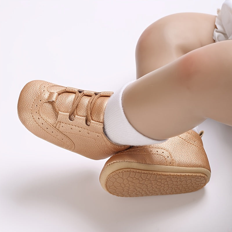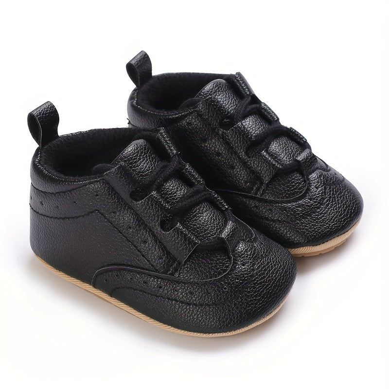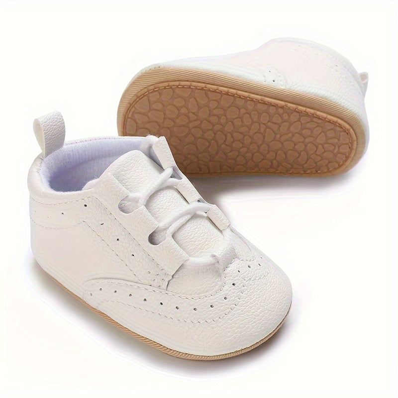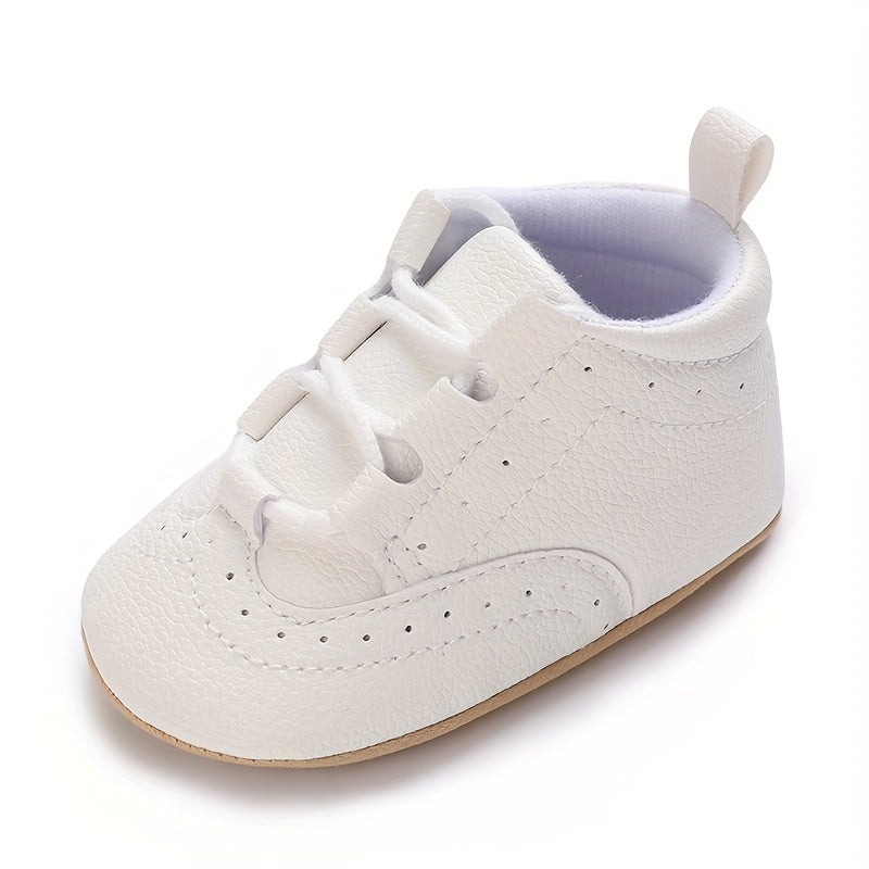 1 Pair Toddler Fashion Sneakers, All-Season Solid Color Lace-Up Walking Shoes, Non-Slip PU Upper, Breathable Fabric Inner, Rubber Sole, Comfortable Insole for Boys & Girls