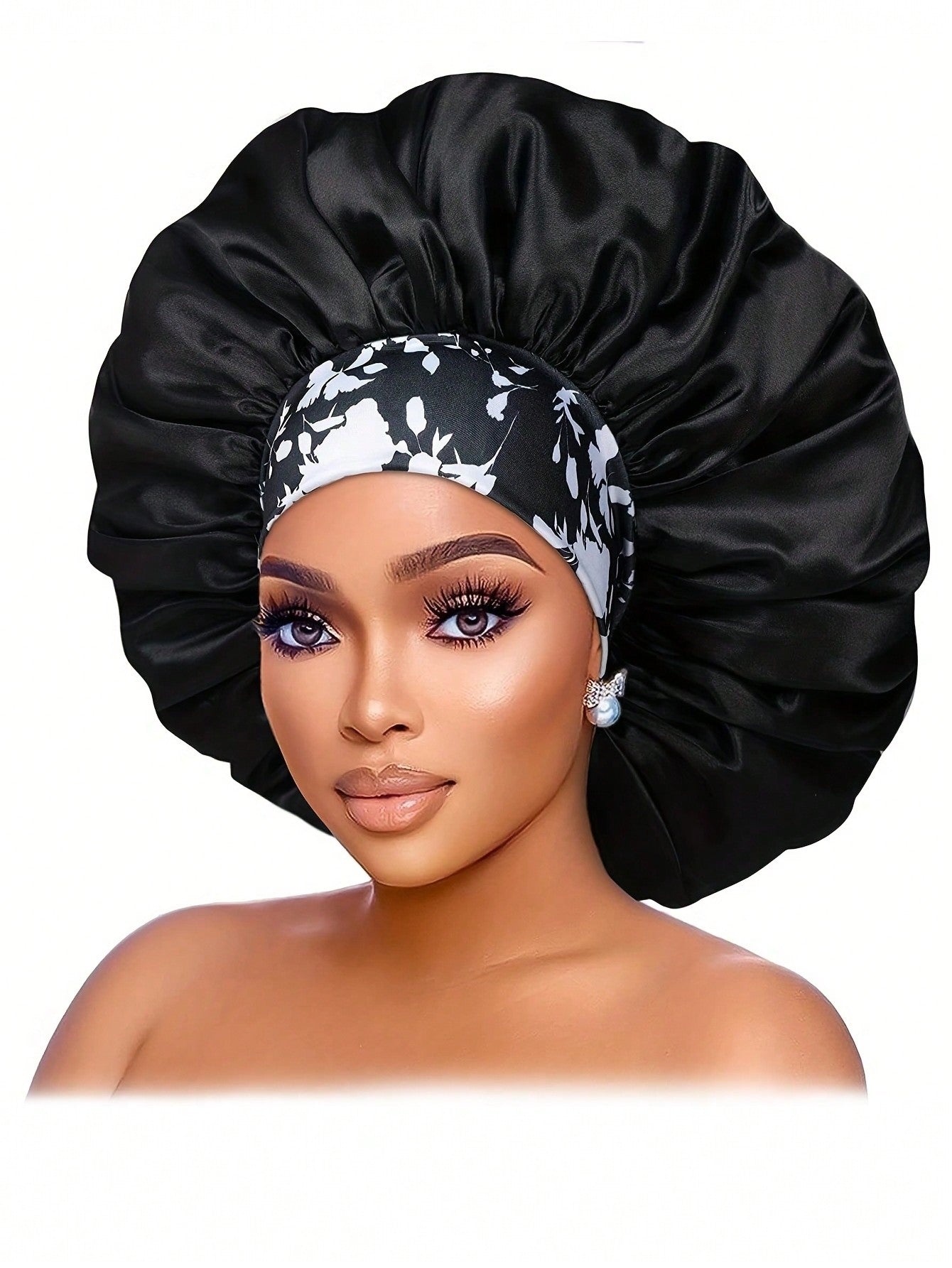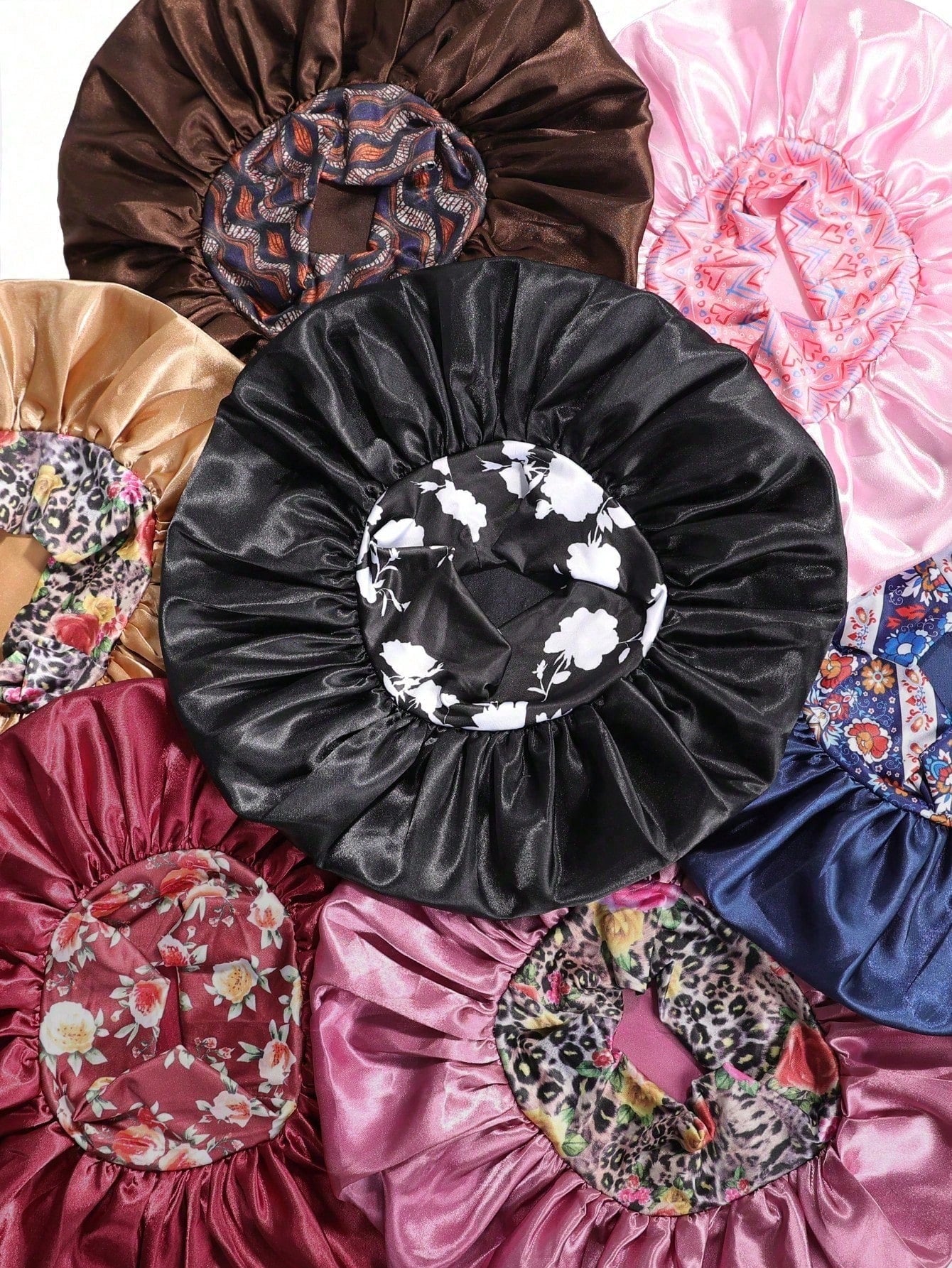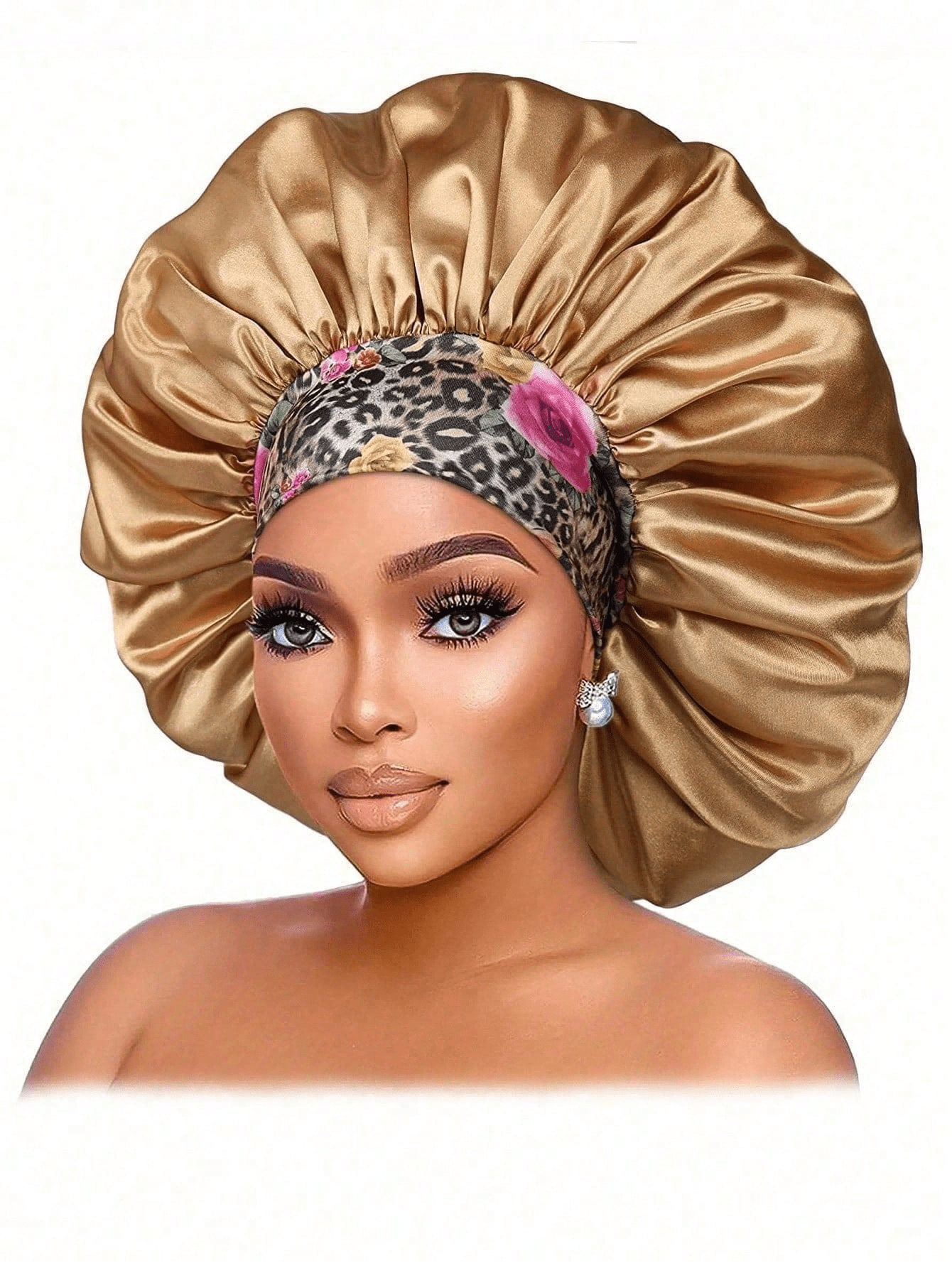 1 Pc Women's Wide Brimmed Printed Adjustable Bonnet Hat, Suitable For Curly Or Straight Hair