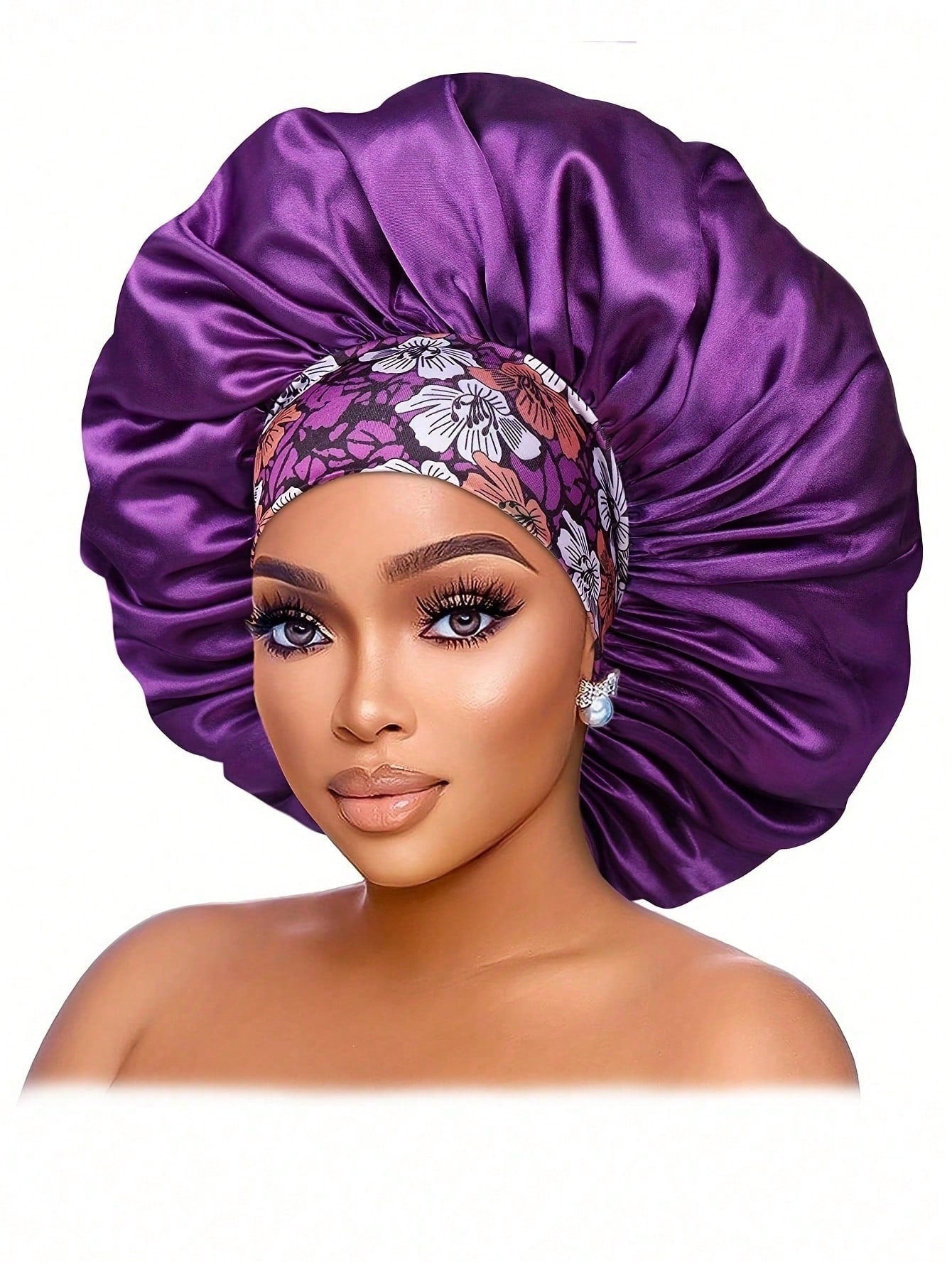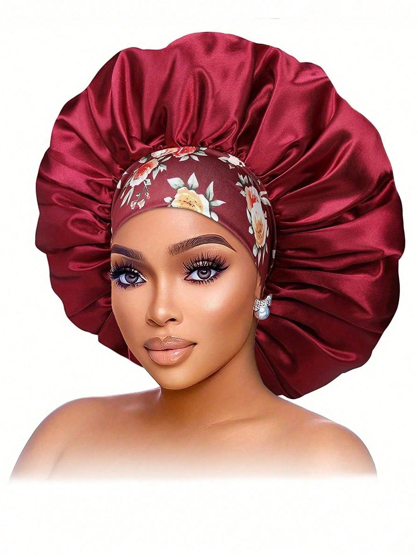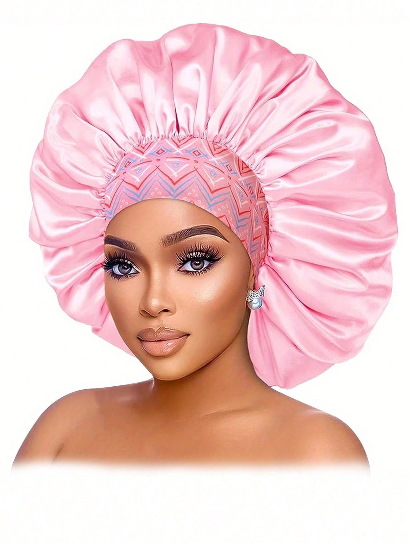 1 Pc Women's Wide Brimmed Printed Adjustable Bonnet Hat, Suitable For Curly Or Straight Hair