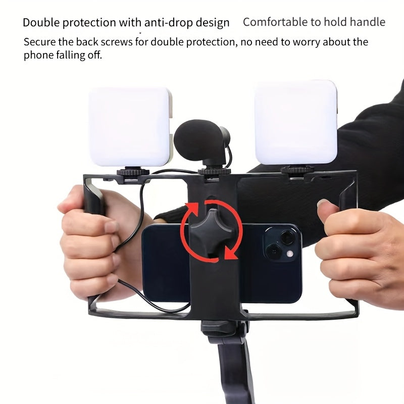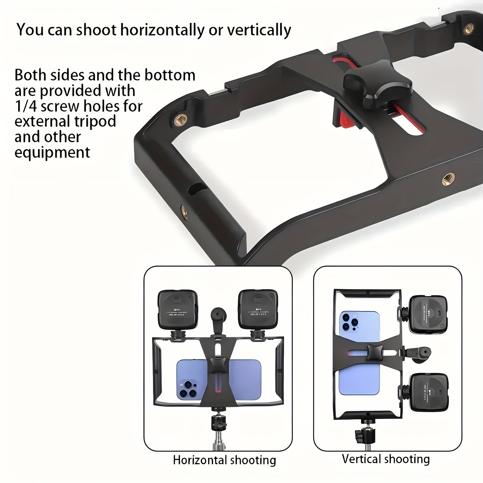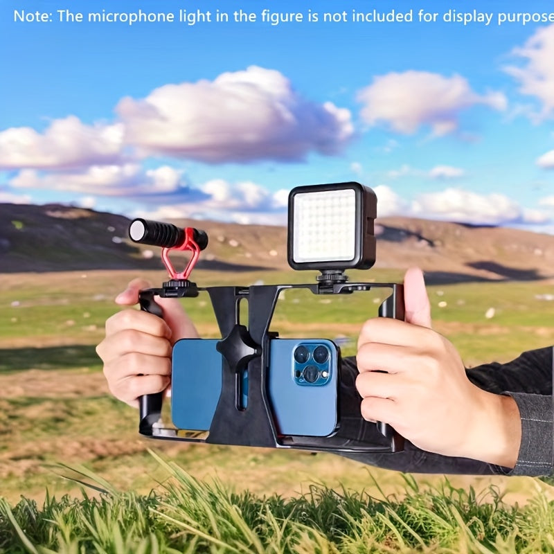 1 pièce Support Universel pour Téléphone Portable à Rotation, Porte-Micro pour Diffusion en Direct, Trépied avec Trois Ports d'Extension Cold Shoe et Multiples Ports 1/4, Compatibilité avec la Plupart des Téléphones, Base Hot Shoe