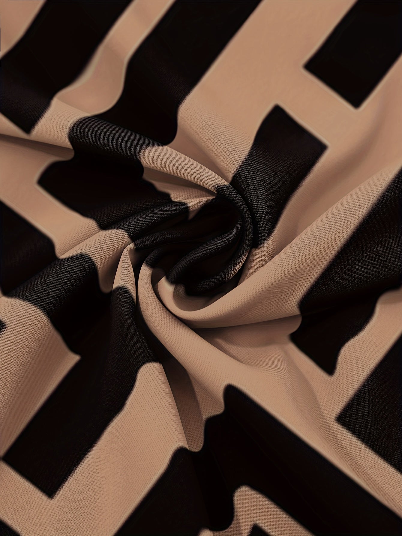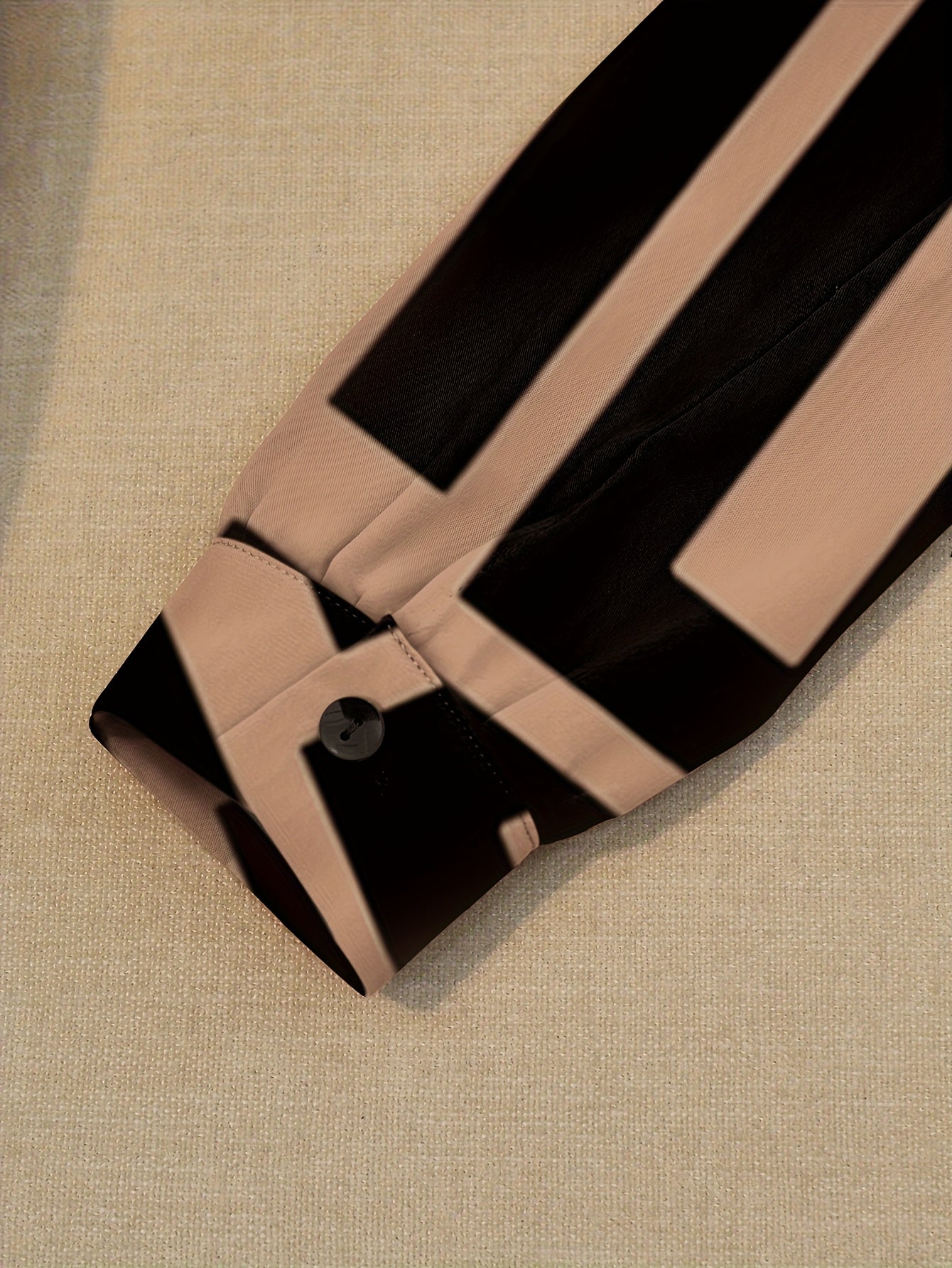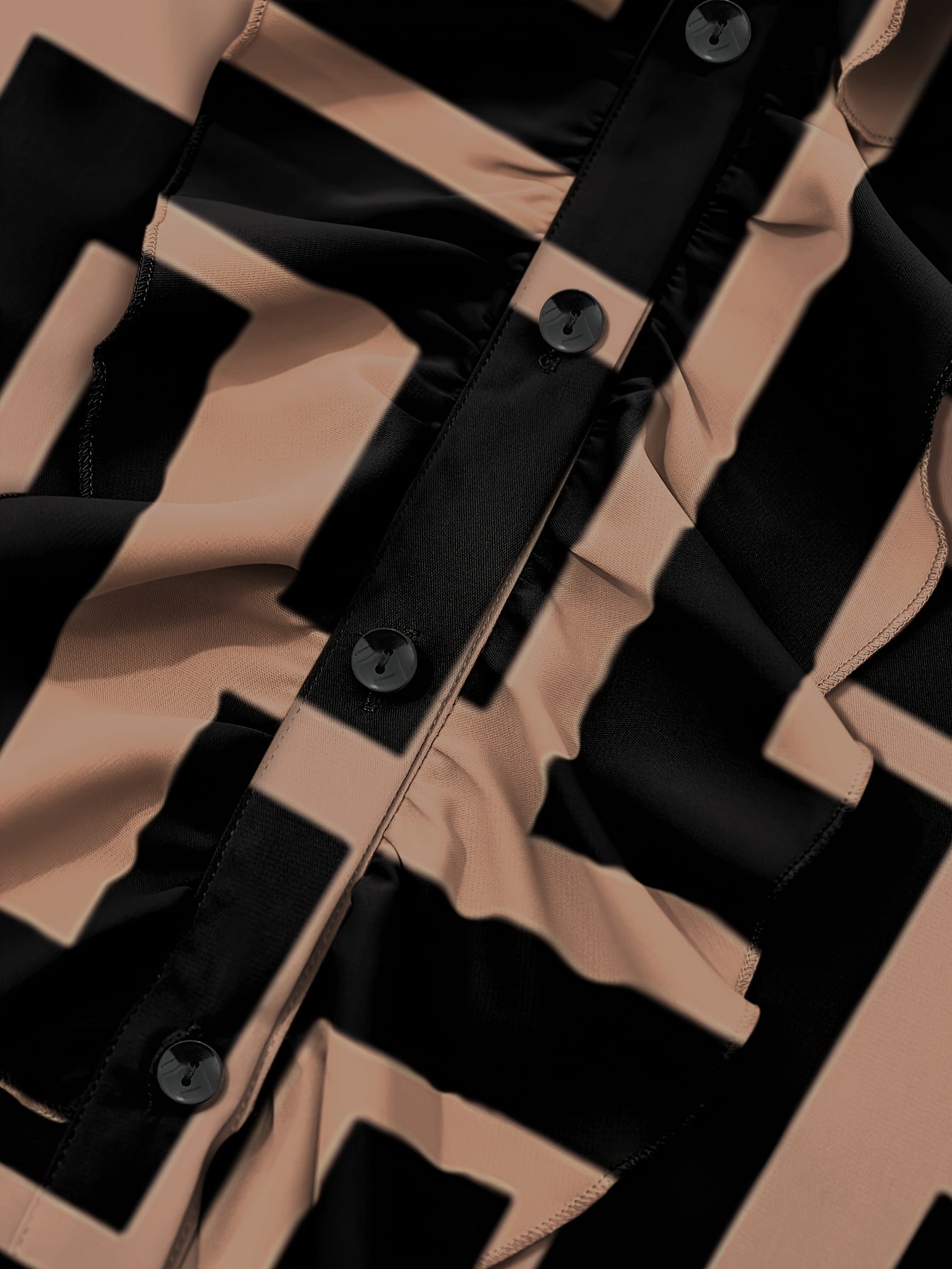 100% Polyester Long Sleeve Elegant Geometric-Pattern Ruffle Stand Collar Blouse - Shirt for Women