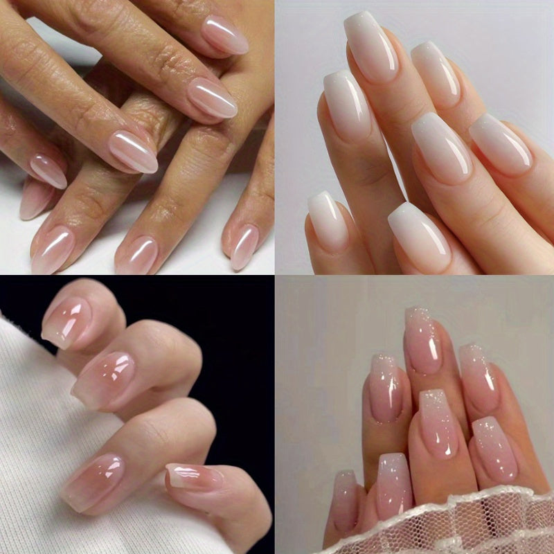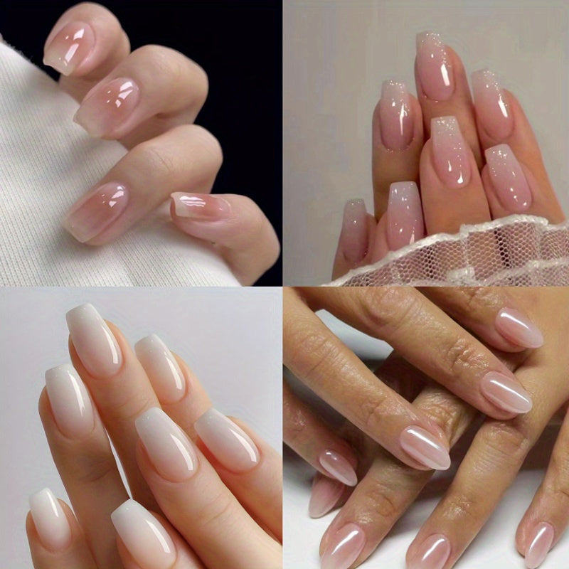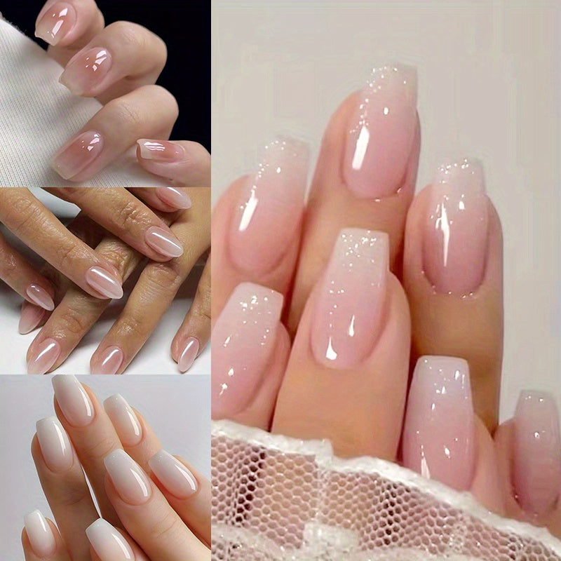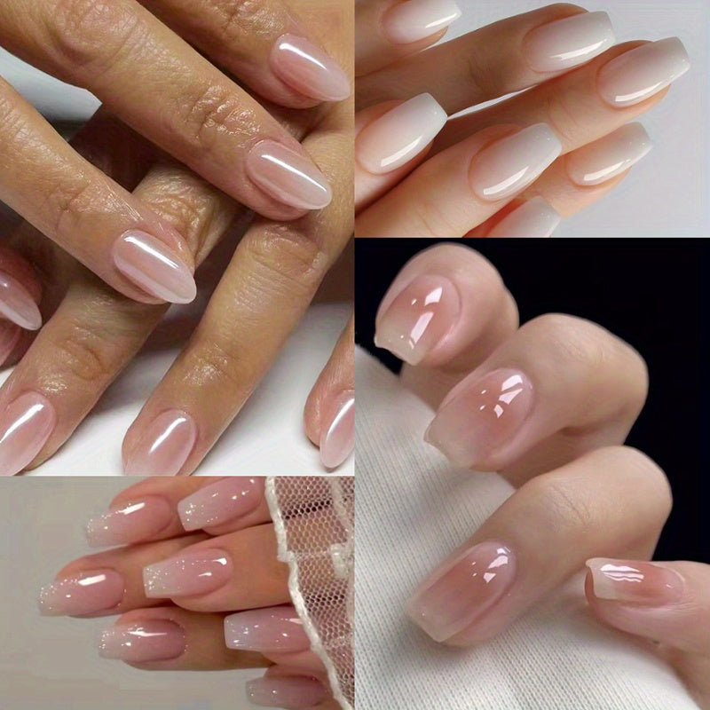 102 pieces of wear nail, solid color wear Nail Fairy Ice through nail and medium long Ballet Nail Powder gradient Glitter Fake nail Sweet nail, suitable for women