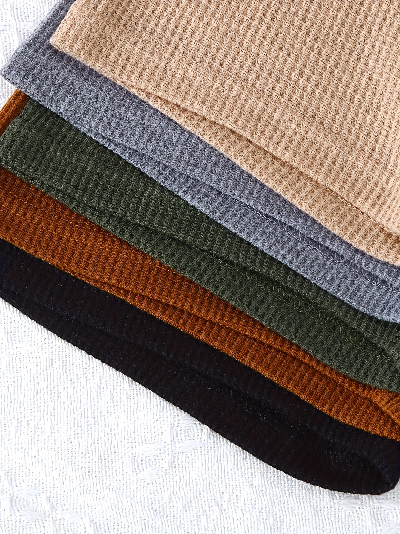 10pcs Boys Casual Style Solid Color Soft And Comfortable Waffle Knit Fabric Short Sleeve Shorts Suit